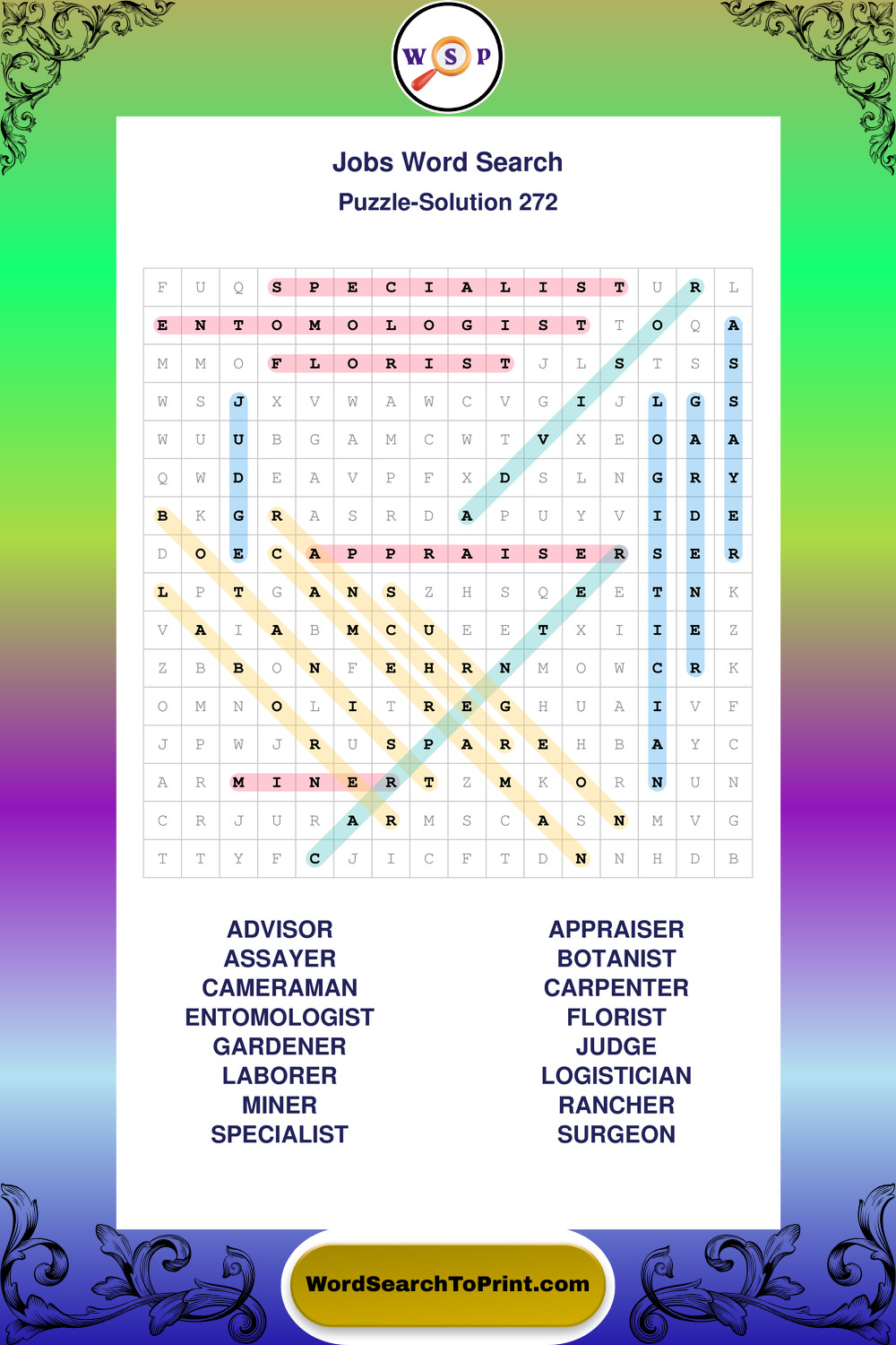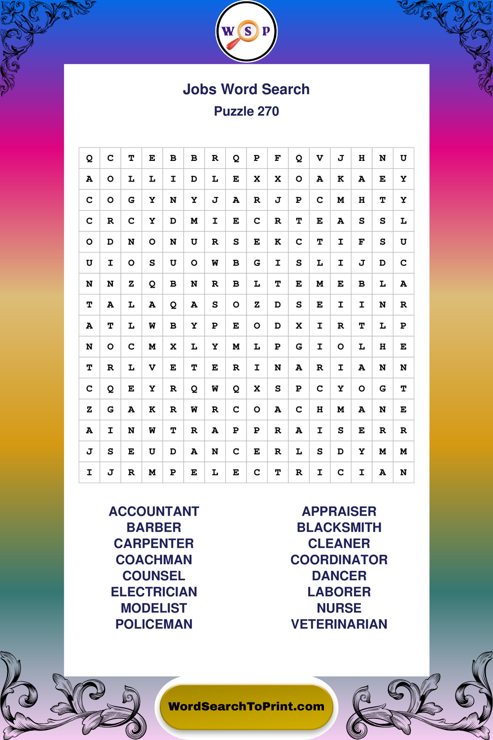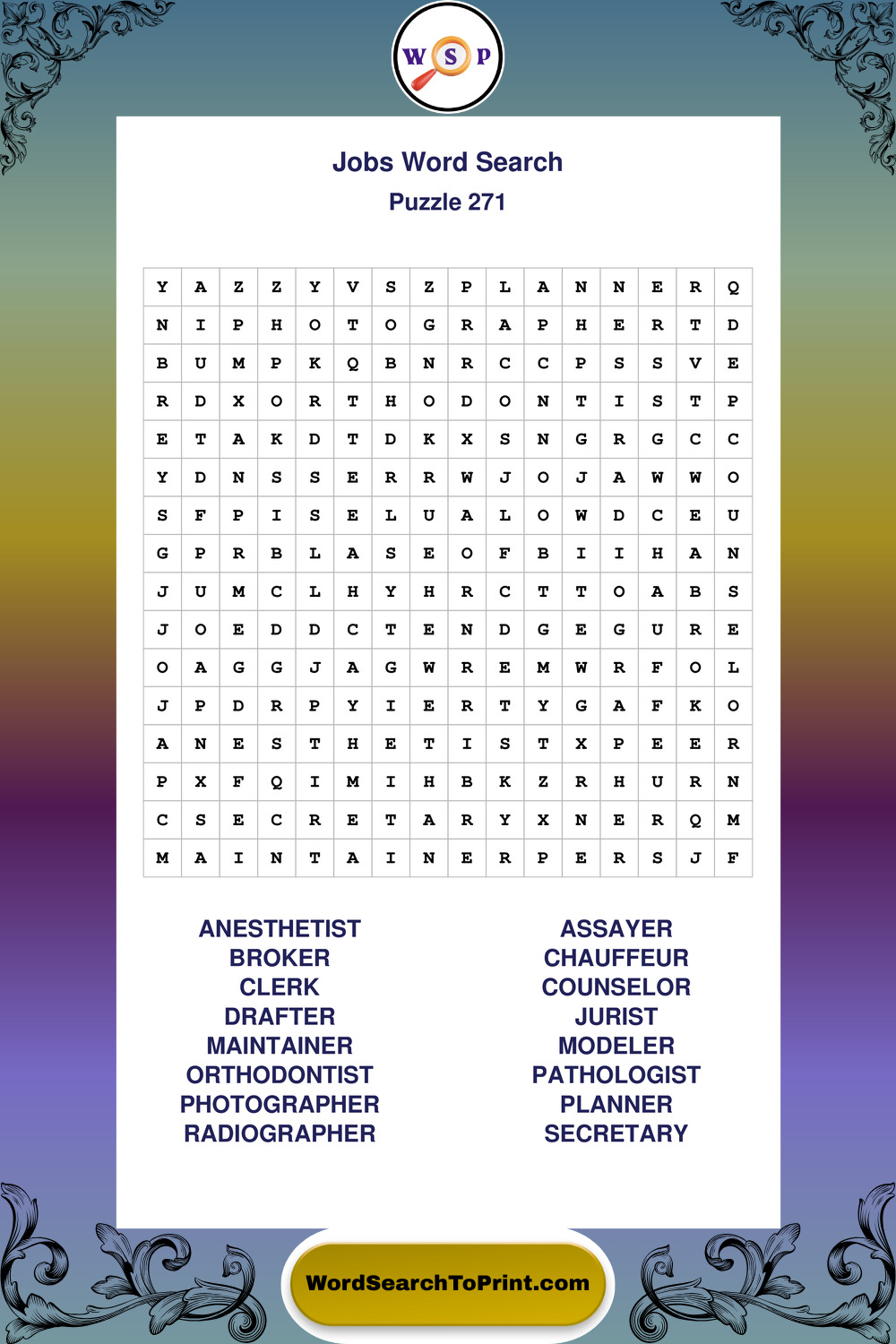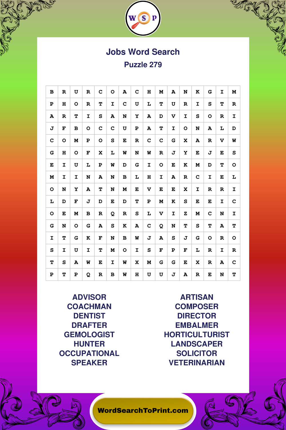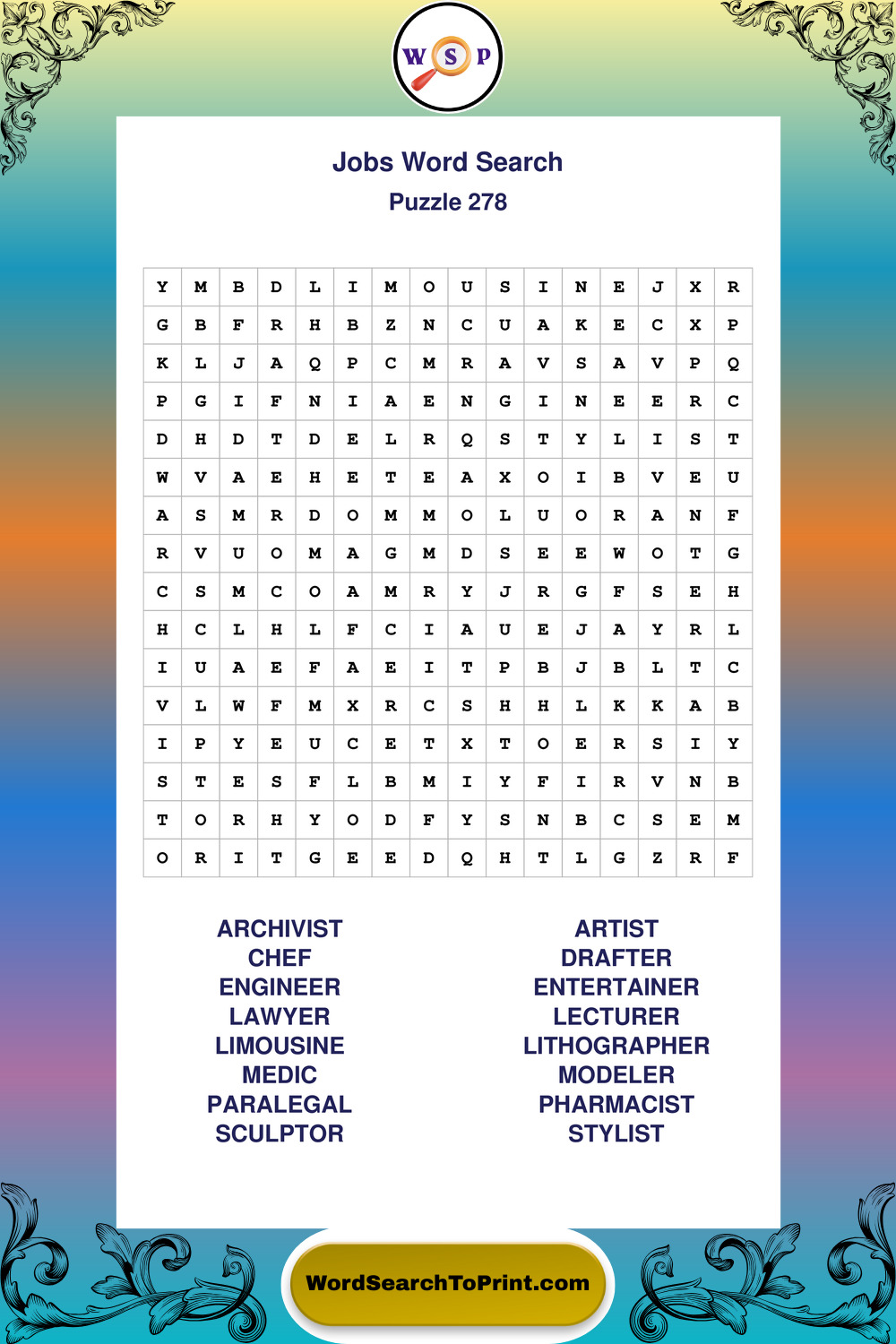 Printable Jobs Wordsearch Puzzles