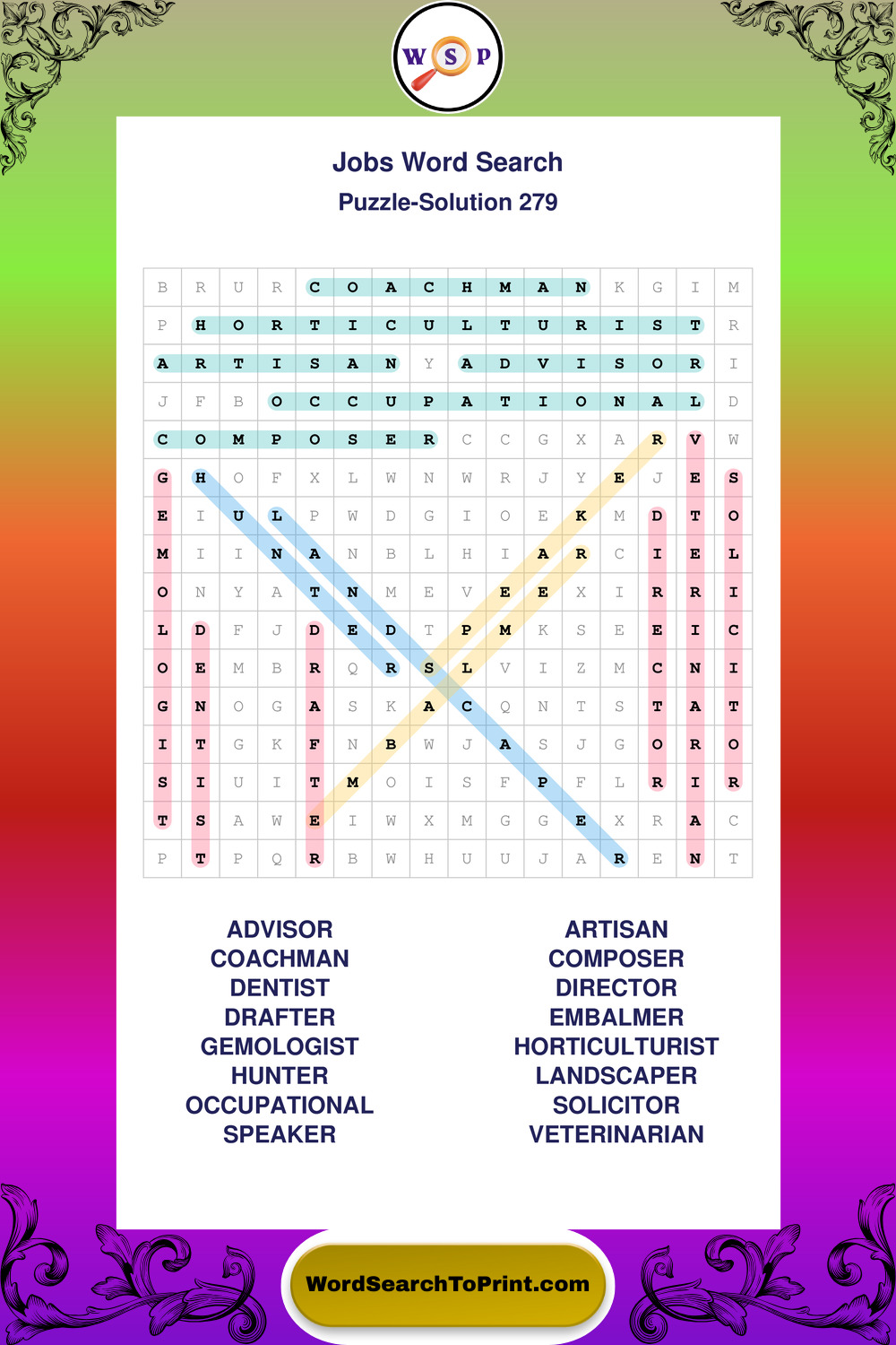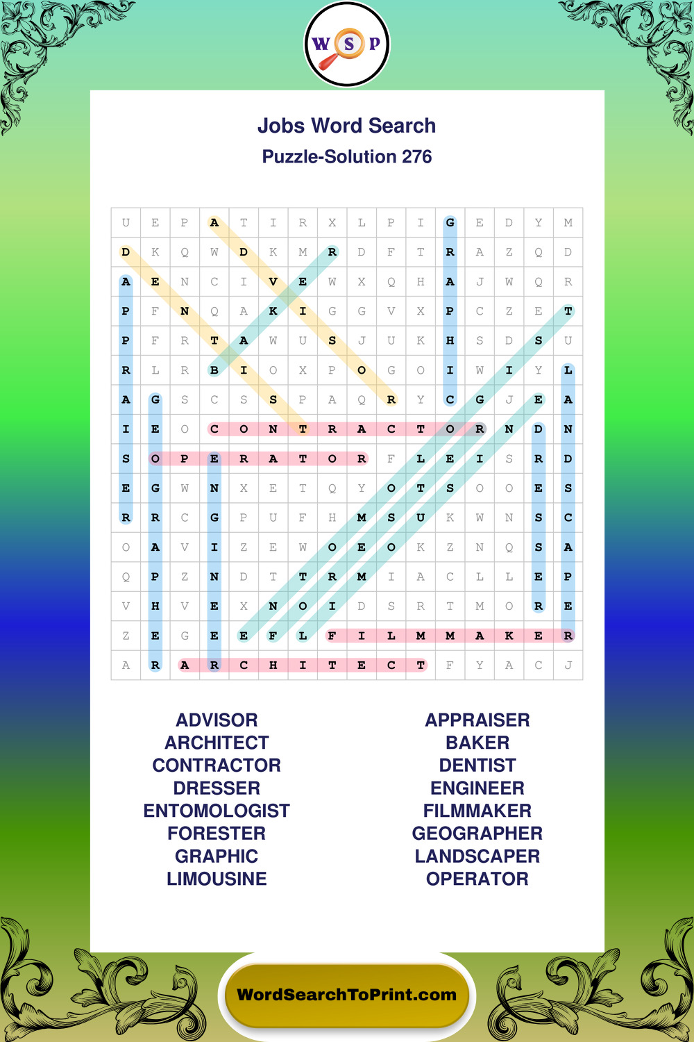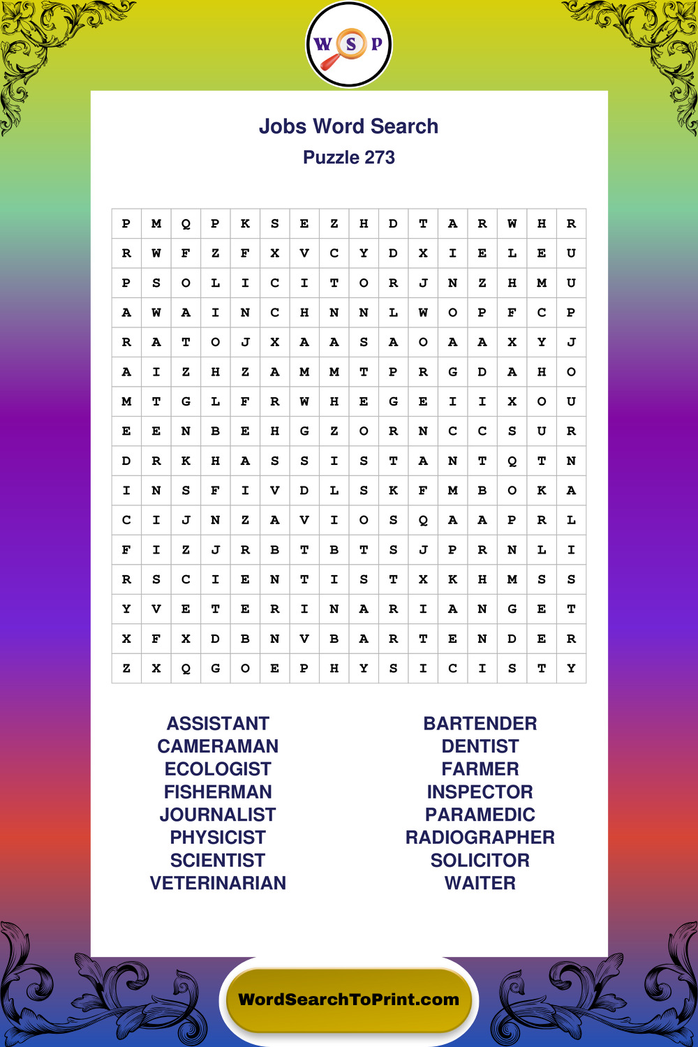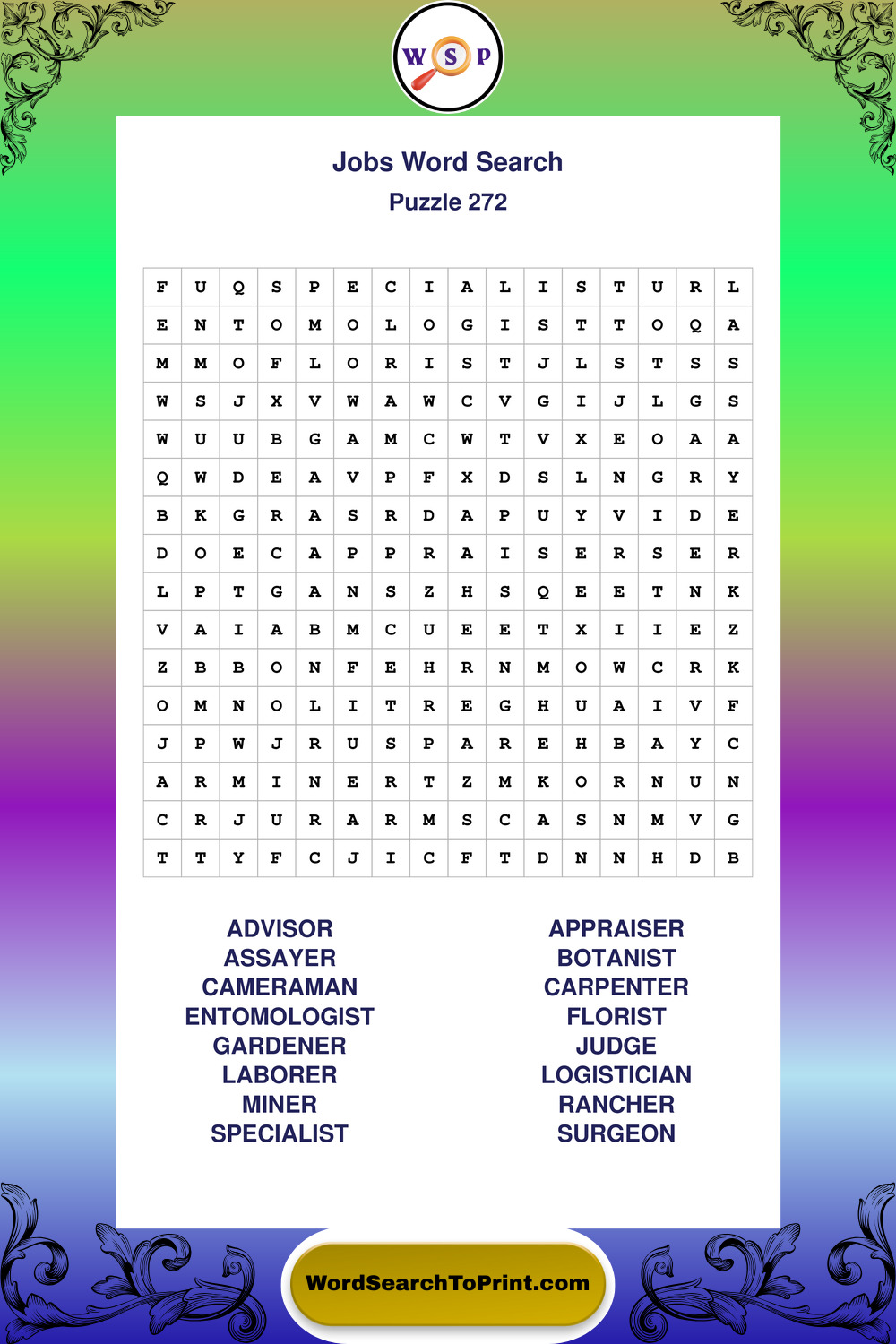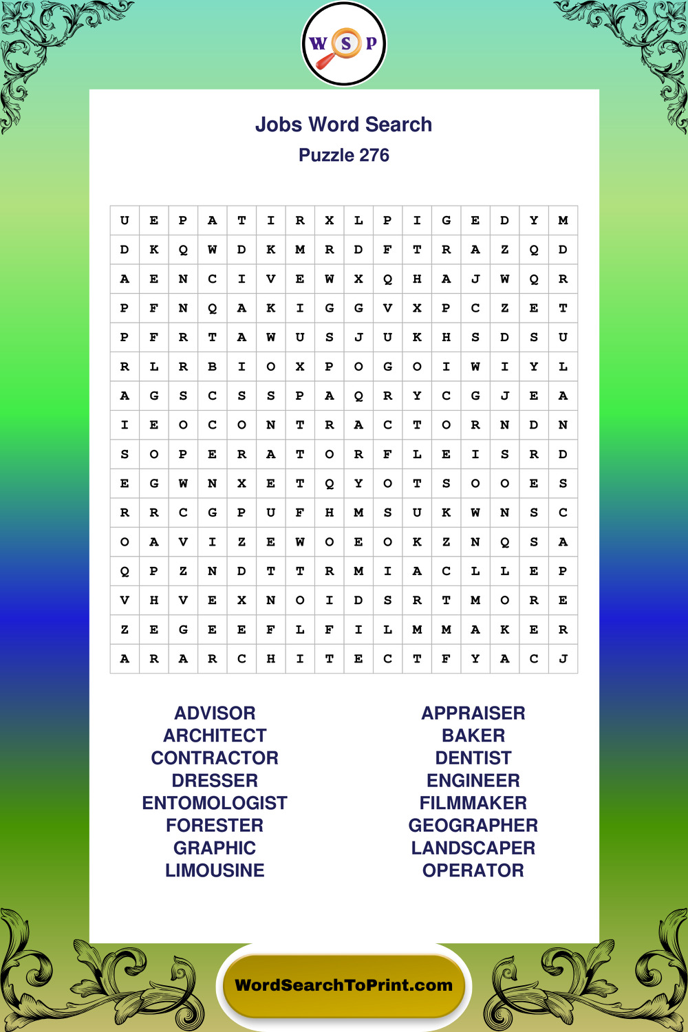 Printable Jobs Wordsearch Puzzles