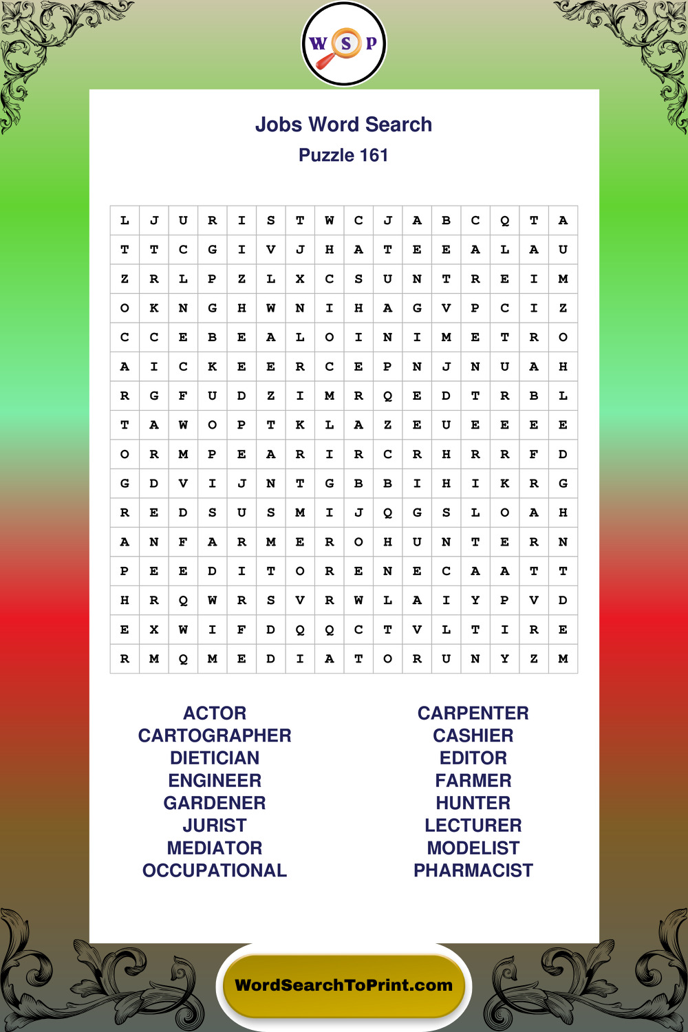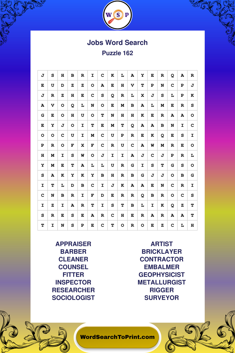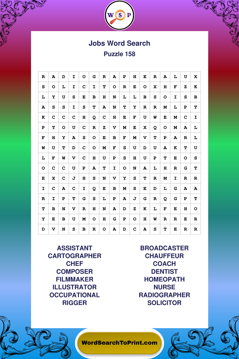 These printable large print Jobs wordsearches offer a calm and accessible puzzle experience for all skill levels.