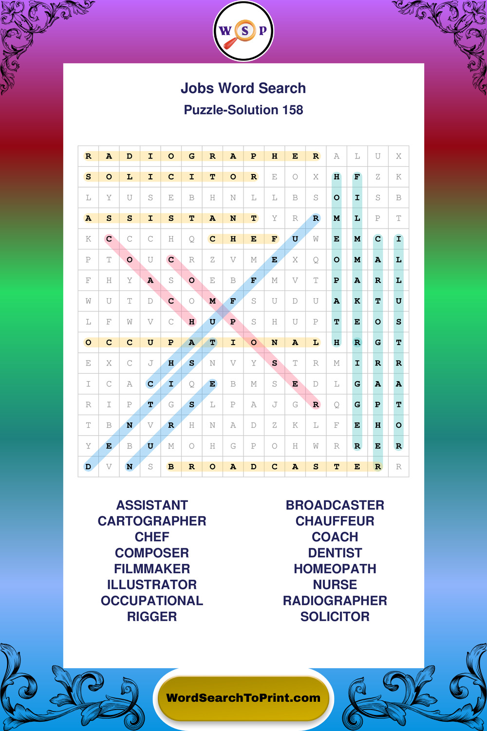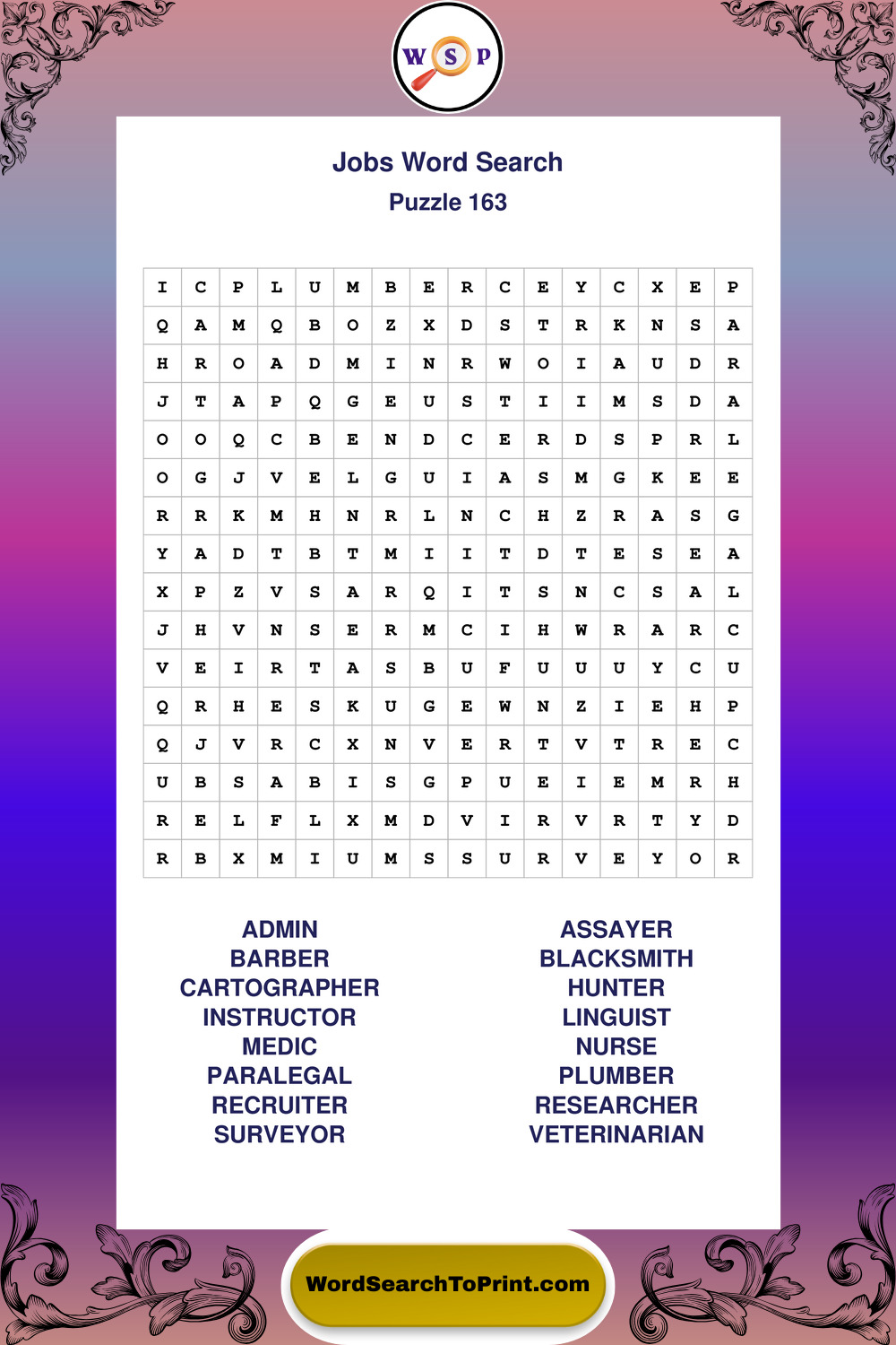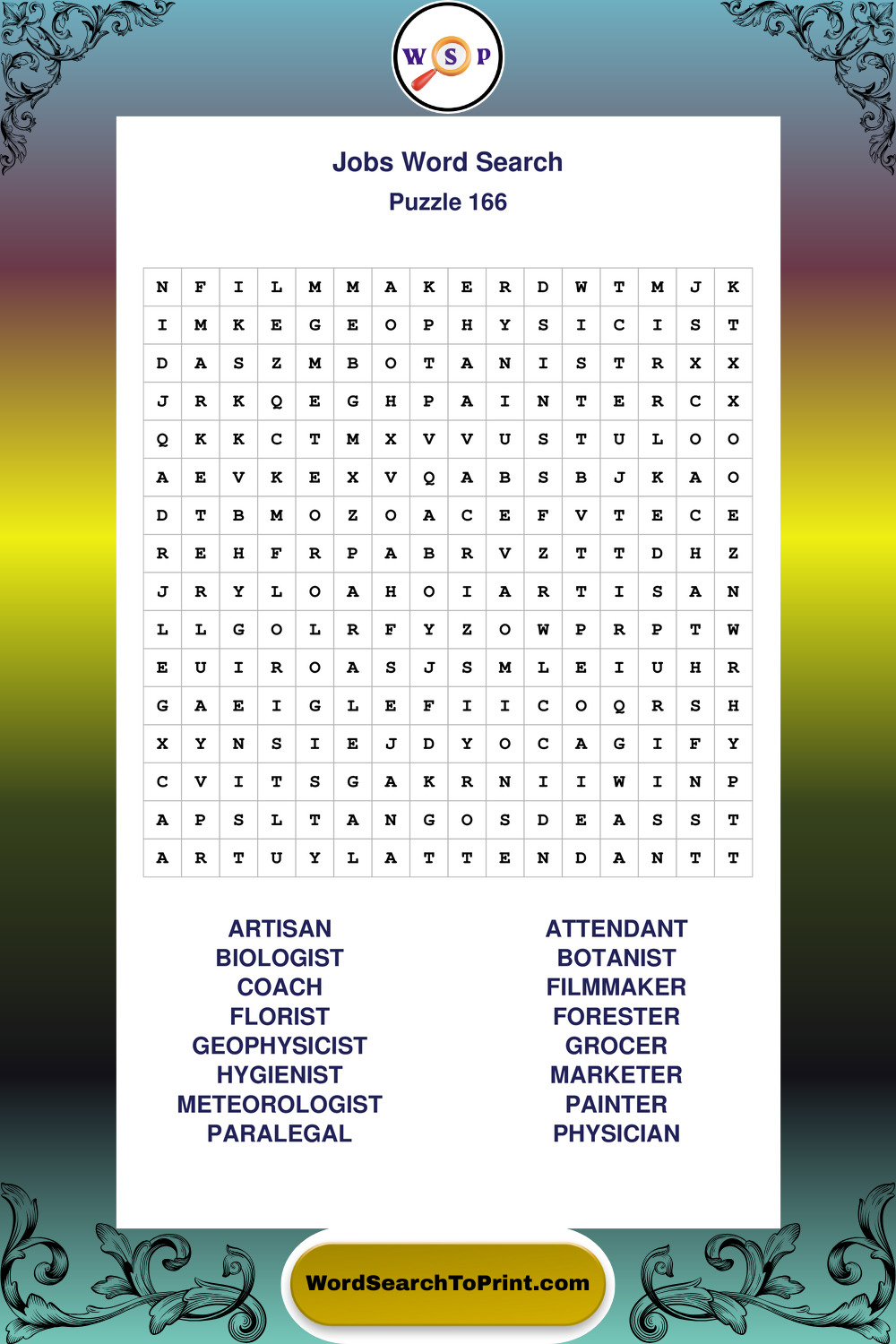 These printable large print Jobs wordsearches offer a calm and accessible puzzle experience for all skill levels.