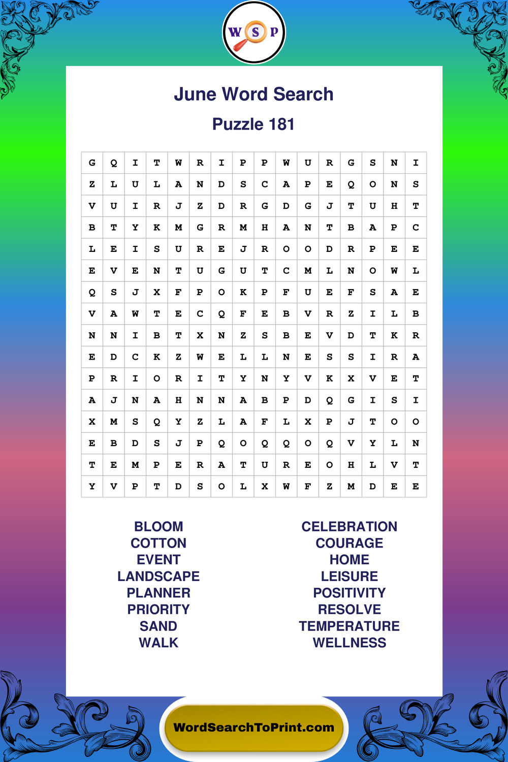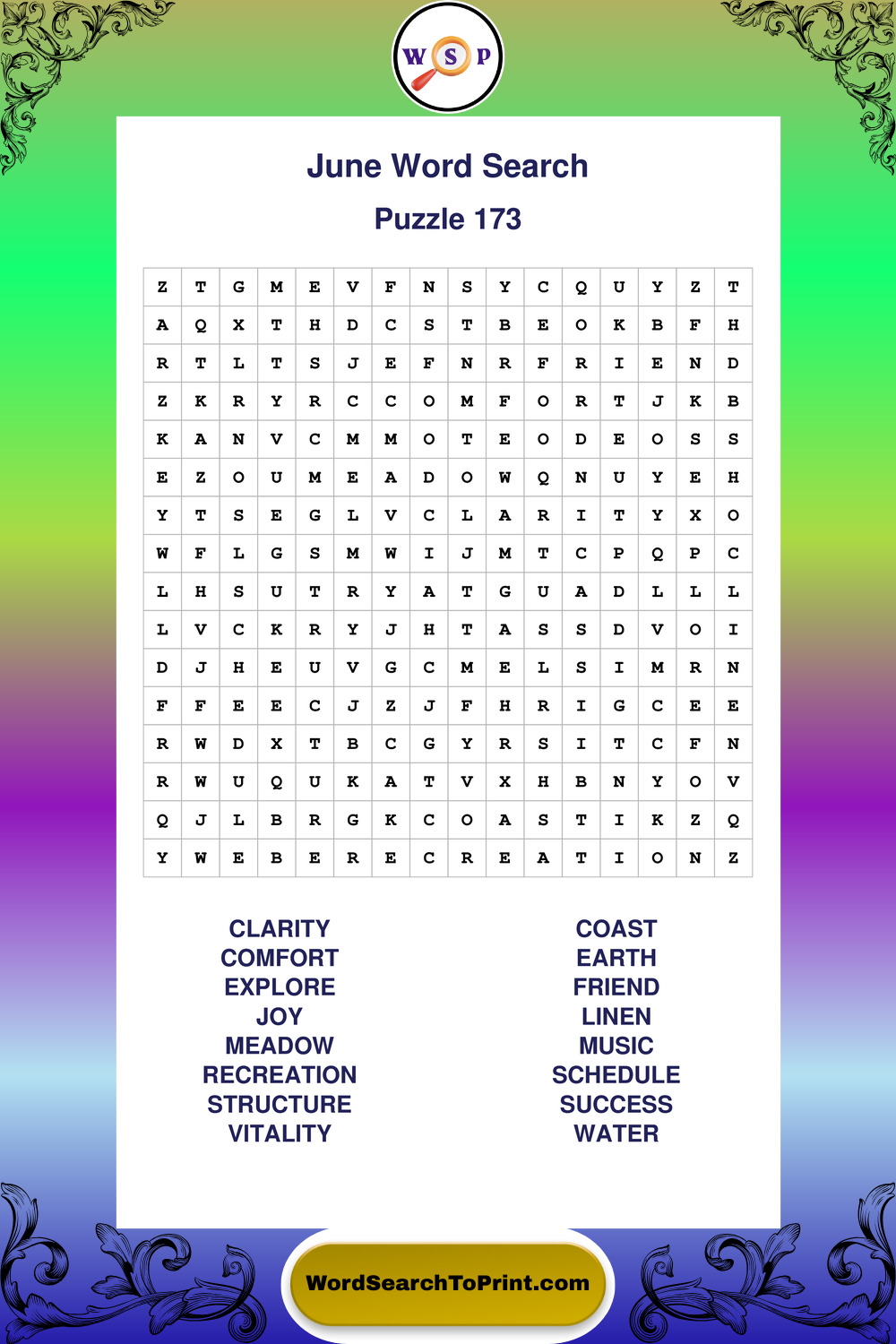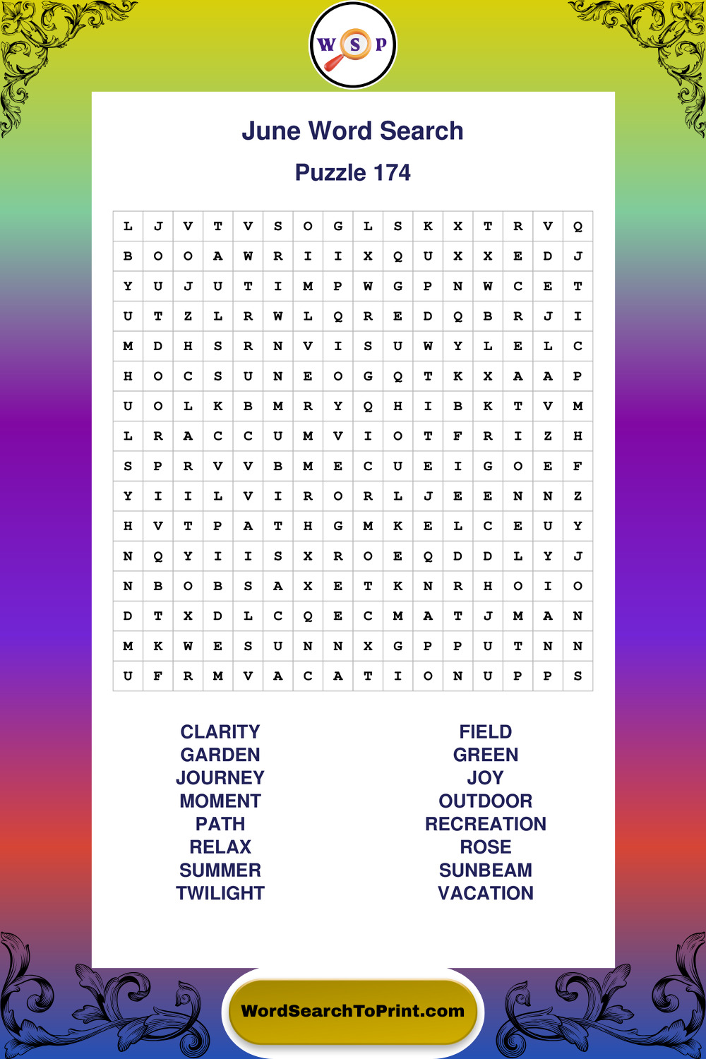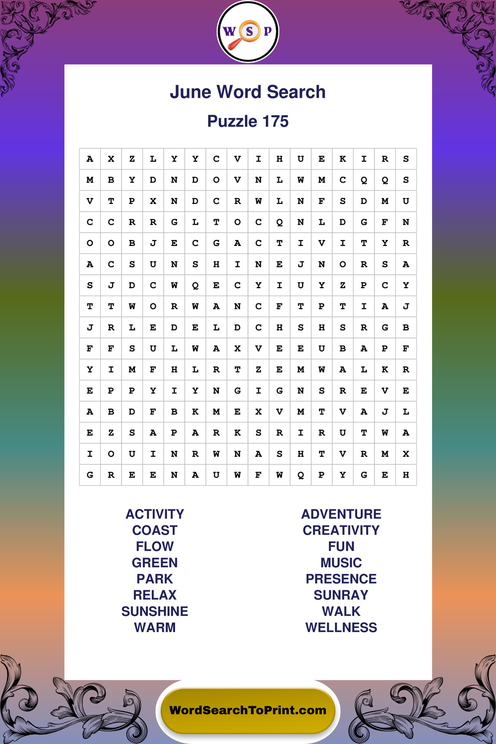 Enjoy large print June wordsearches that balance clarity, simplicity, and enjoyable mental activity.