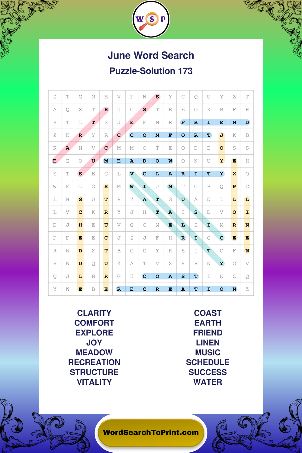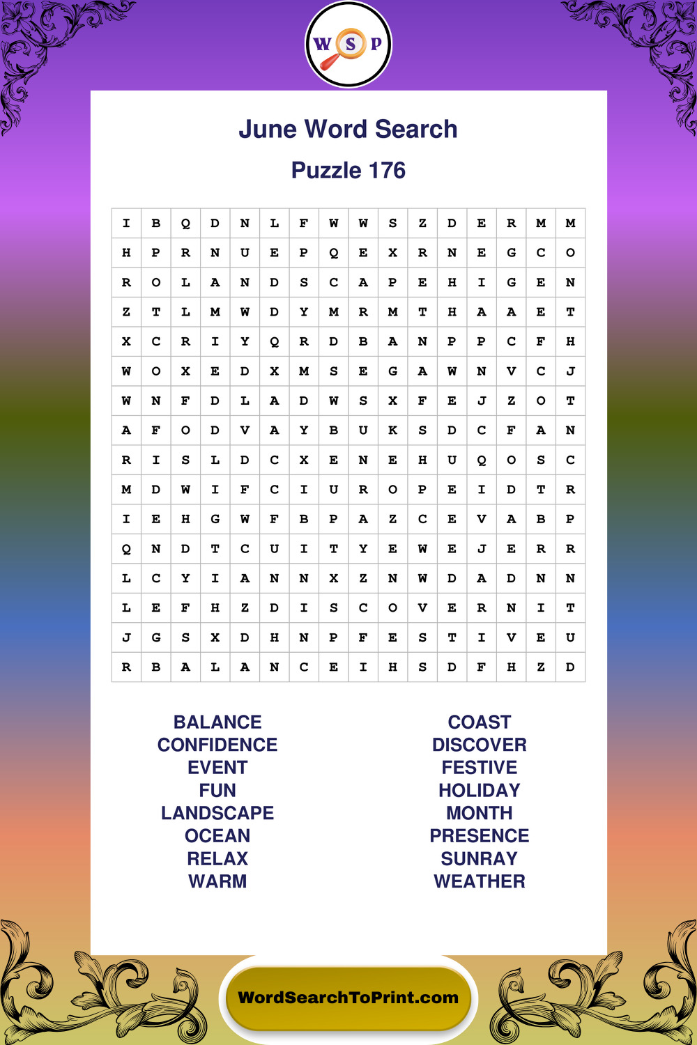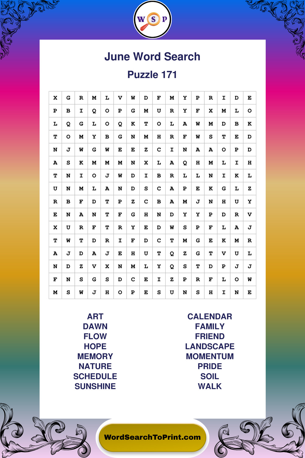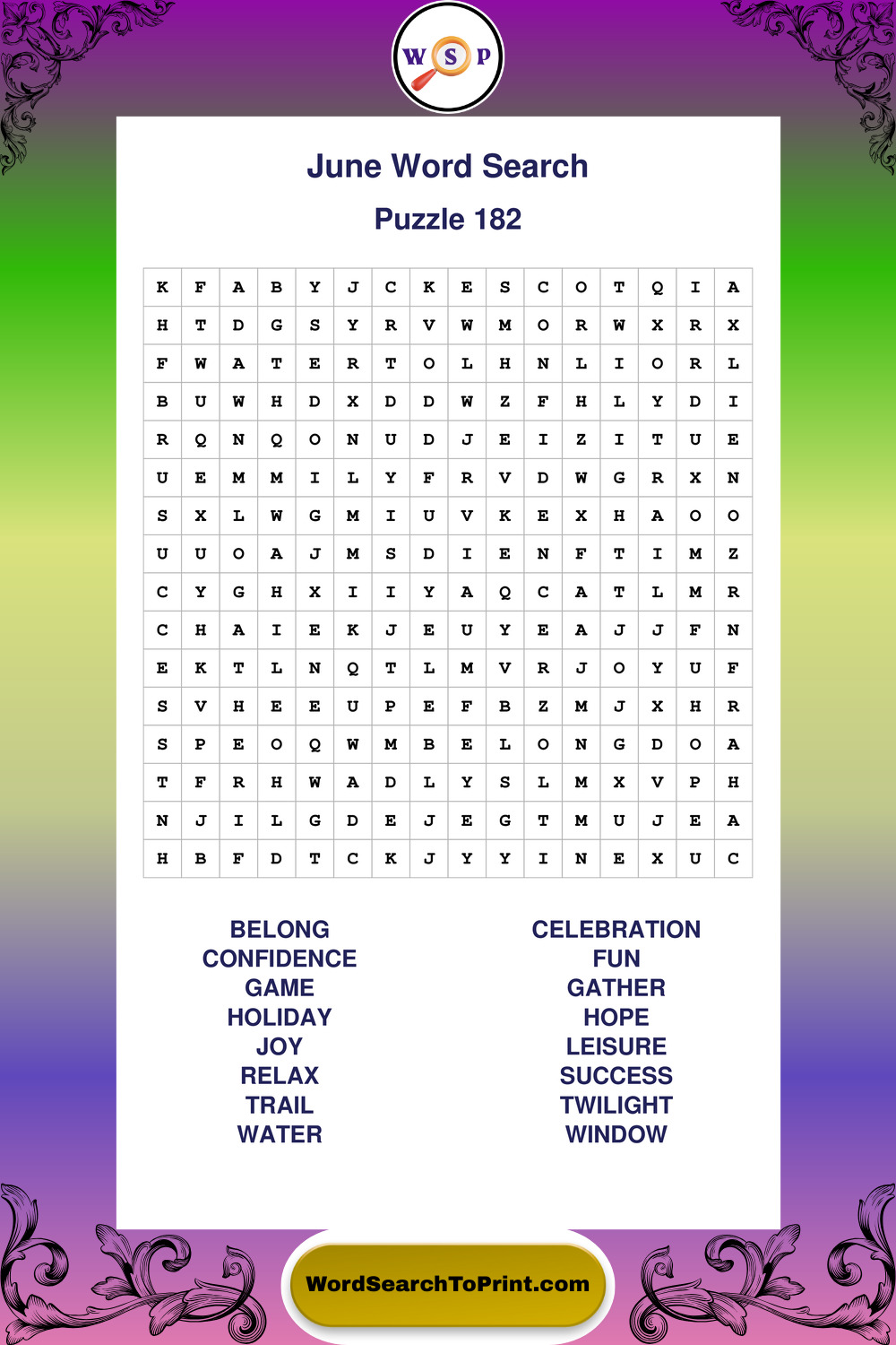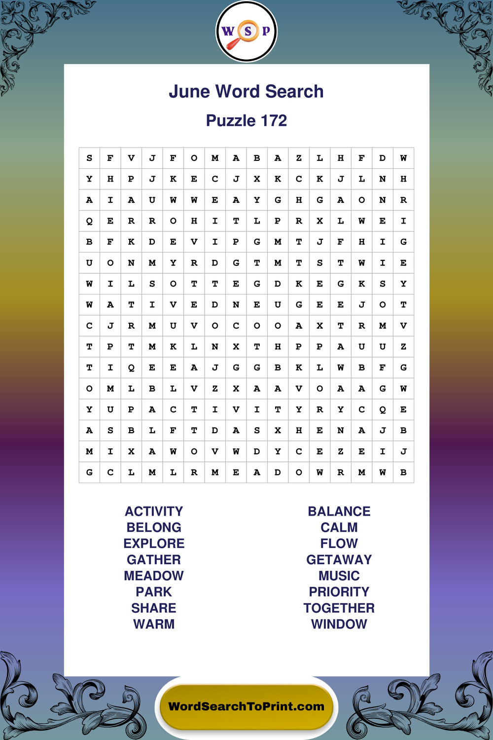 Enjoy large print June wordsearches that balance clarity, simplicity, and enjoyable mental activity.
