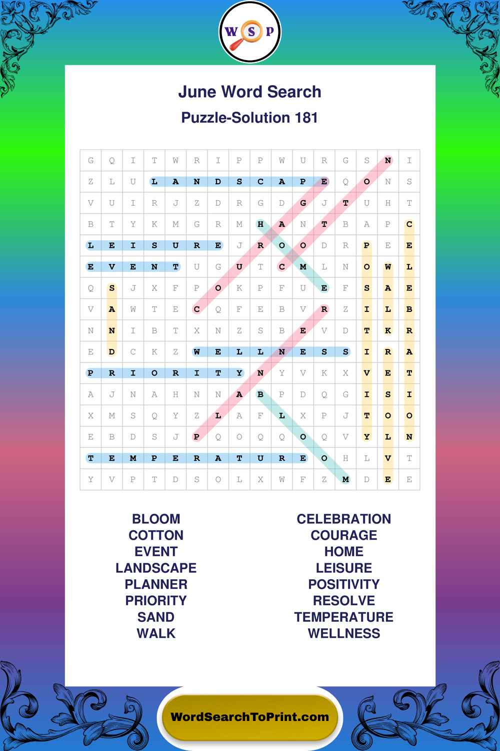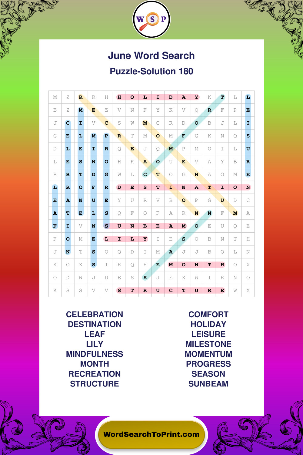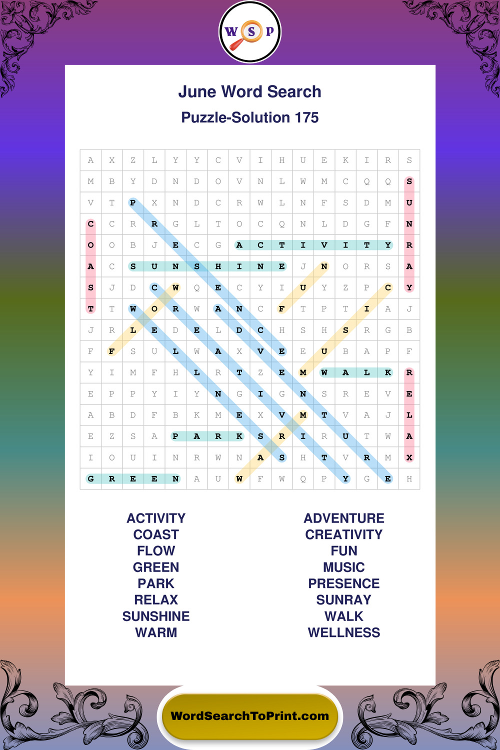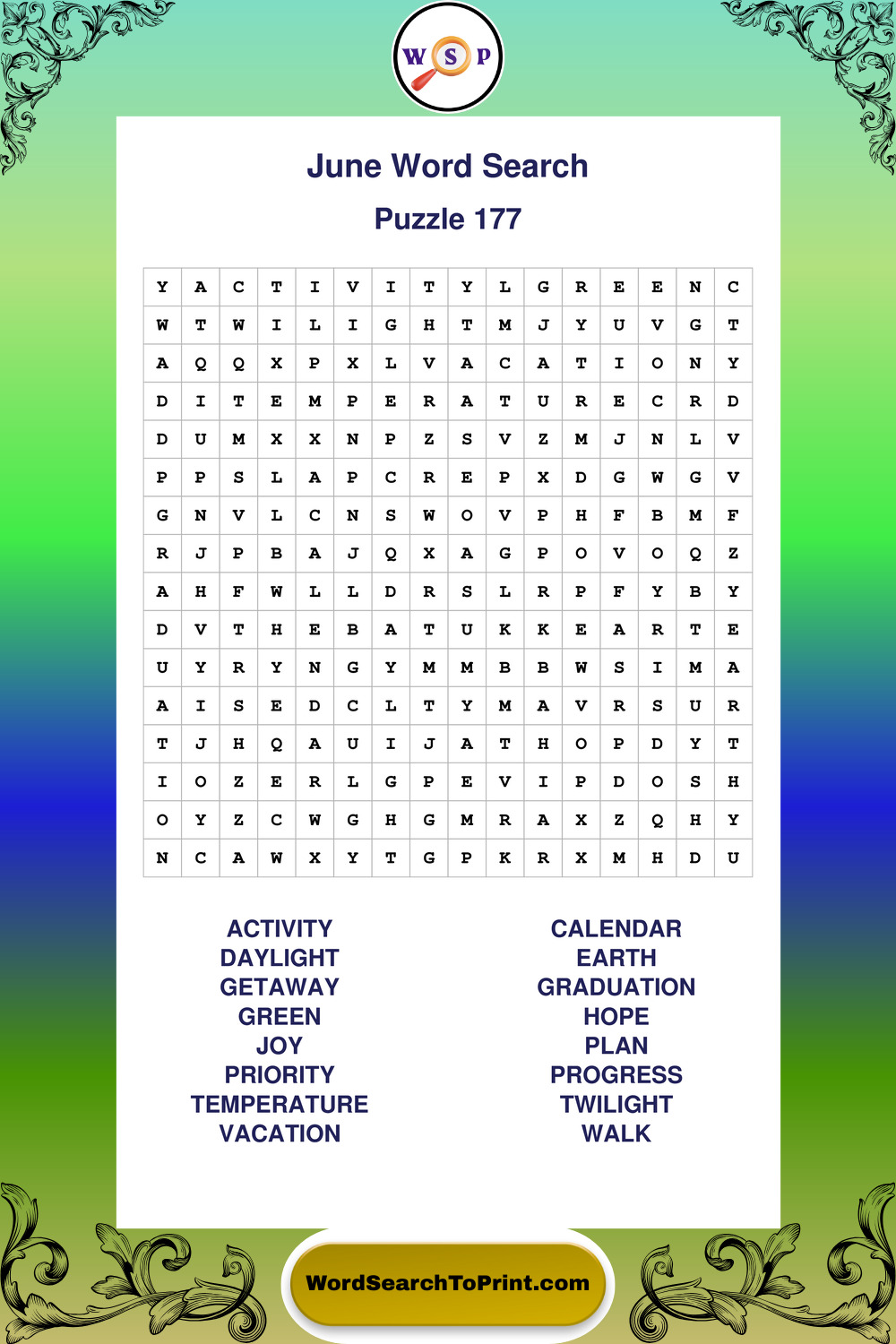 Enjoy large print June wordsearches that balance clarity, simplicity, and enjoyable mental activity.