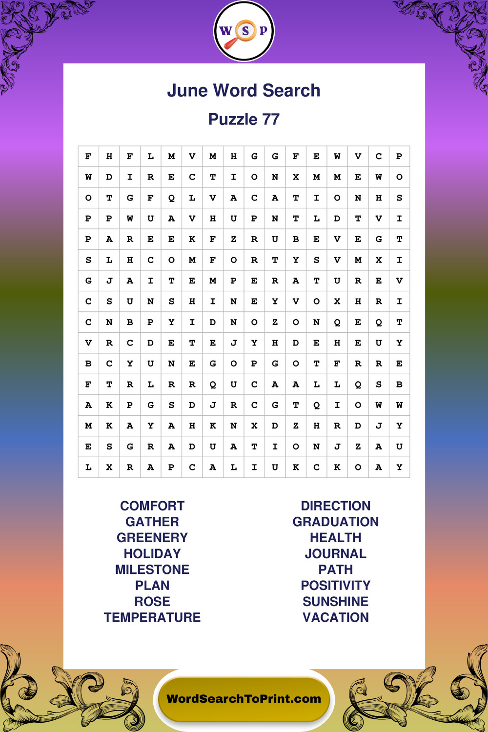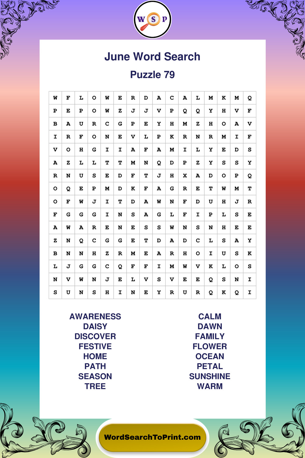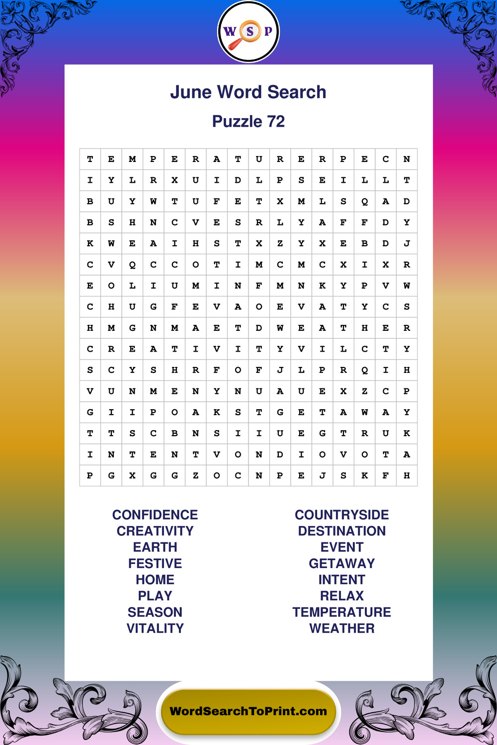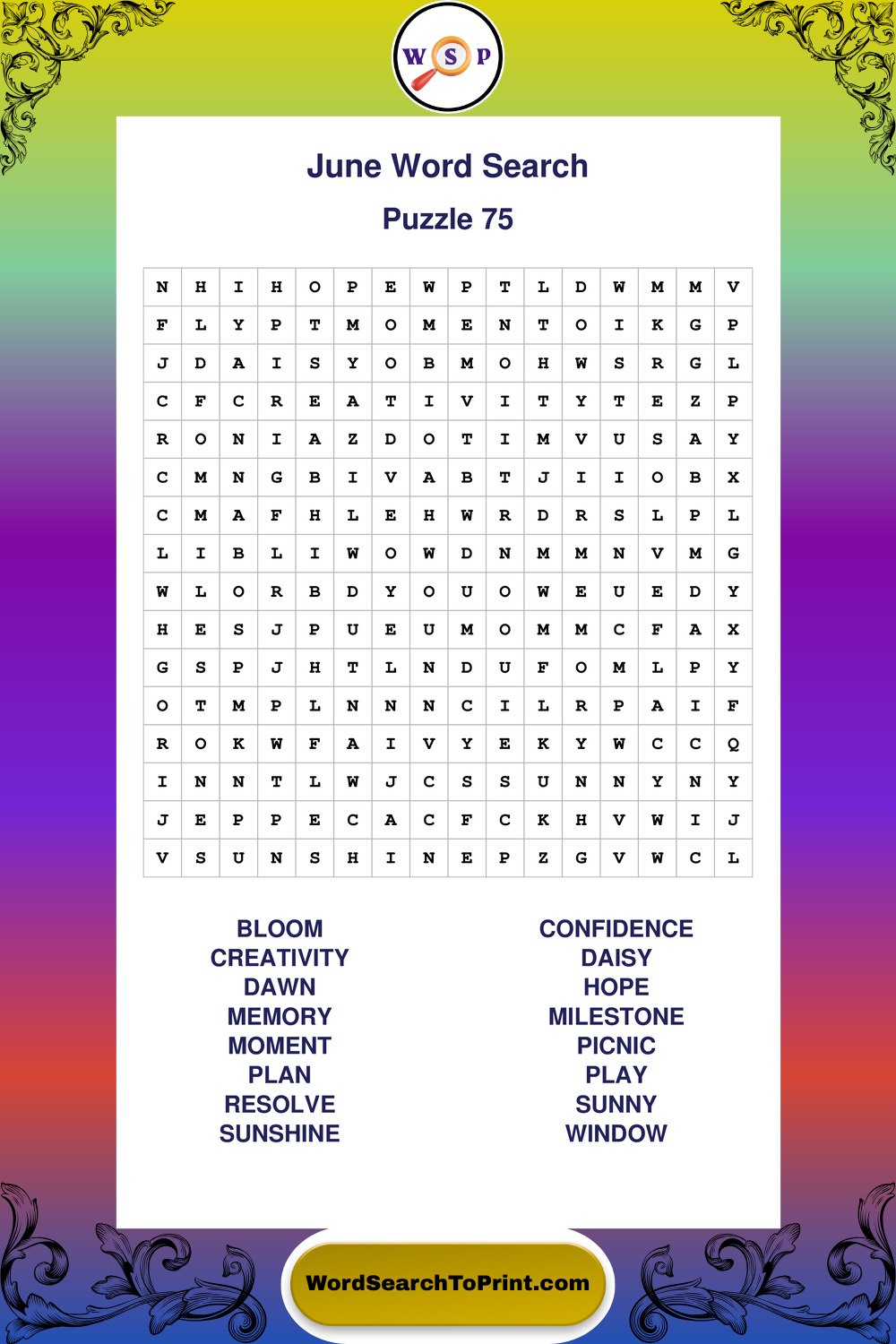 Enjoy large print June wordsearches that balance clarity, simplicity, and enjoyable mental activity.