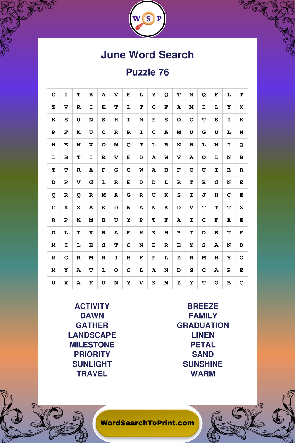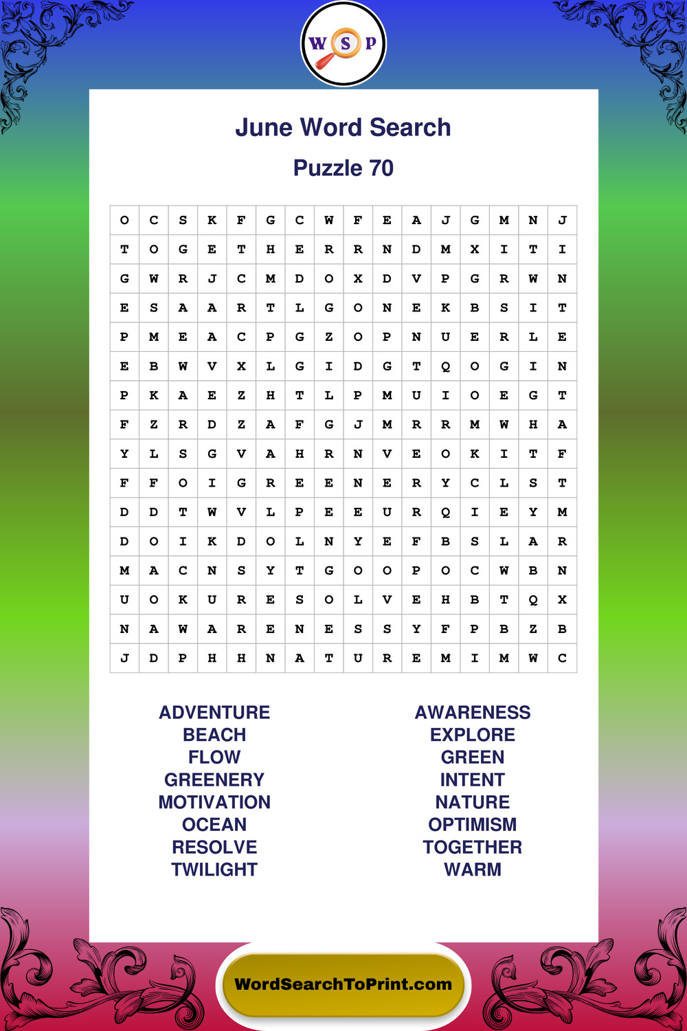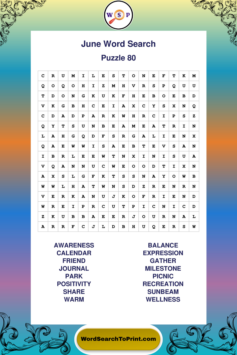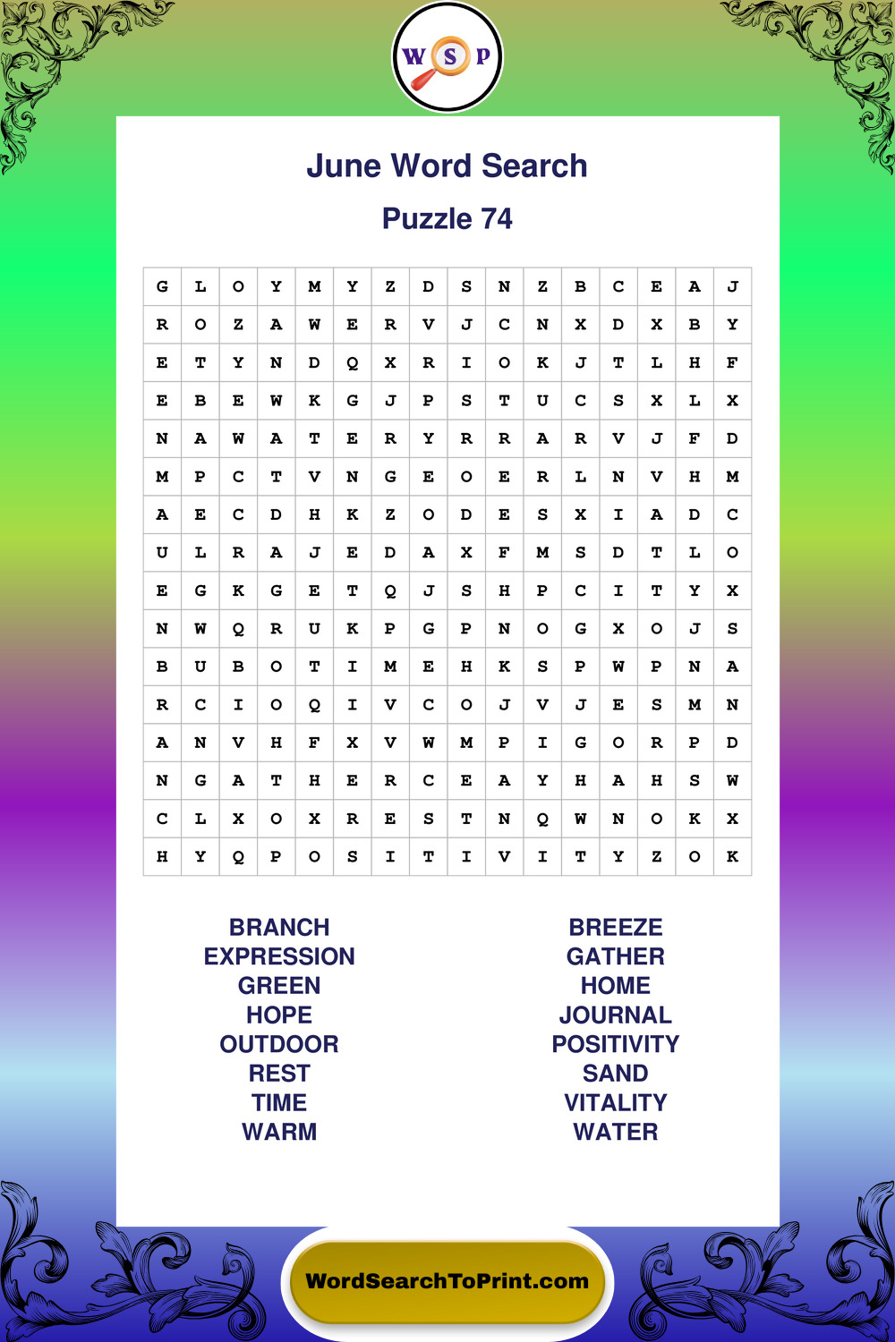 Enjoy large print June wordsearches that balance clarity, simplicity, and enjoyable mental activity.