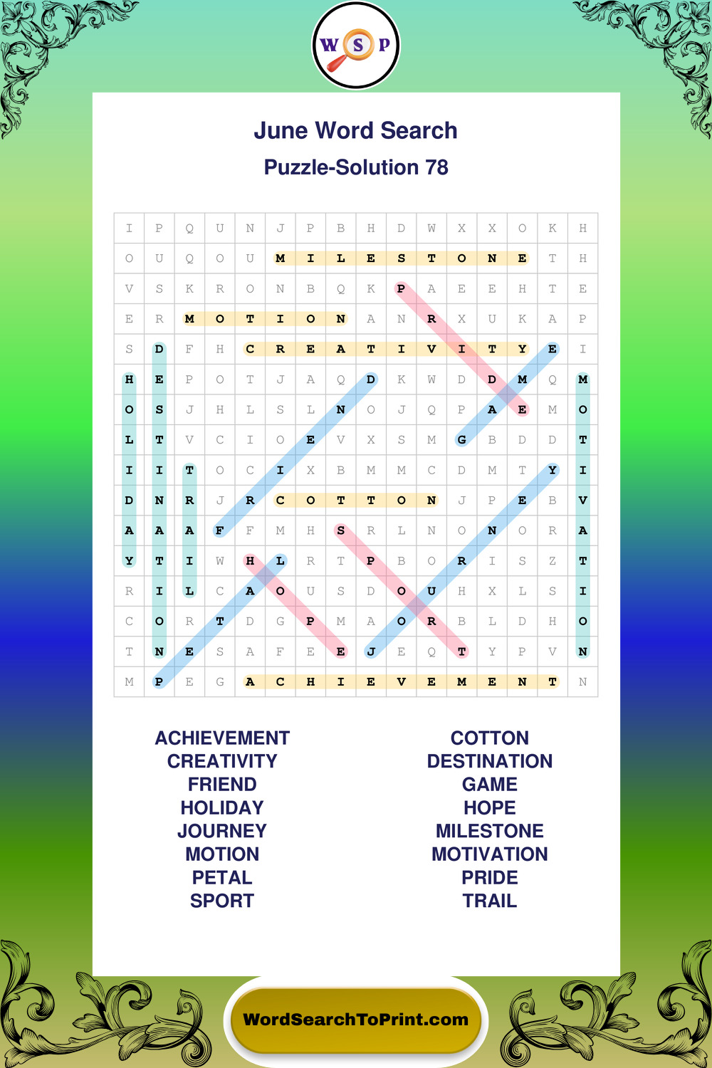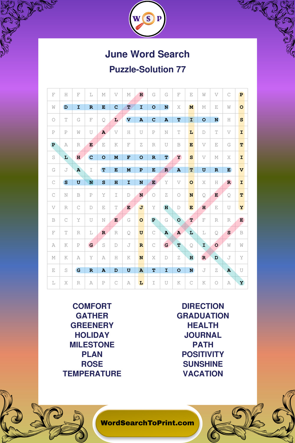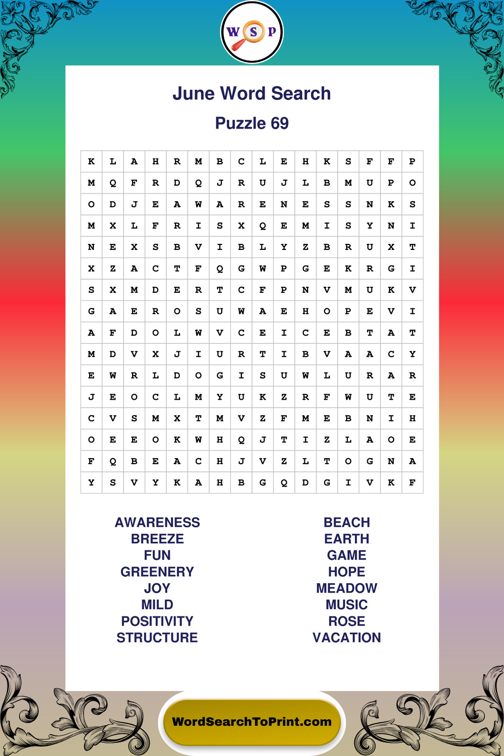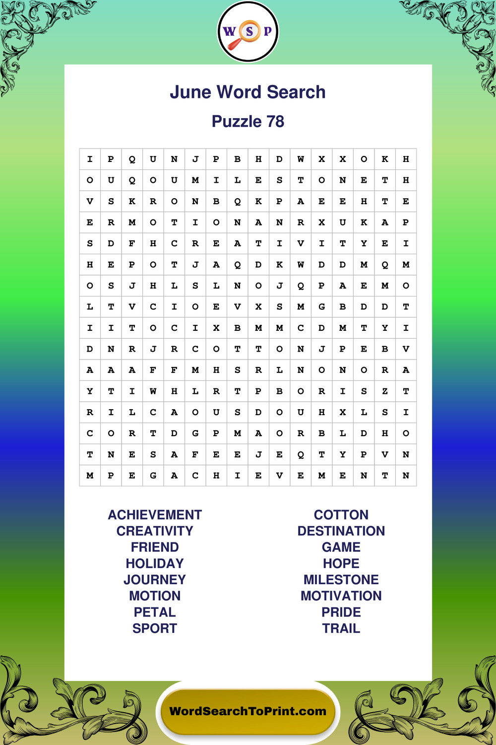 Enjoy large print June wordsearches that balance clarity, simplicity, and enjoyable mental activity.