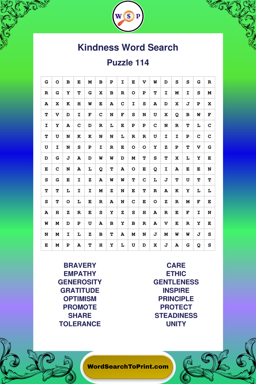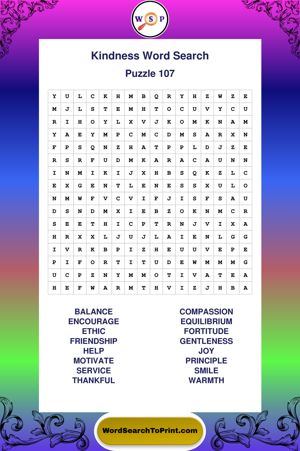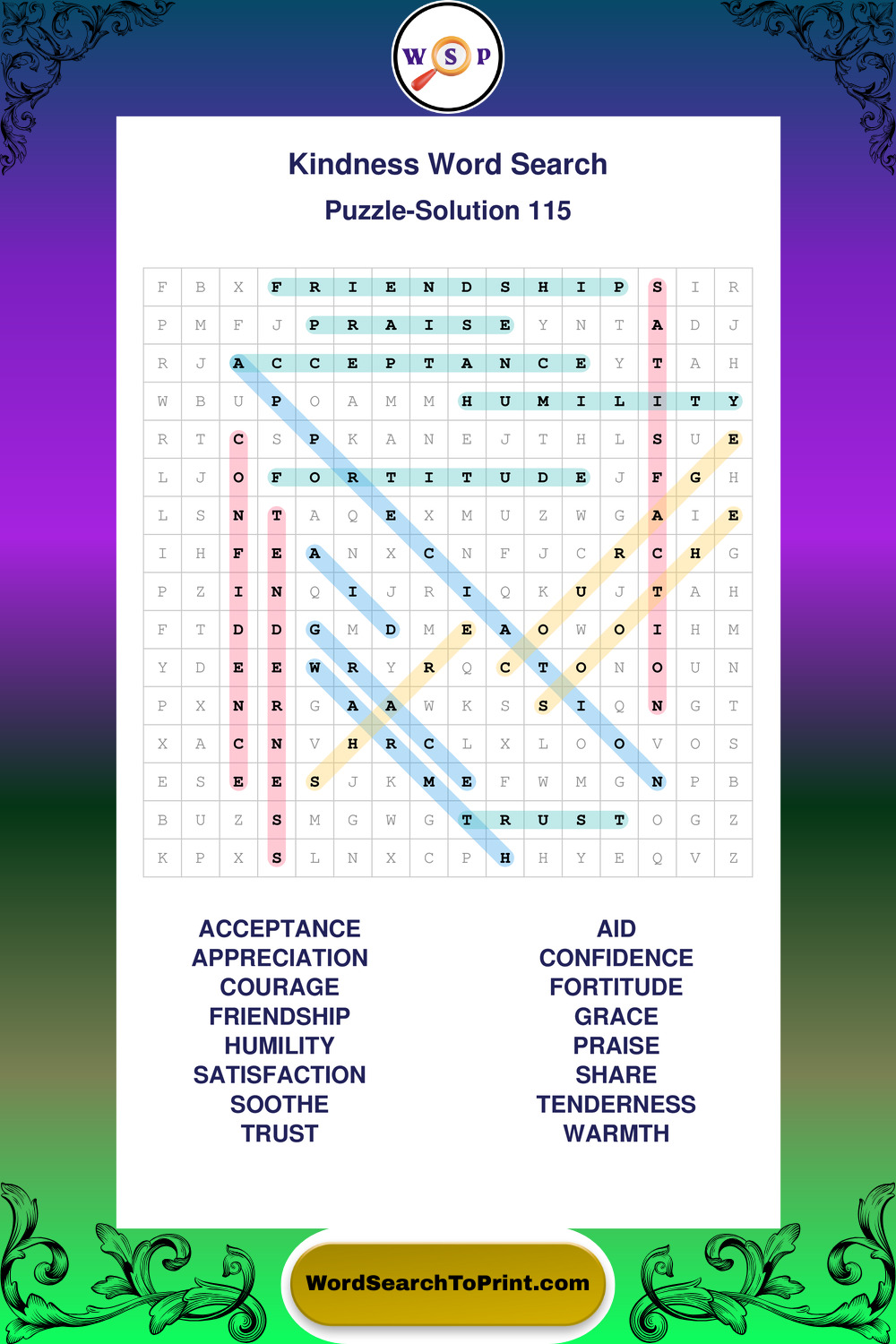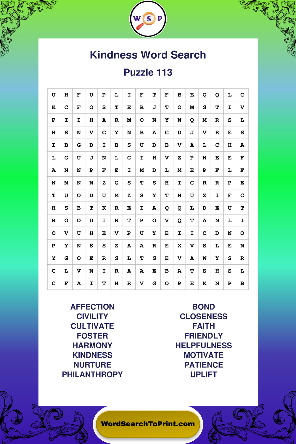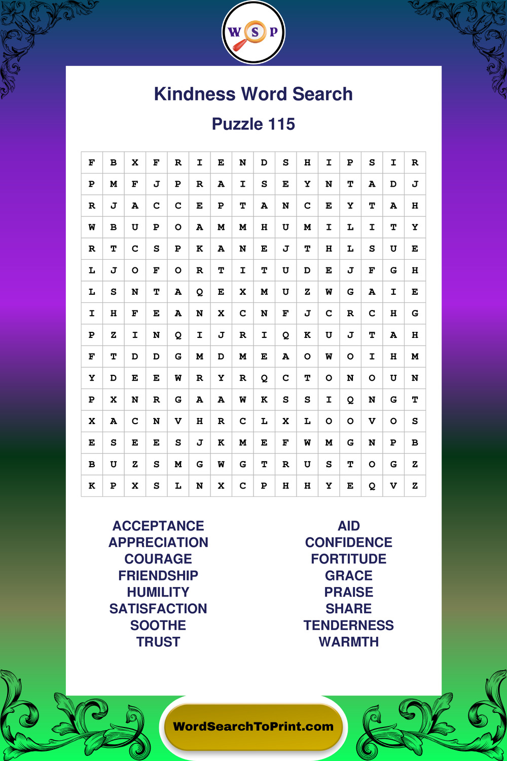 Printable Kindness Wordsearch Puzzles