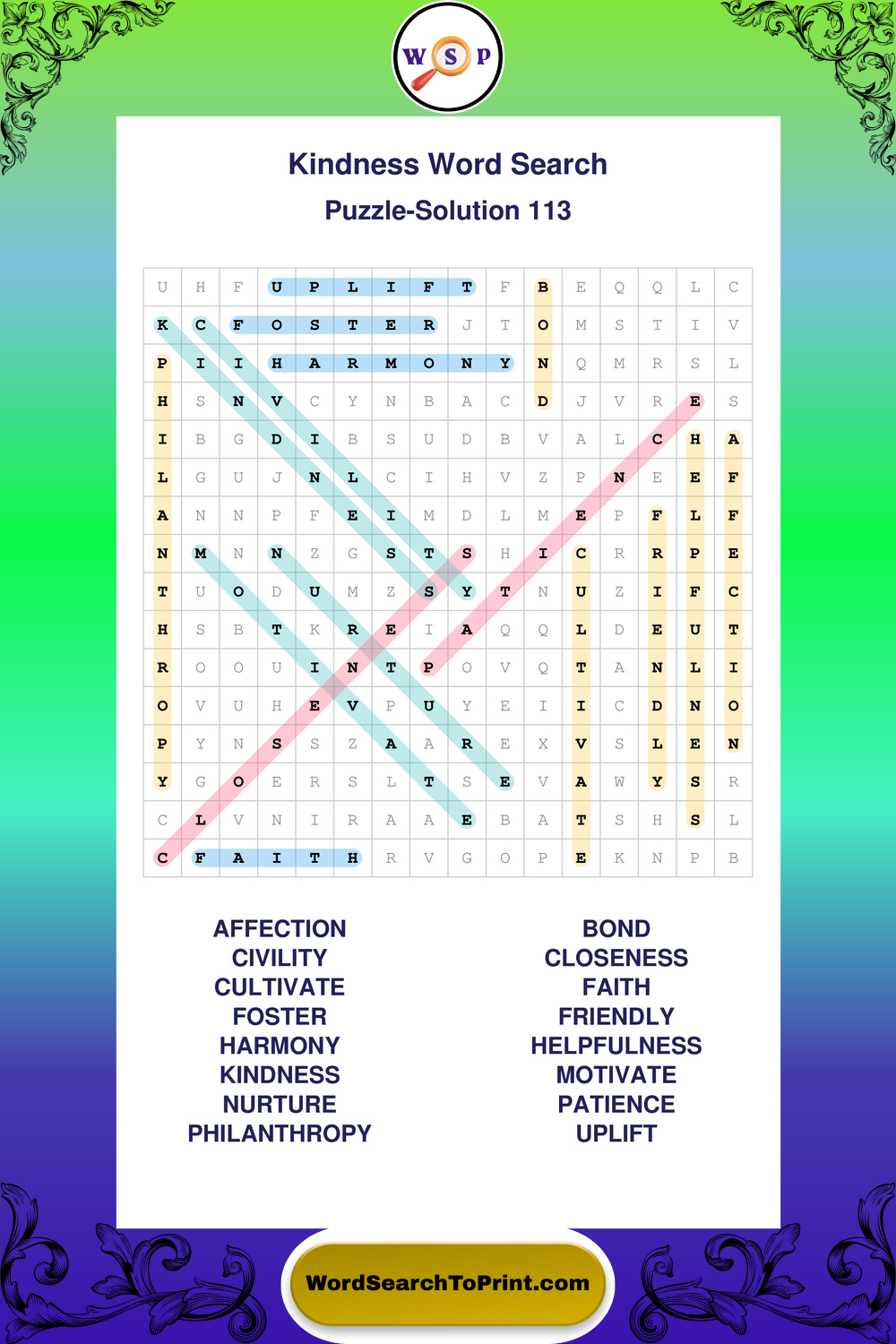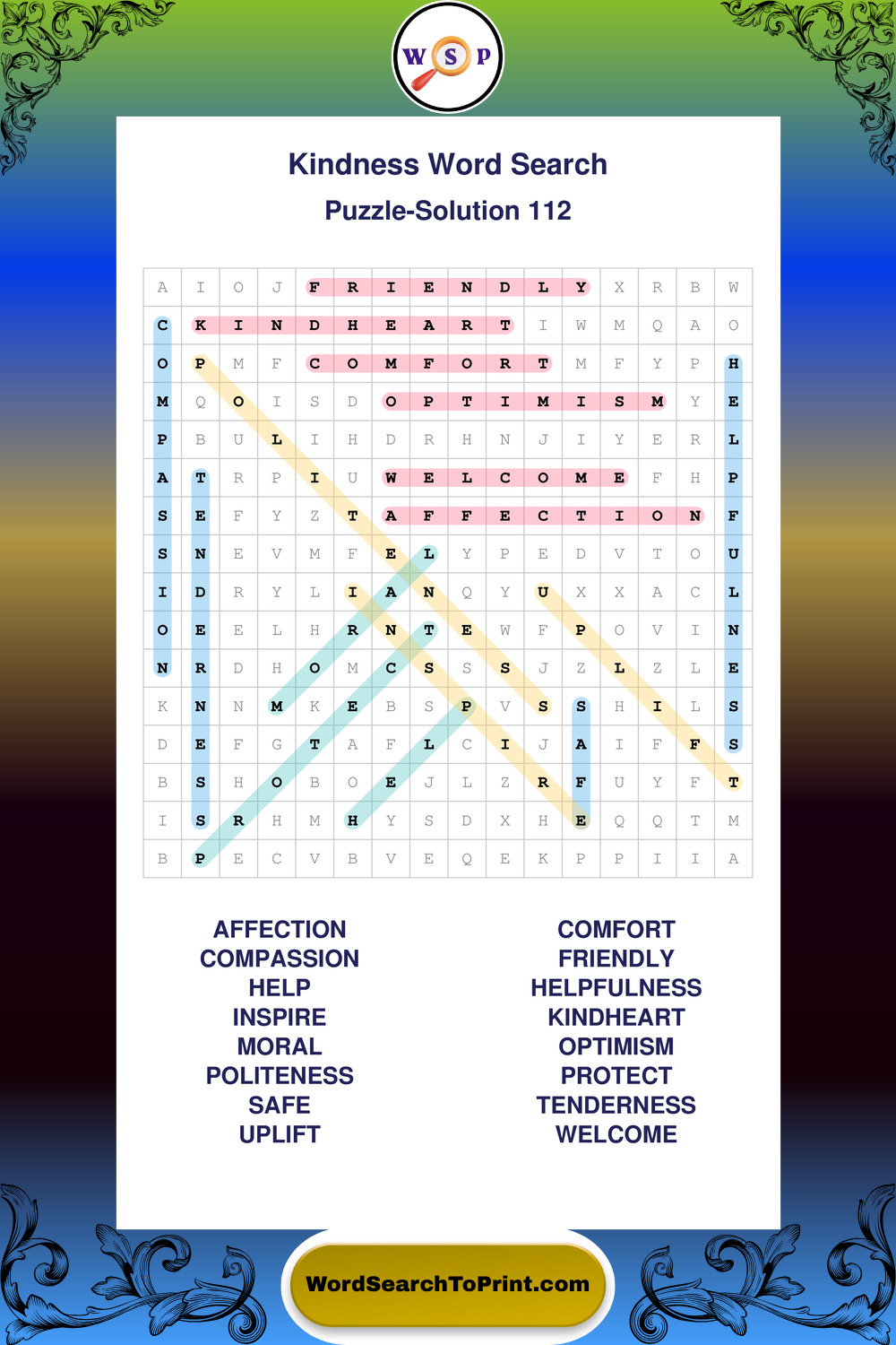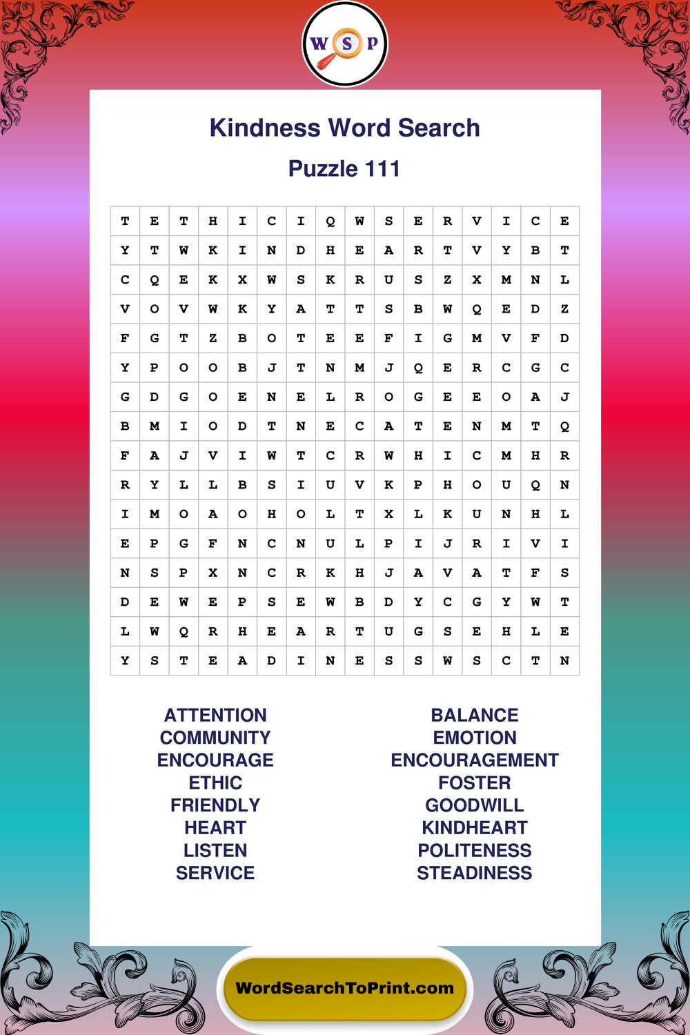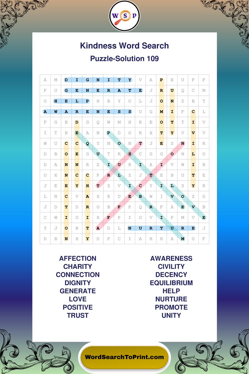Printable Kindness Wordsearch Puzzles