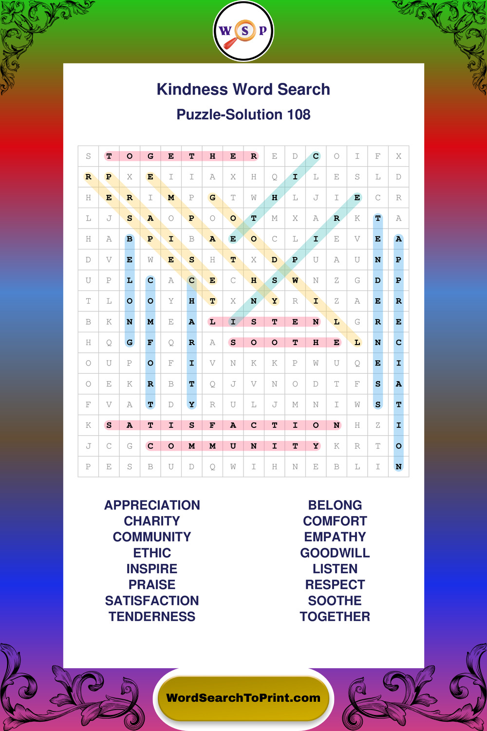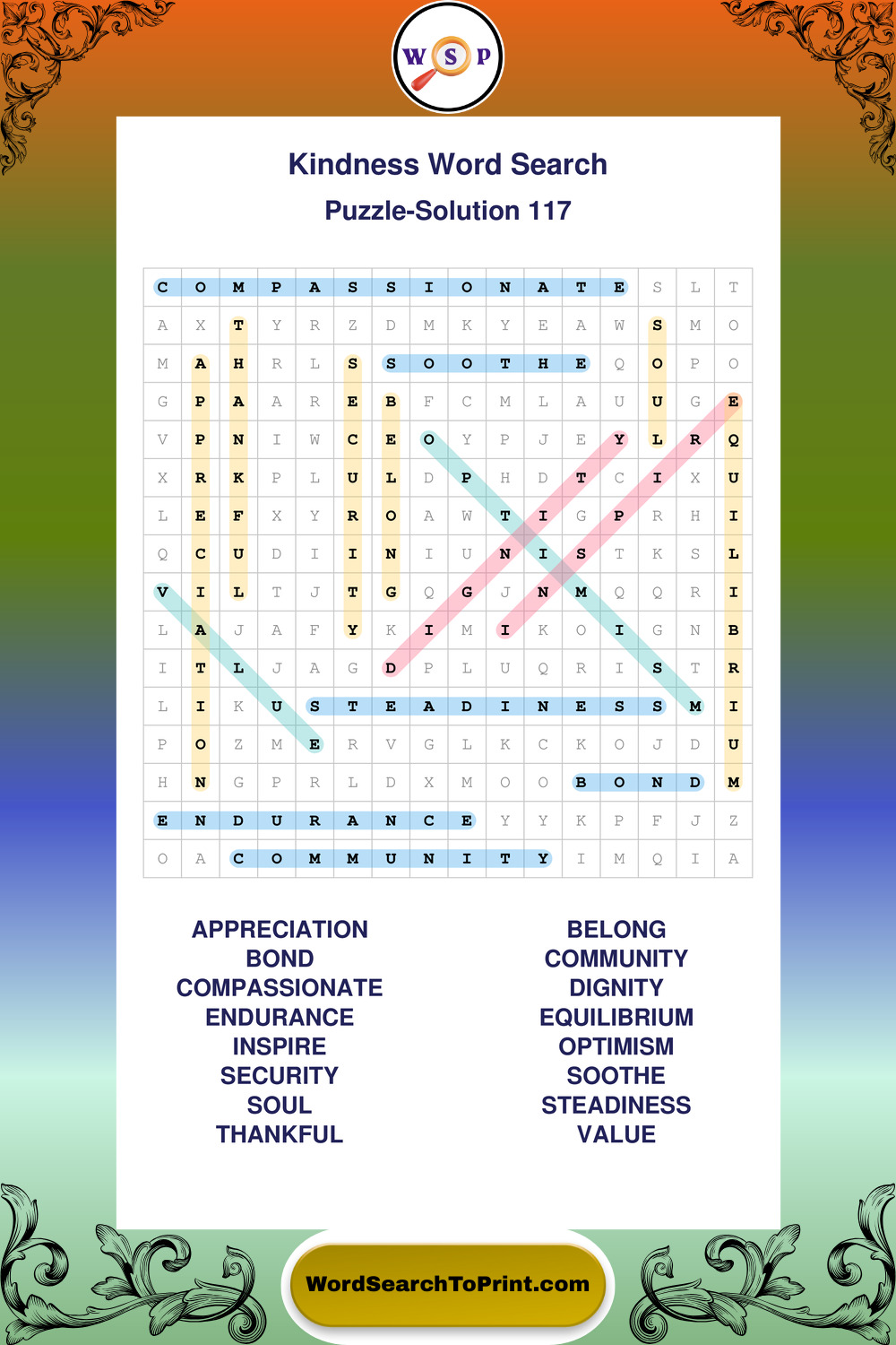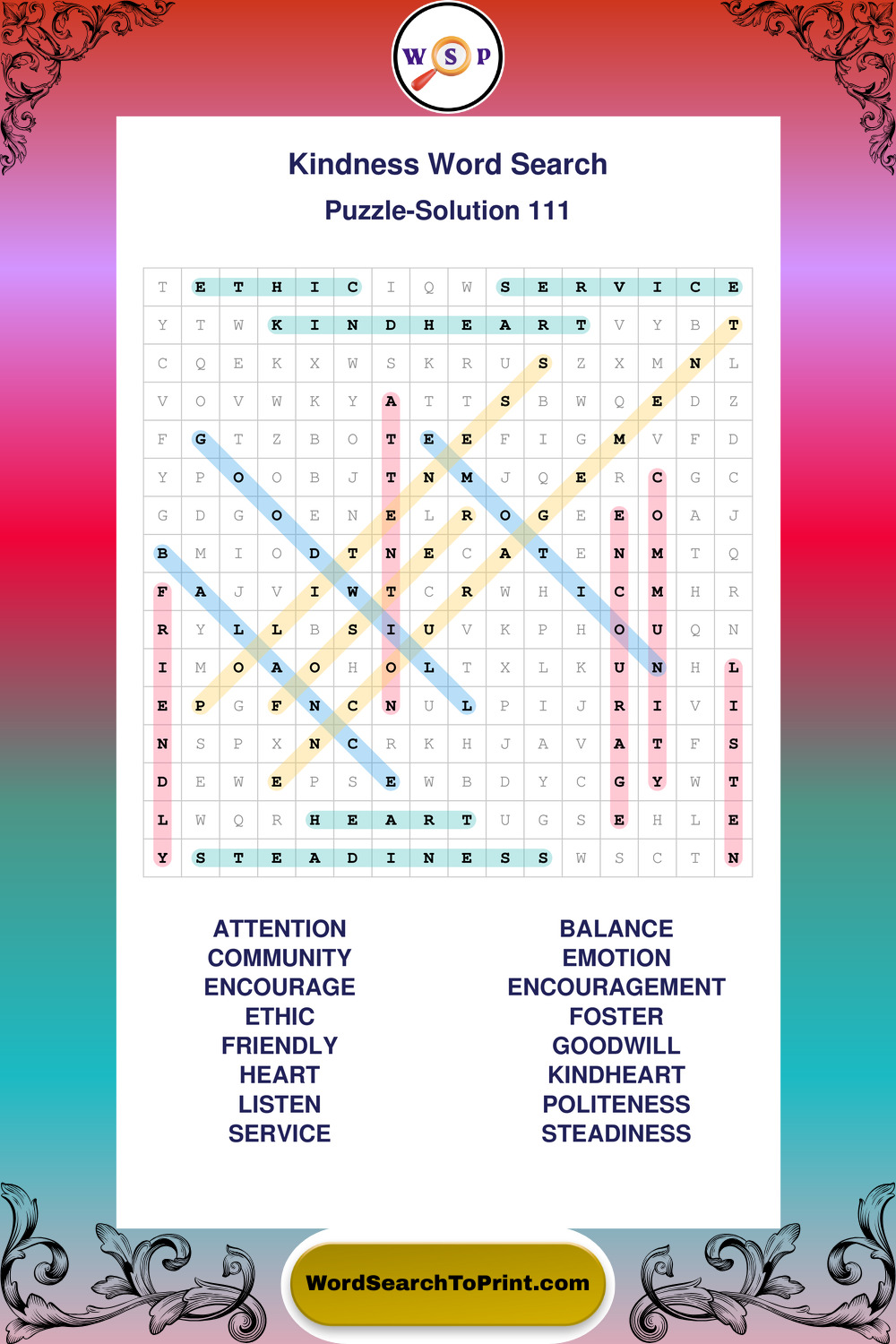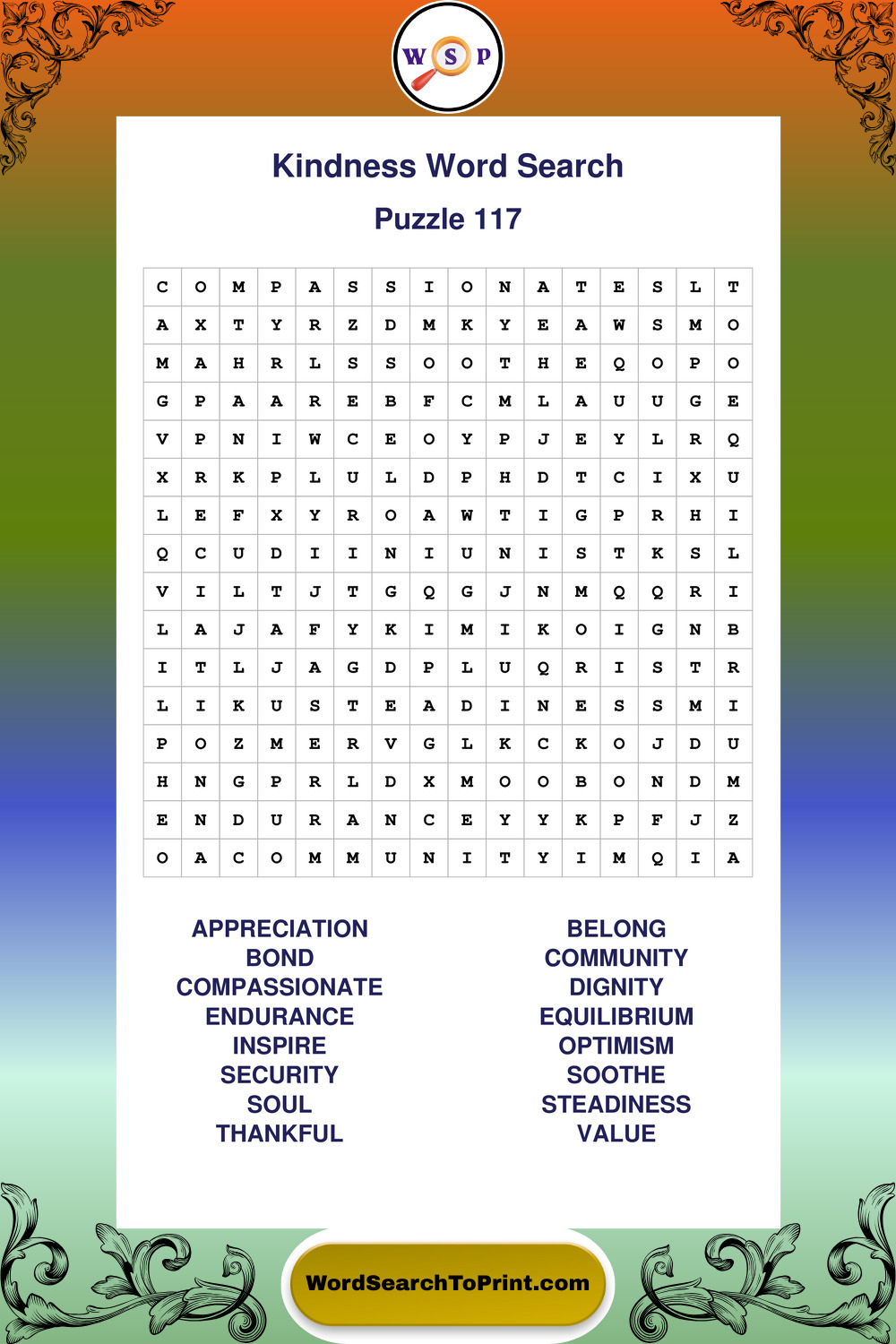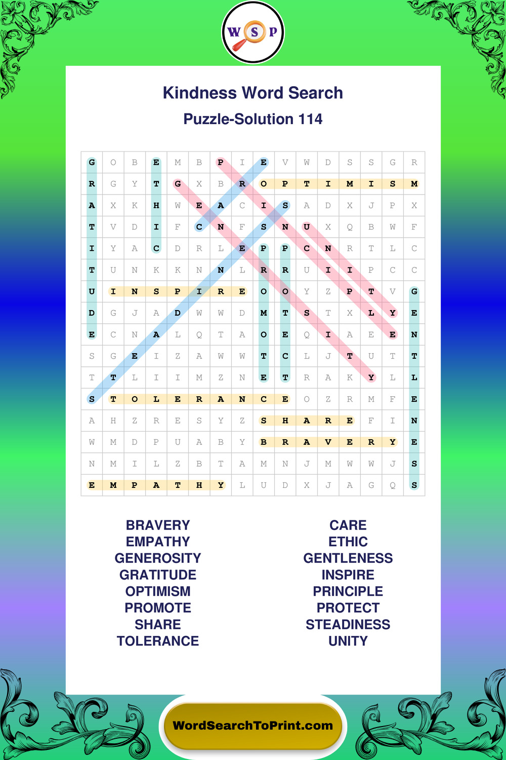 Printable Kindness Wordsearch Puzzles