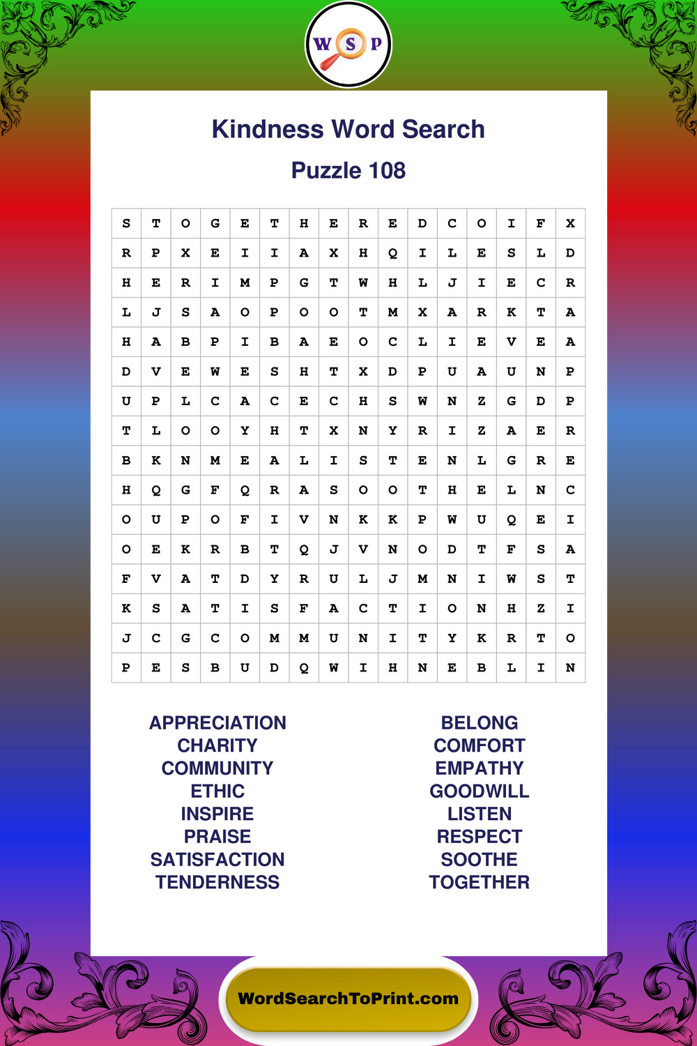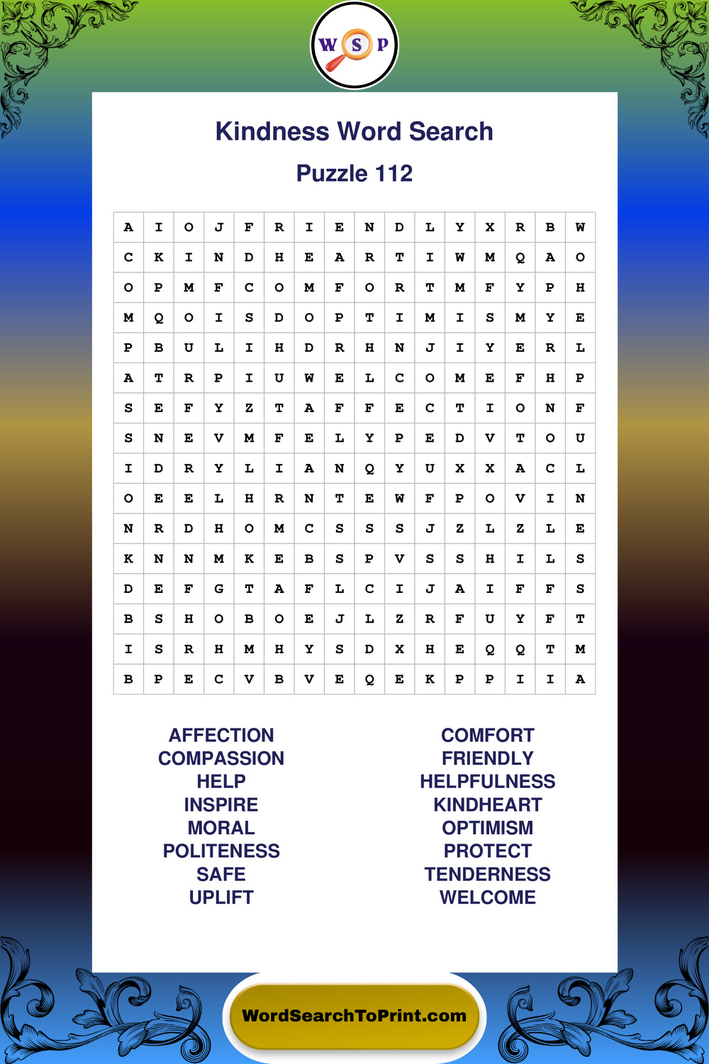A carefully designed collection of large print Kindness wordsearches created for comfort, clarity, and relaxed puzzle fun.