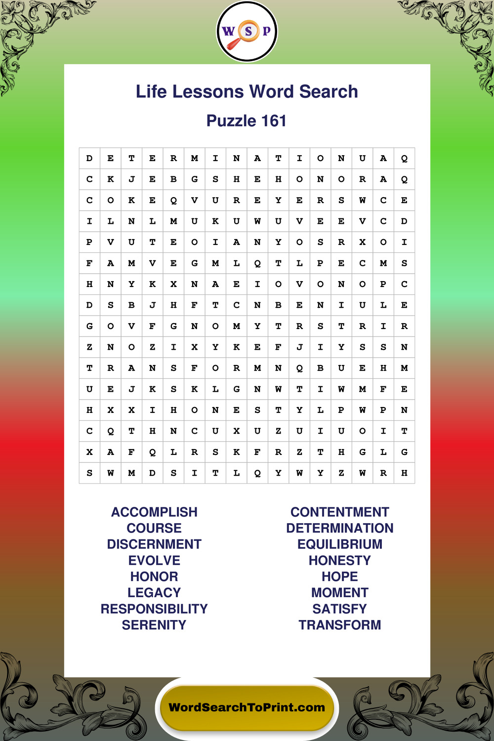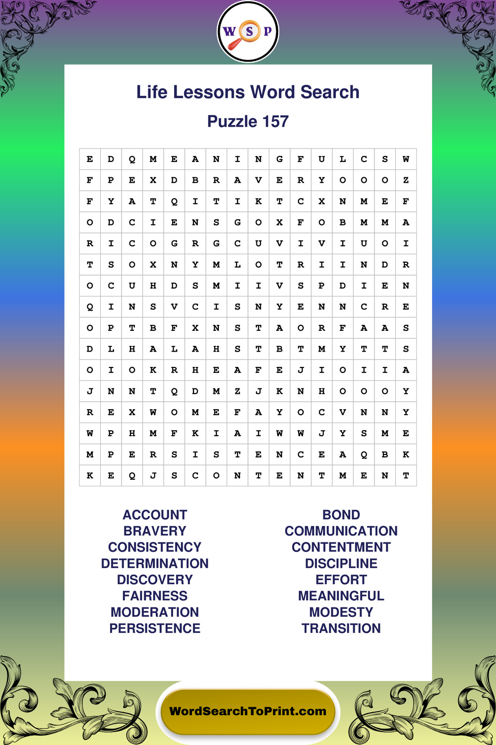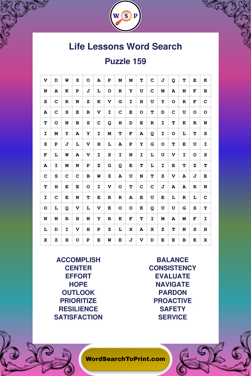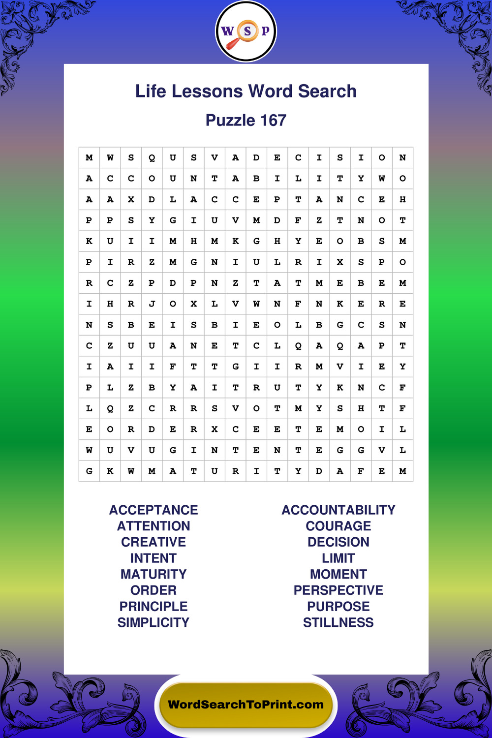 Printable Life Lessons Wordsearch Puzzles
