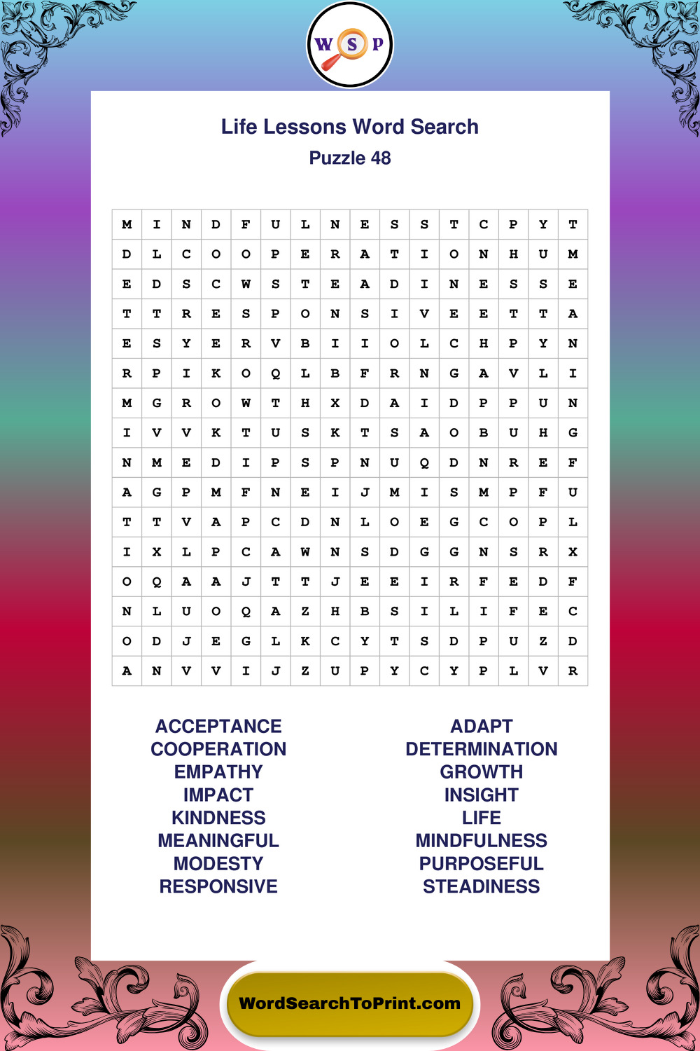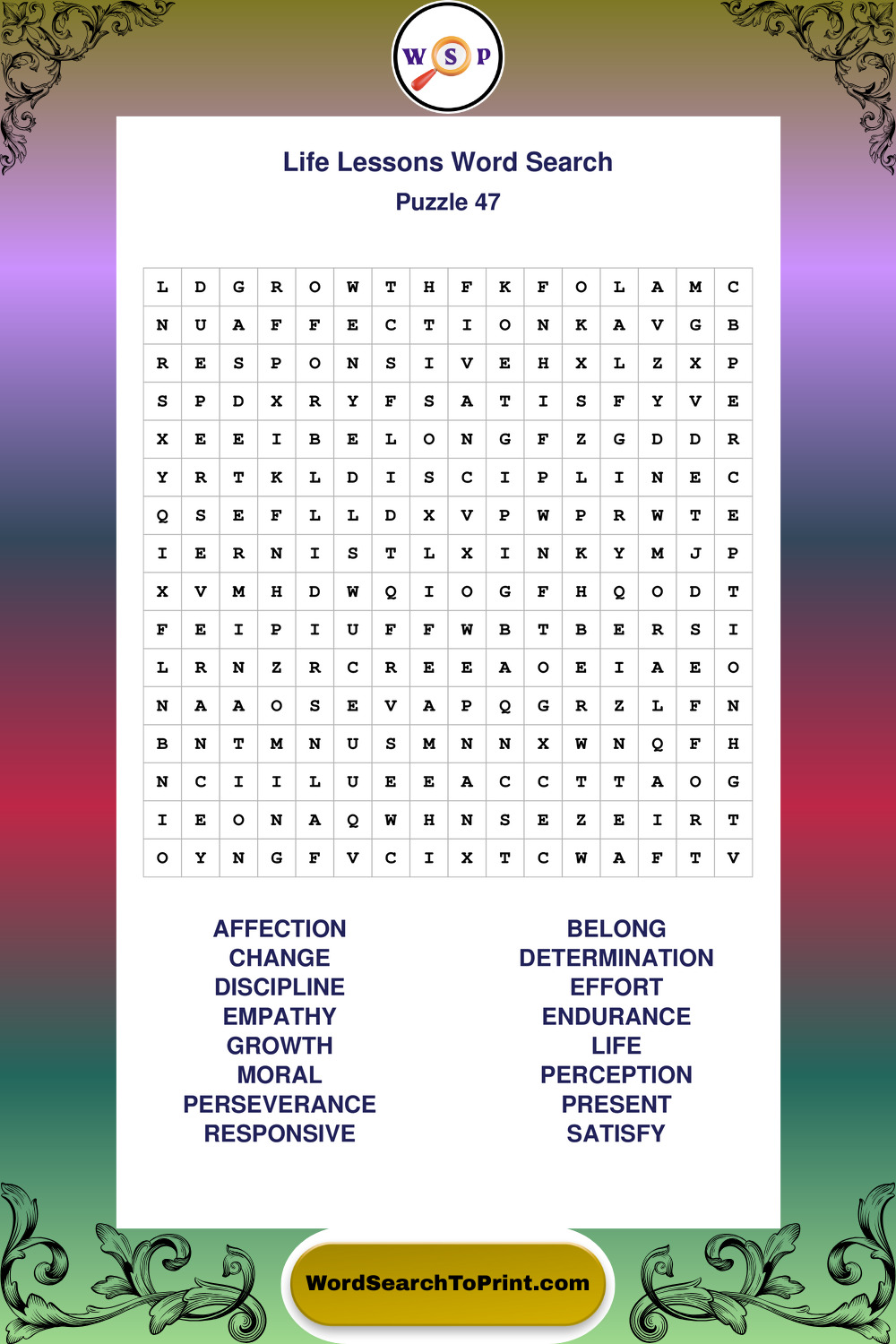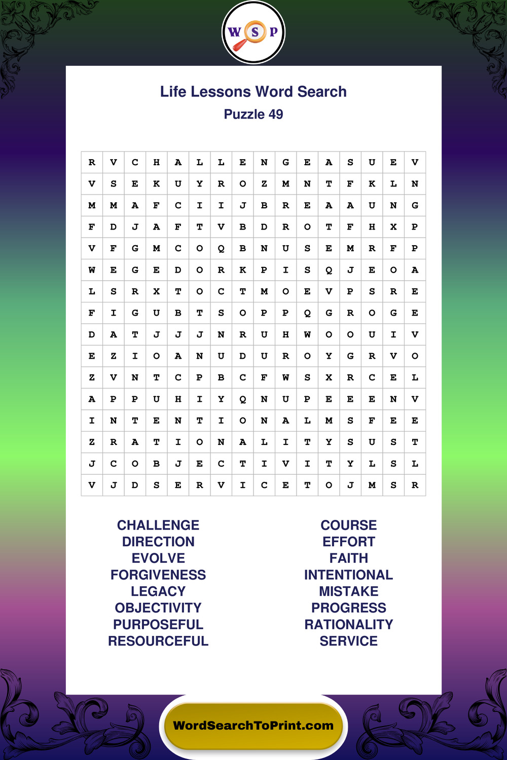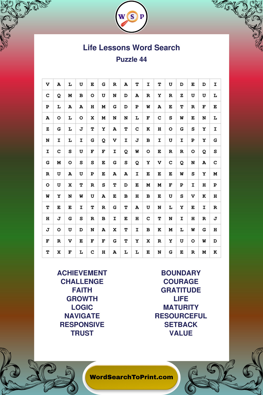 Printable Life Lessons Wordsearch Puzzles