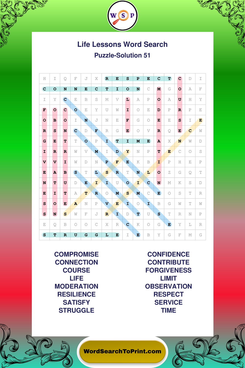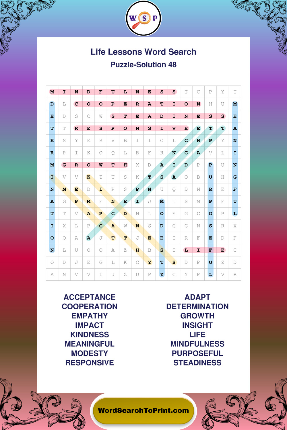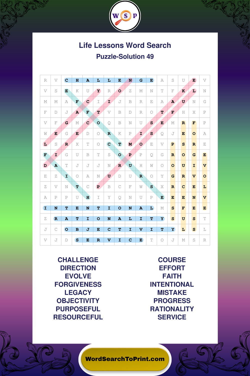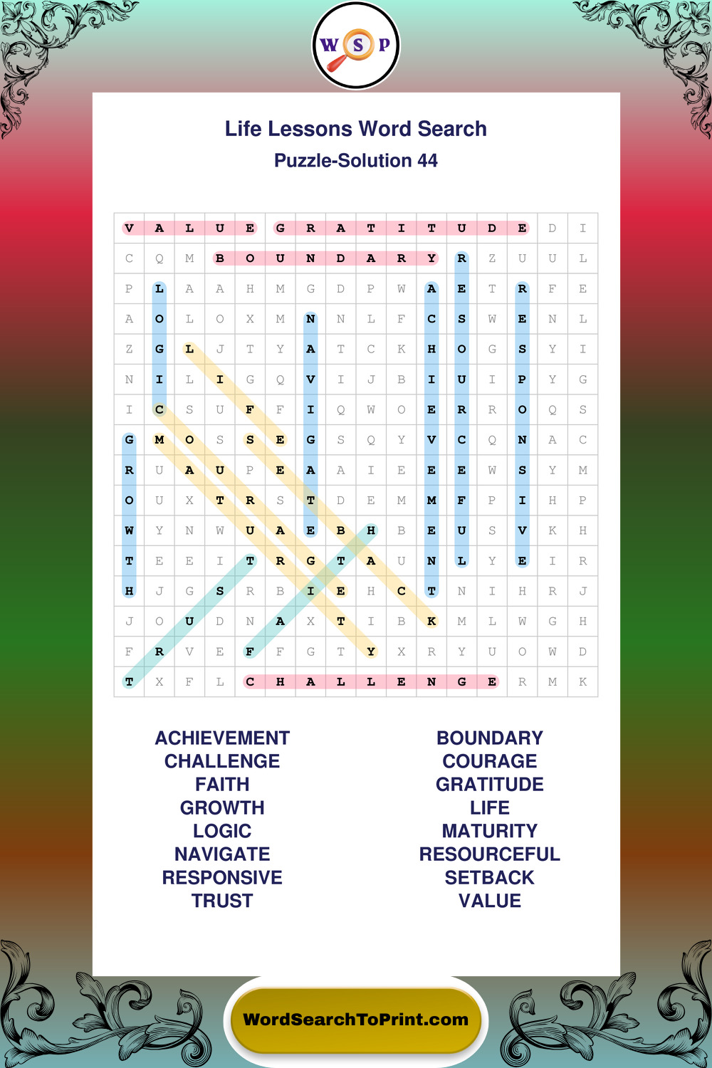 Printable Life Lessons Wordsearch Puzzles