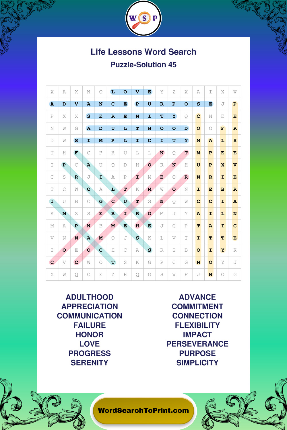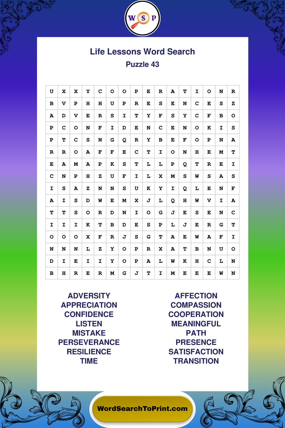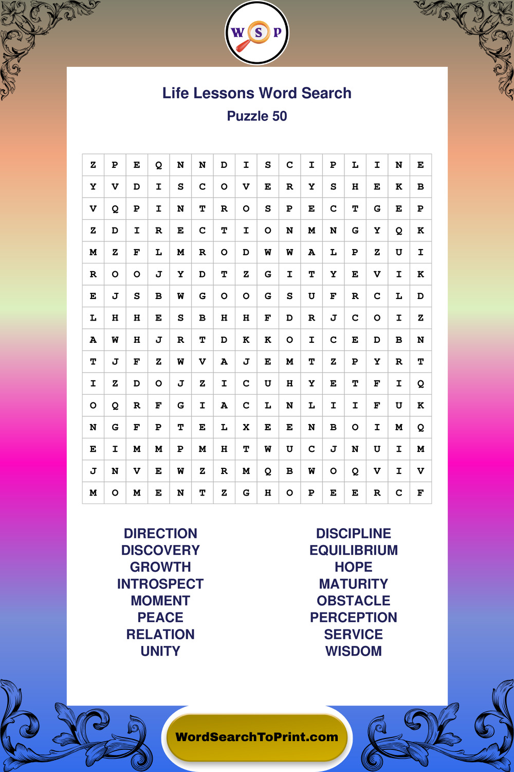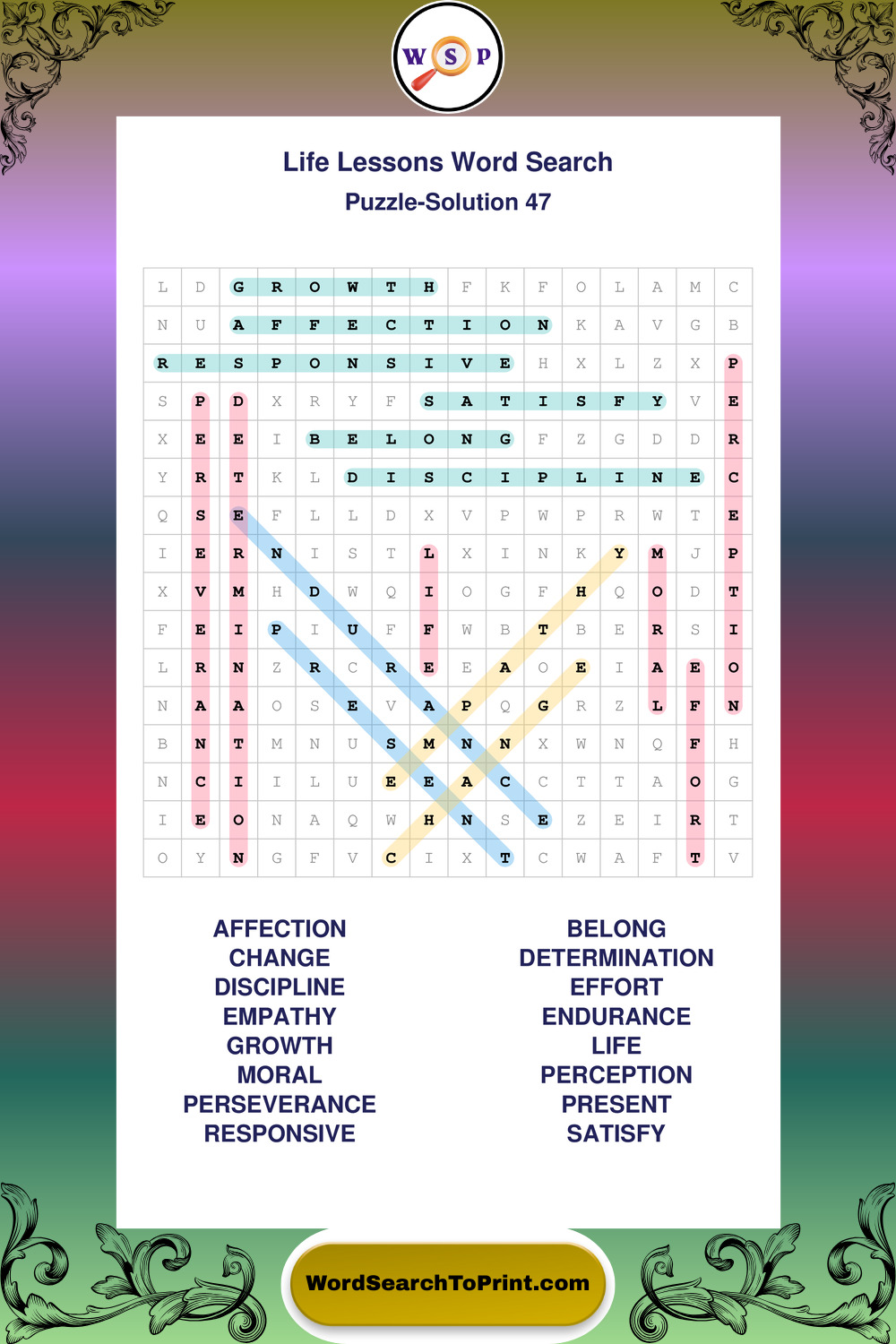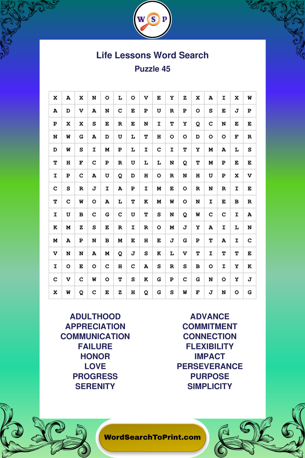 Printable Life Lessons Wordsearch Puzzles