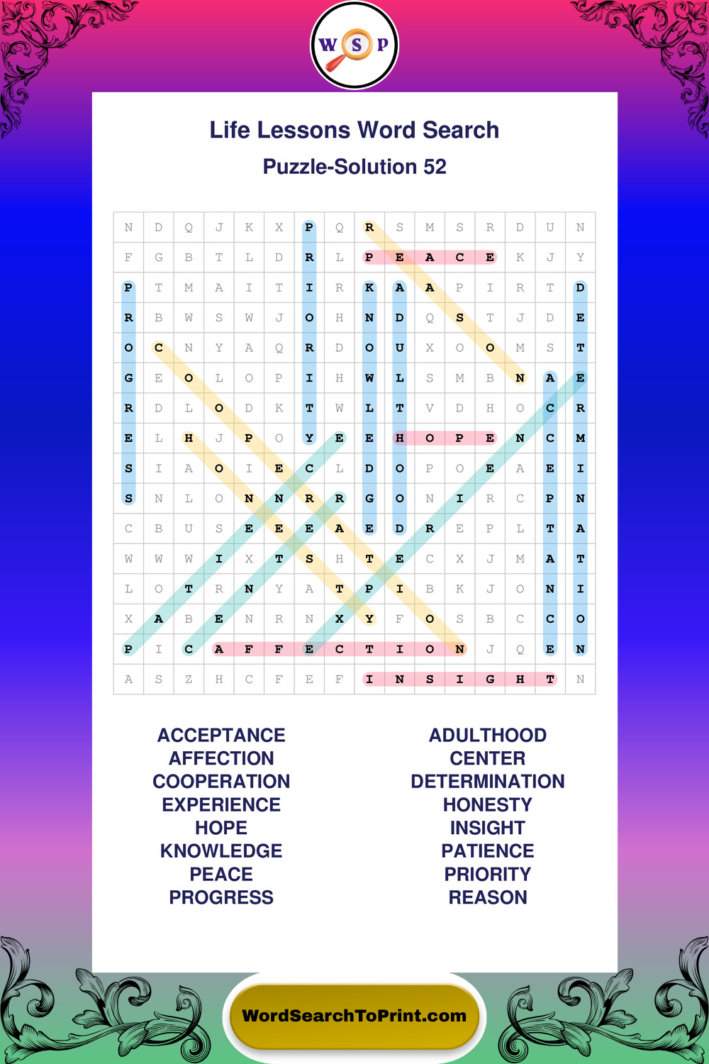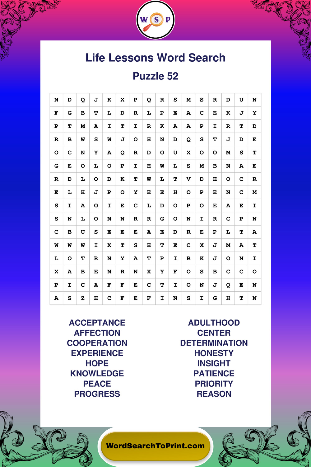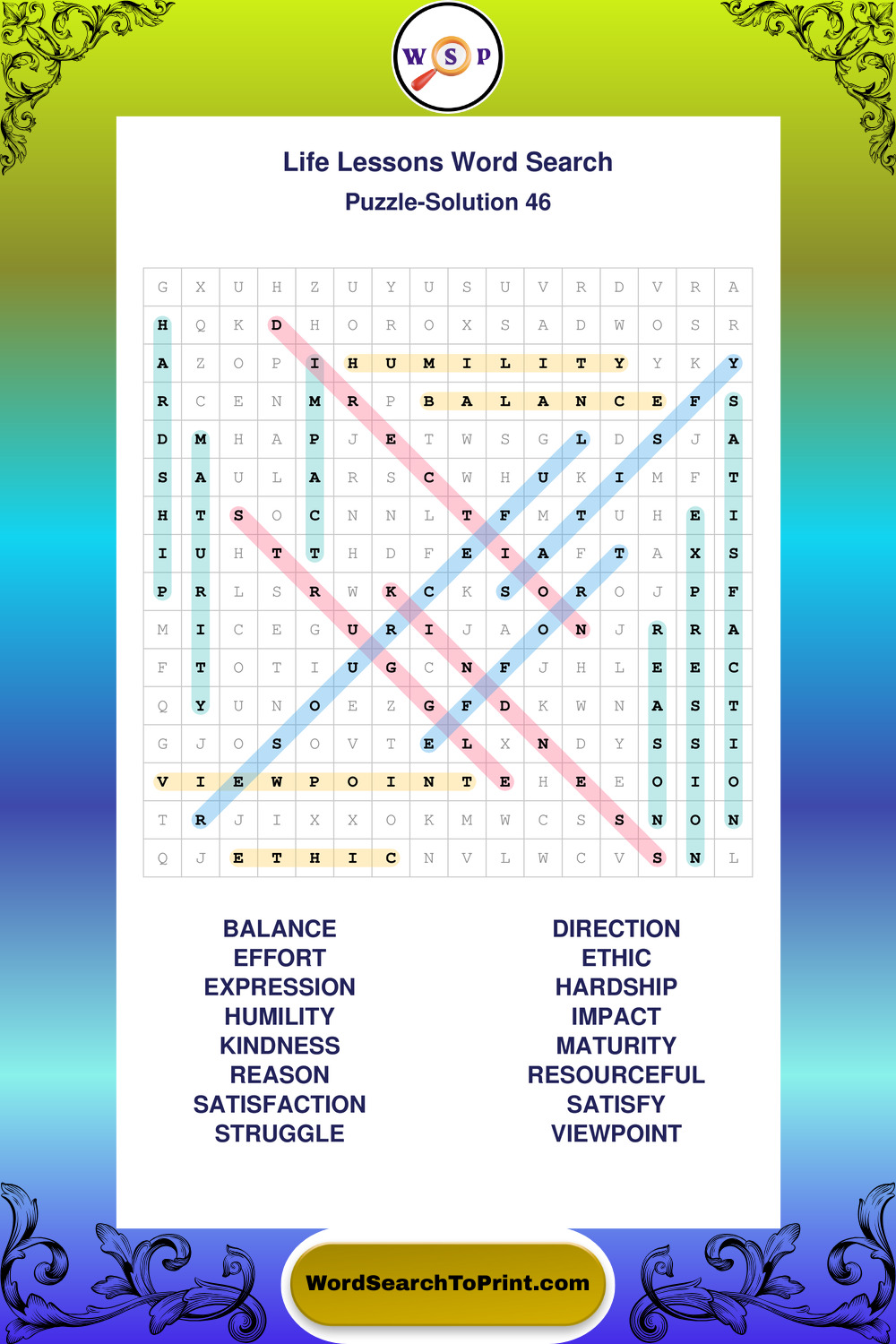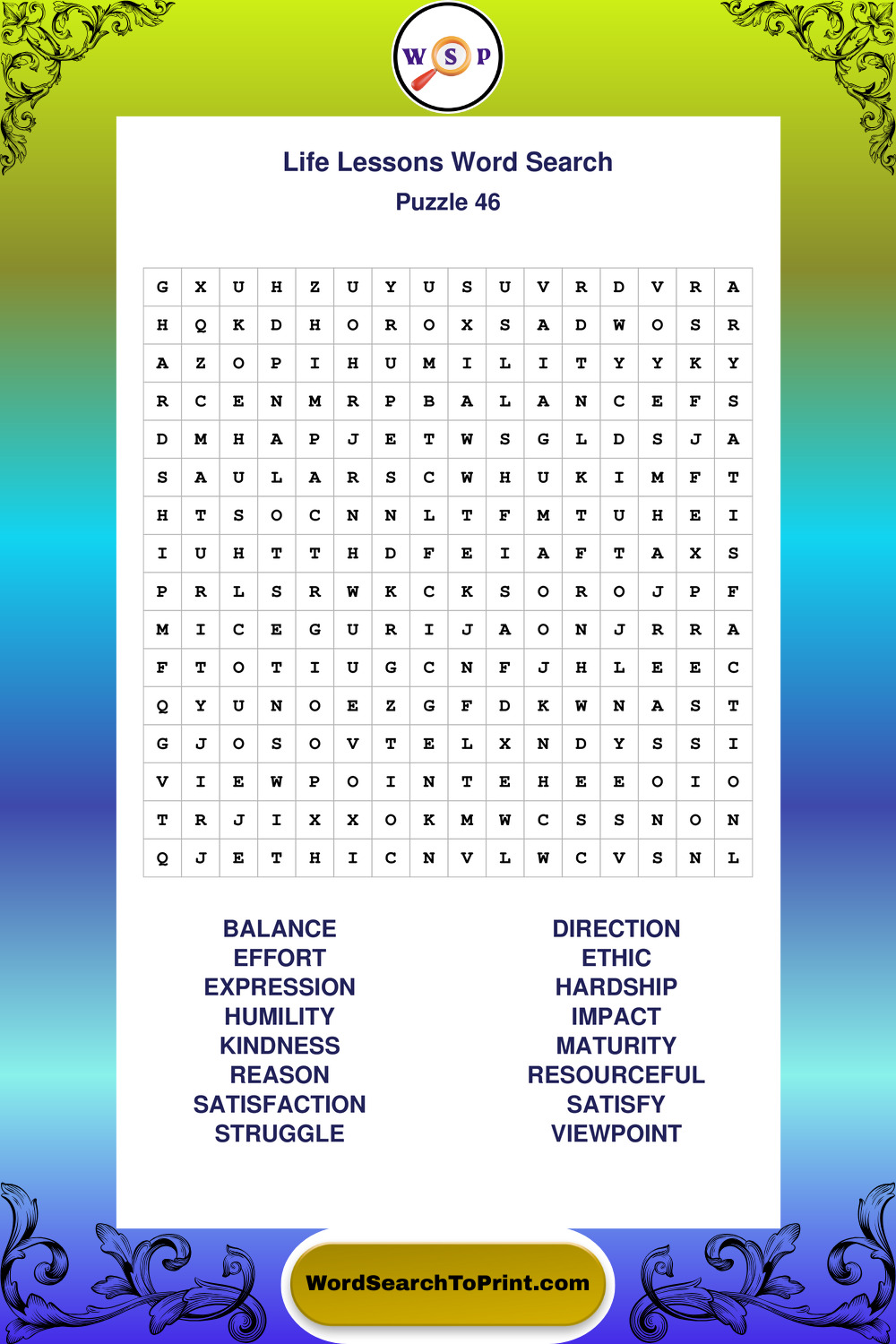 Printable Life Lessons Wordsearch Puzzles