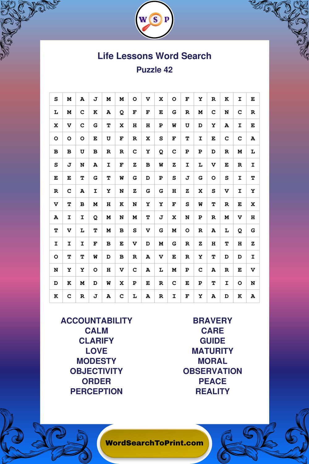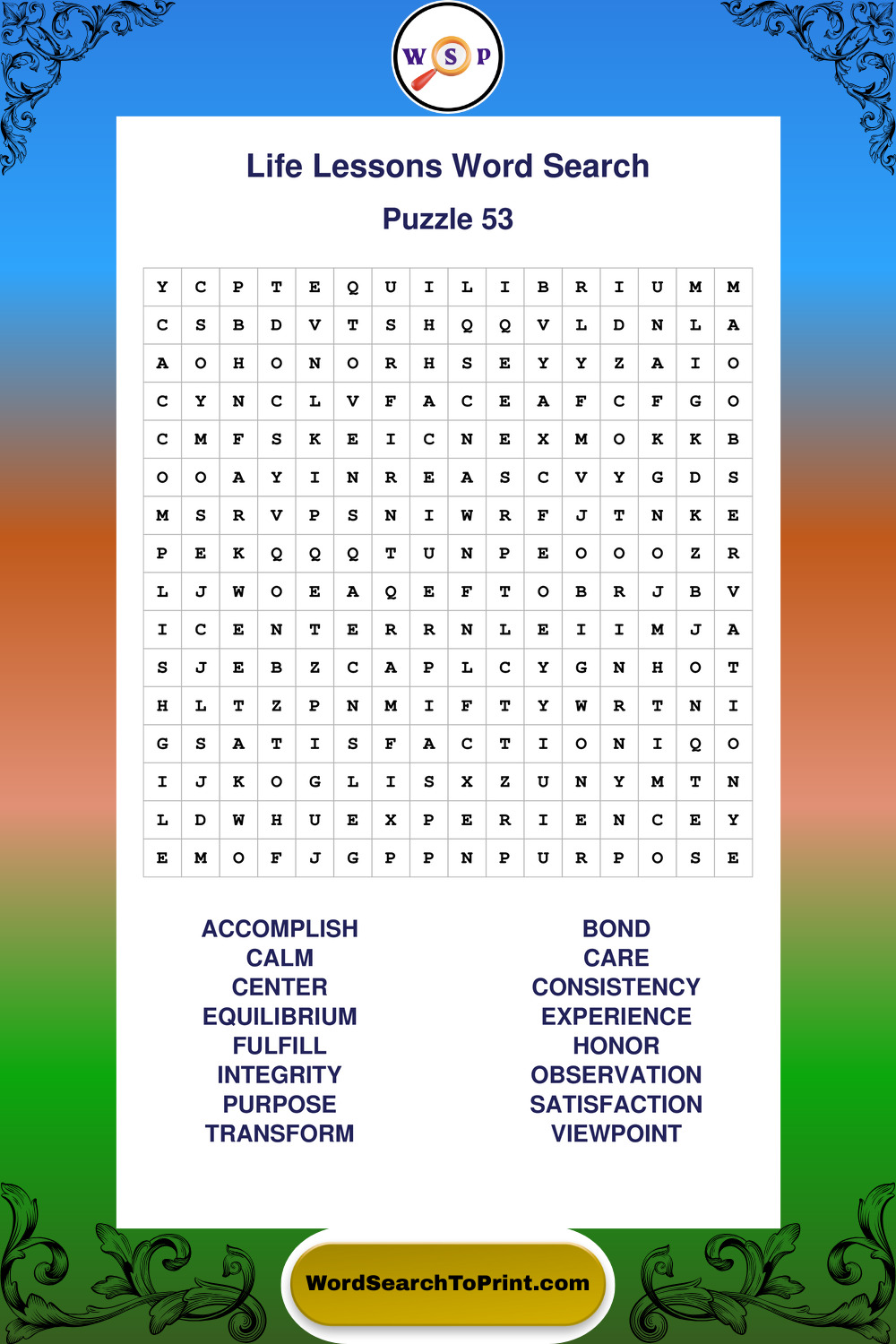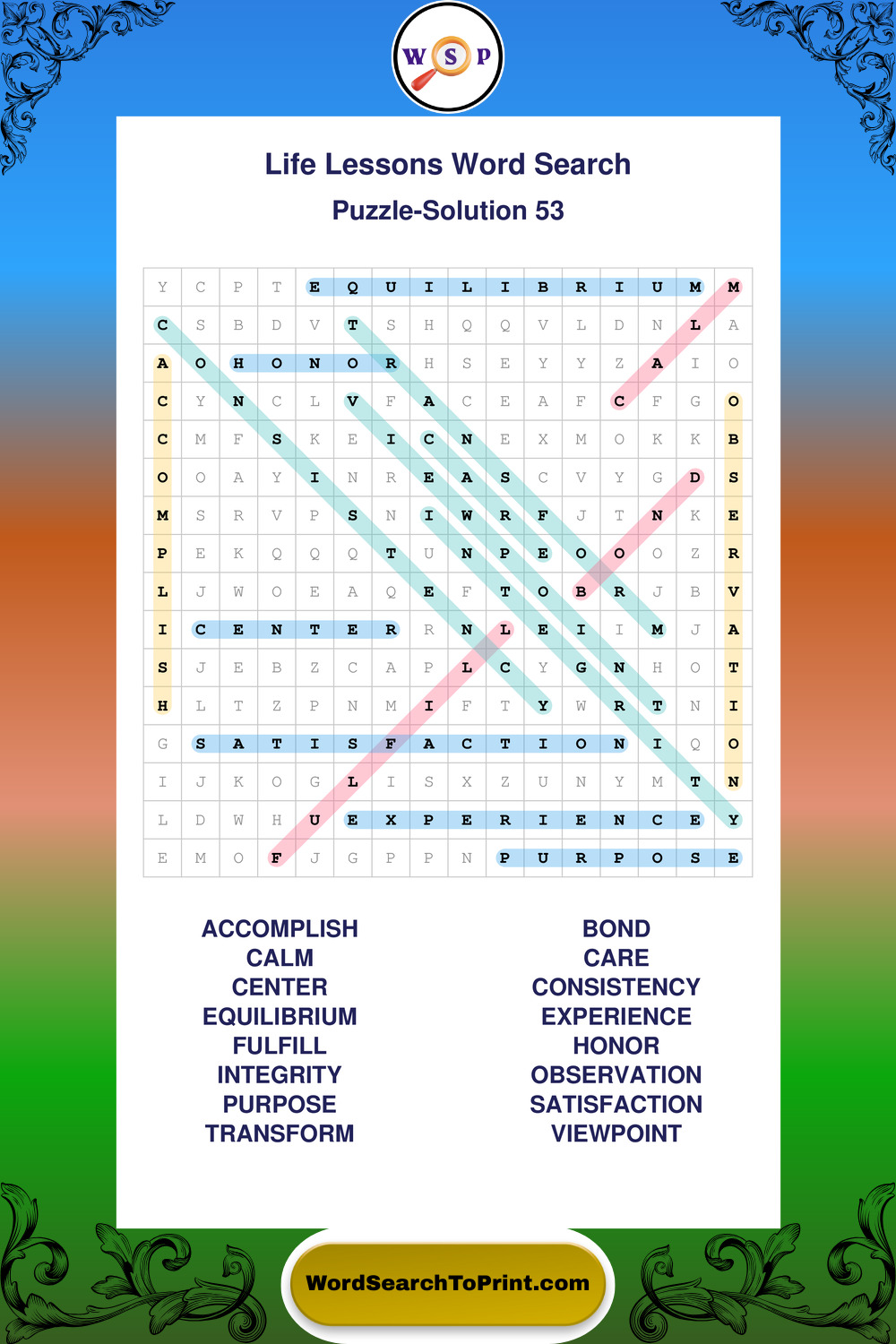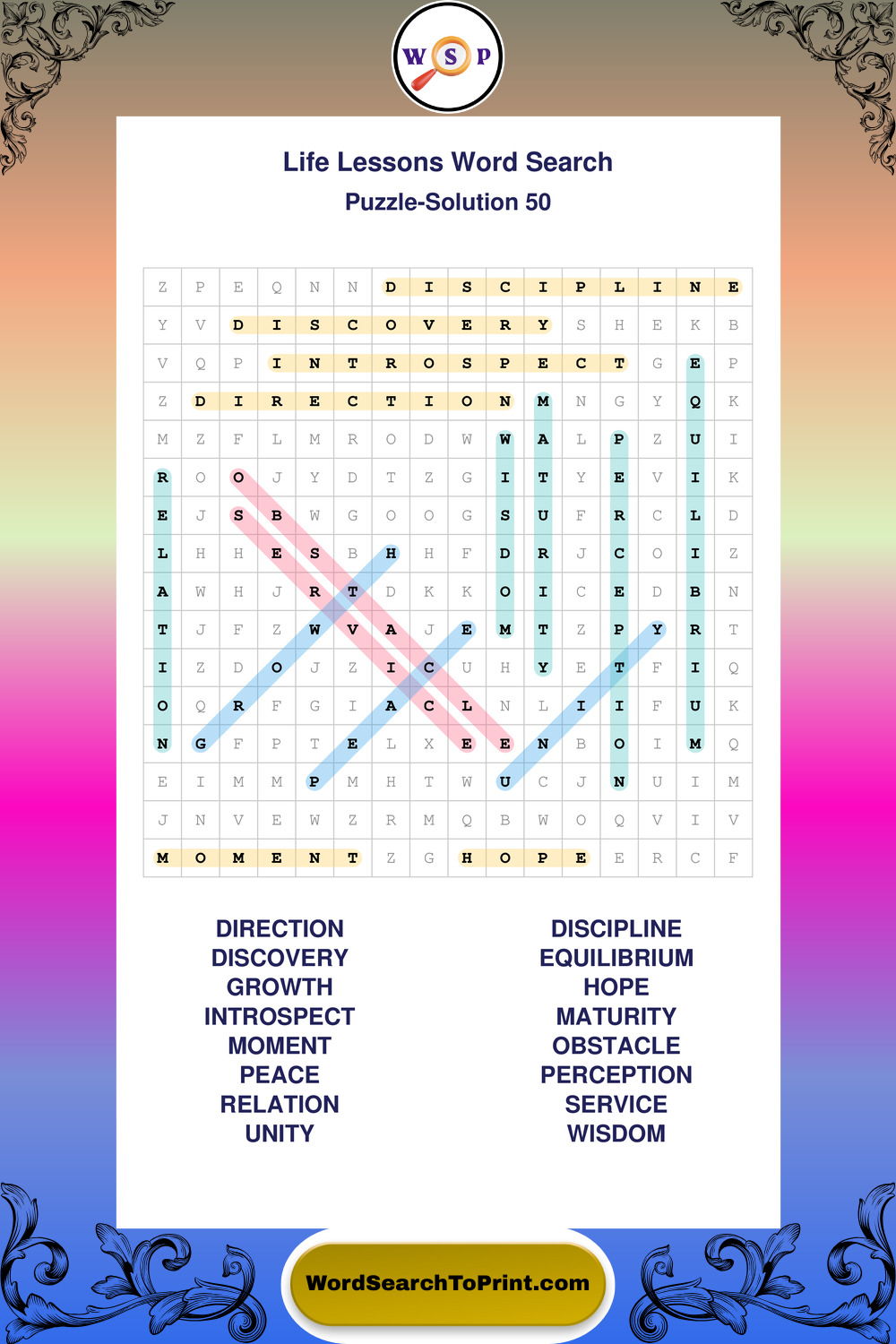 Printable Life Lessons Wordsearch Puzzles