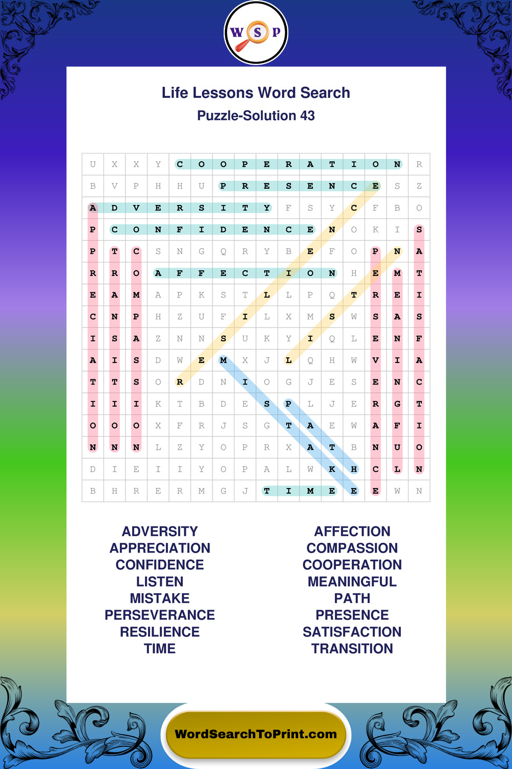 Life Lessons Wordsearches