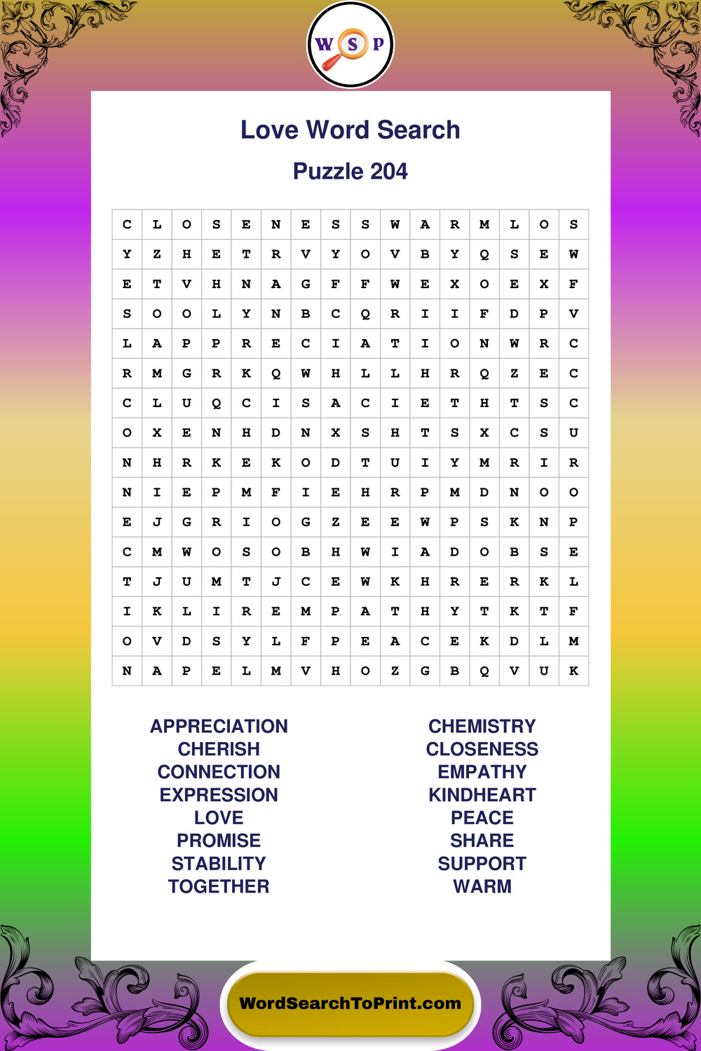 Printable Love Wordsearch Puzzles