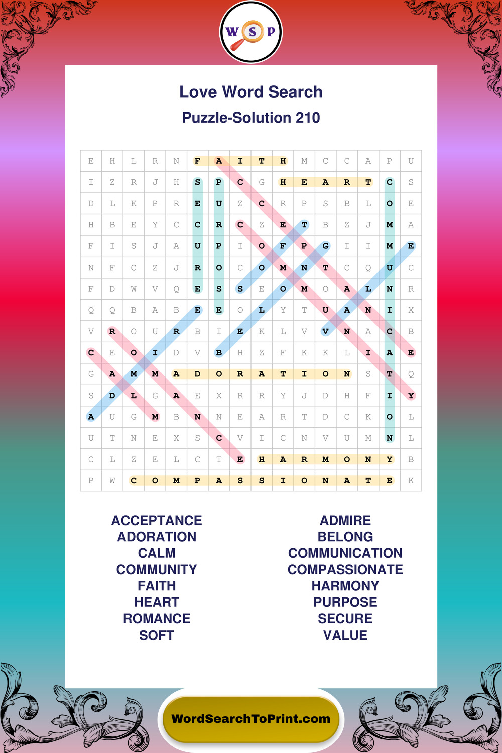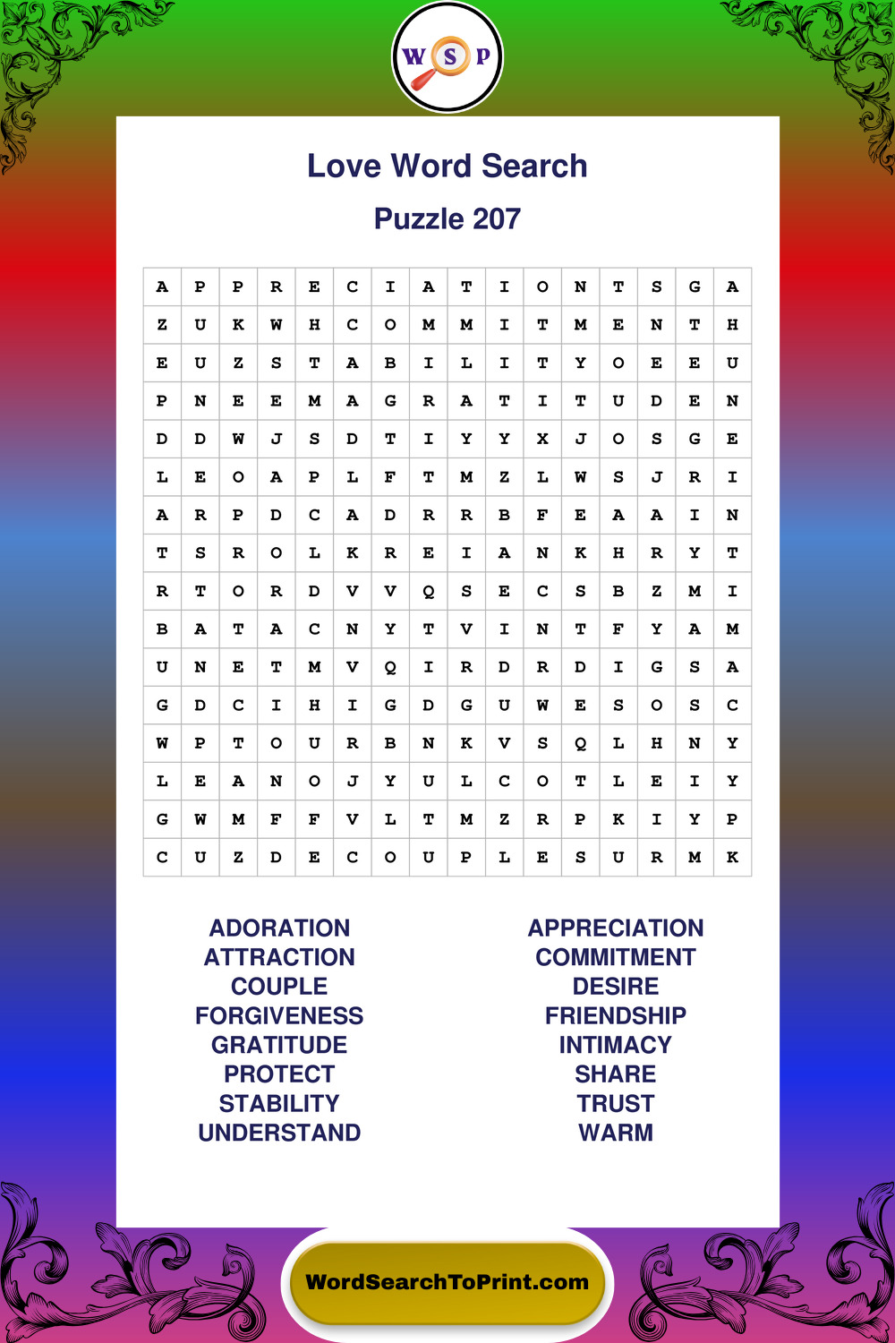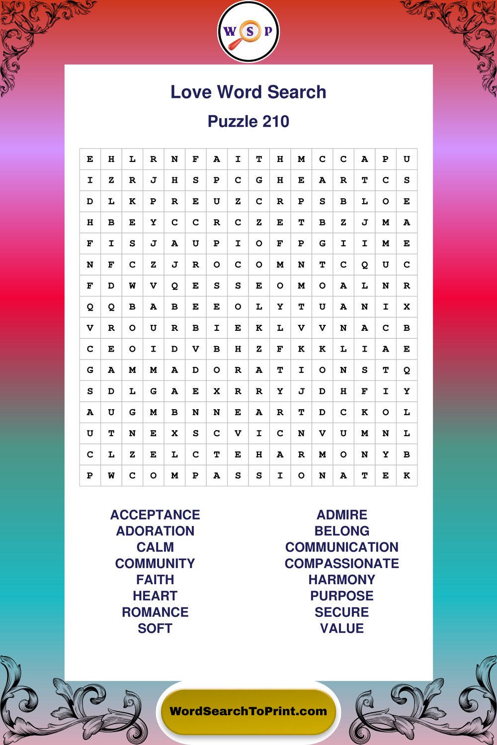 Printable Love Wordsearch Puzzles
