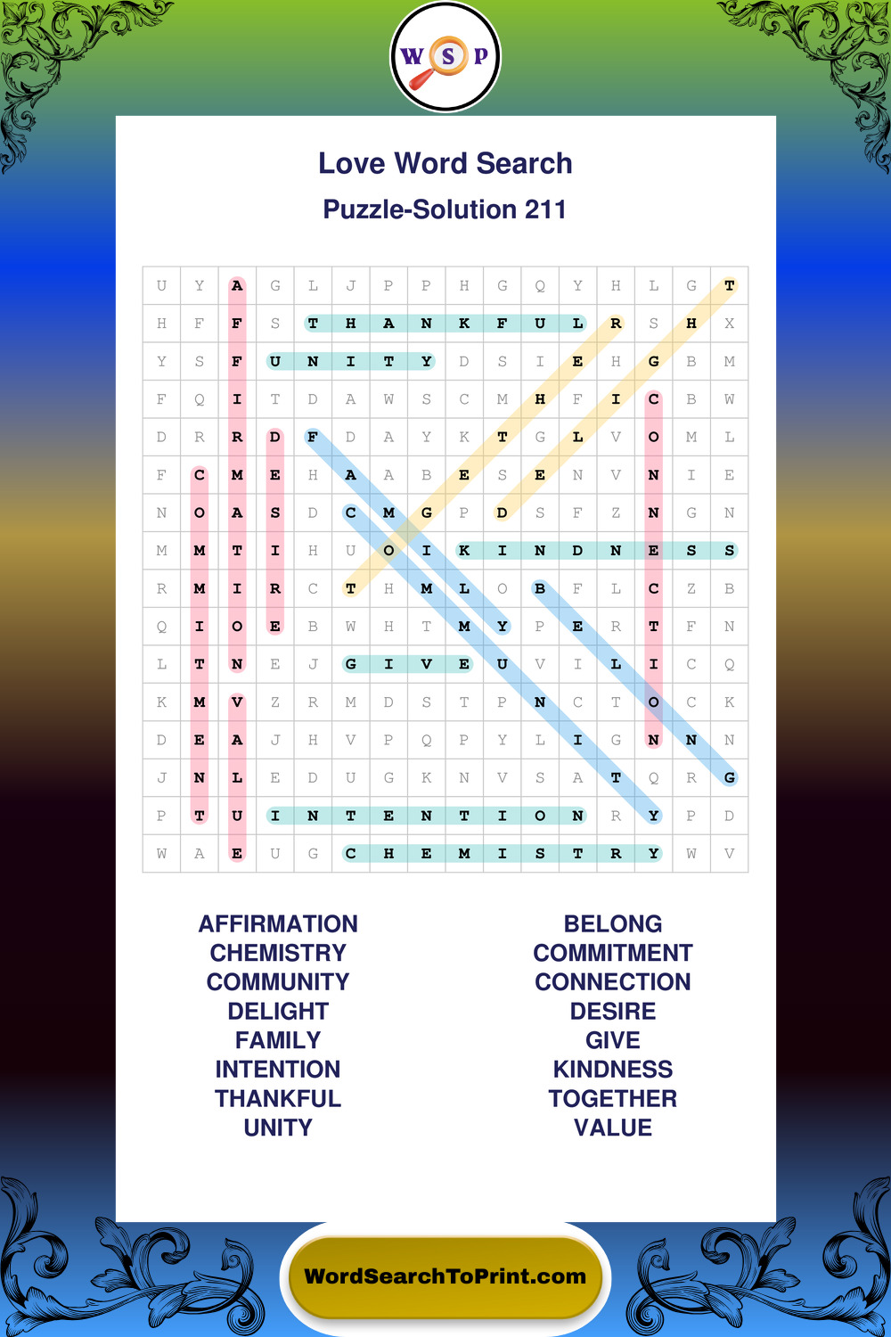These puzzles focus on family, friendship, affection, kindness, and meaningful personal connections. They provide a relaxing and effective way to connect with this subject while supporting memory and language skills. You may also enjoy our Friendship word search puzzles and Family word search puzzles.