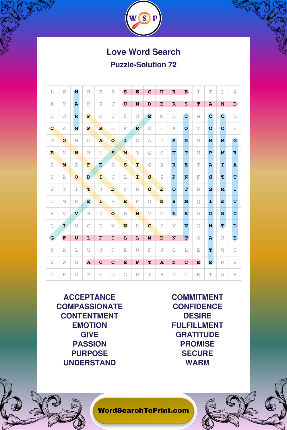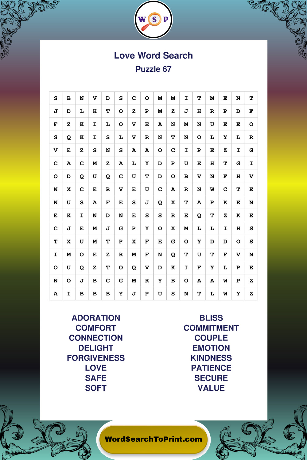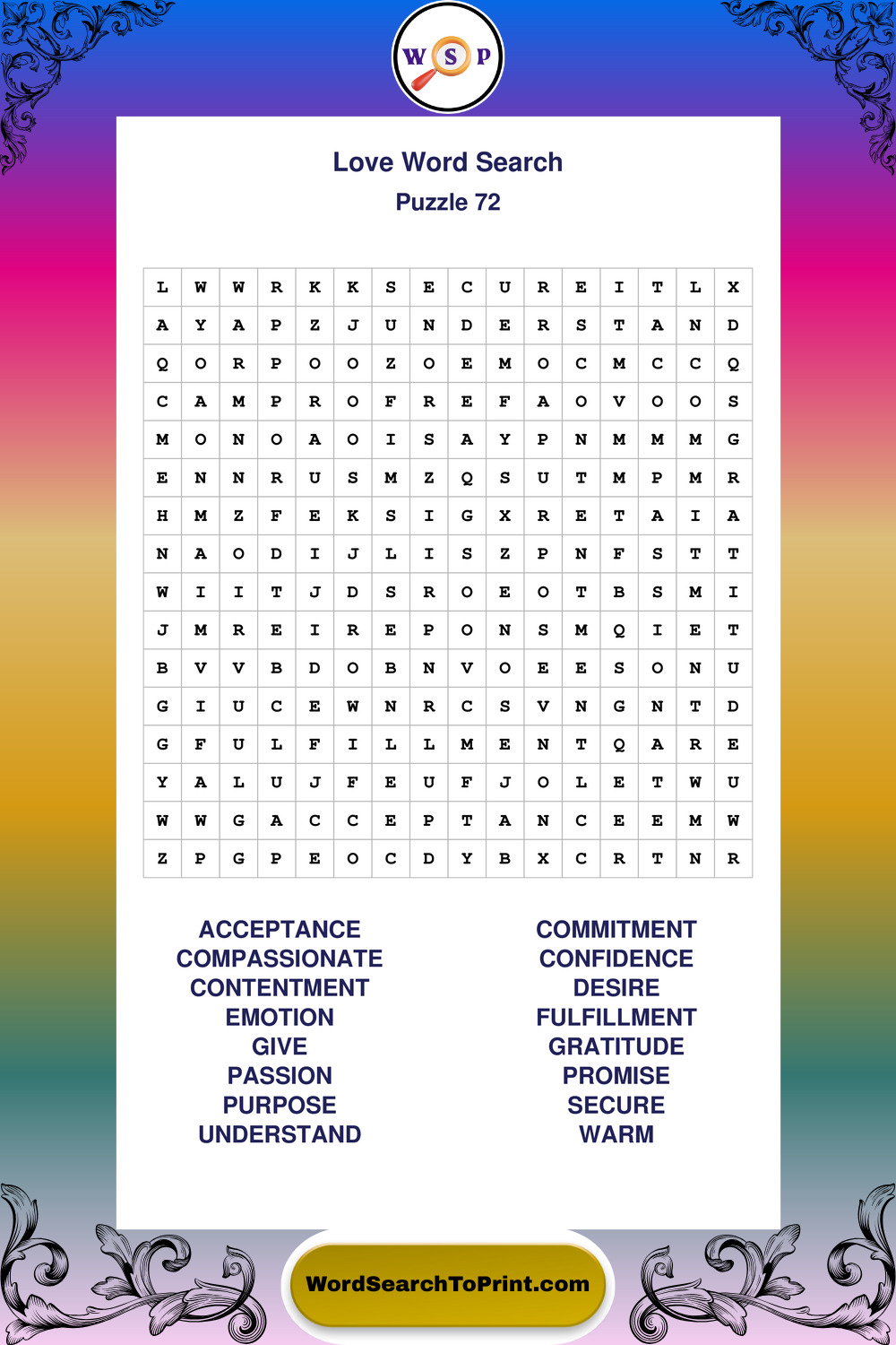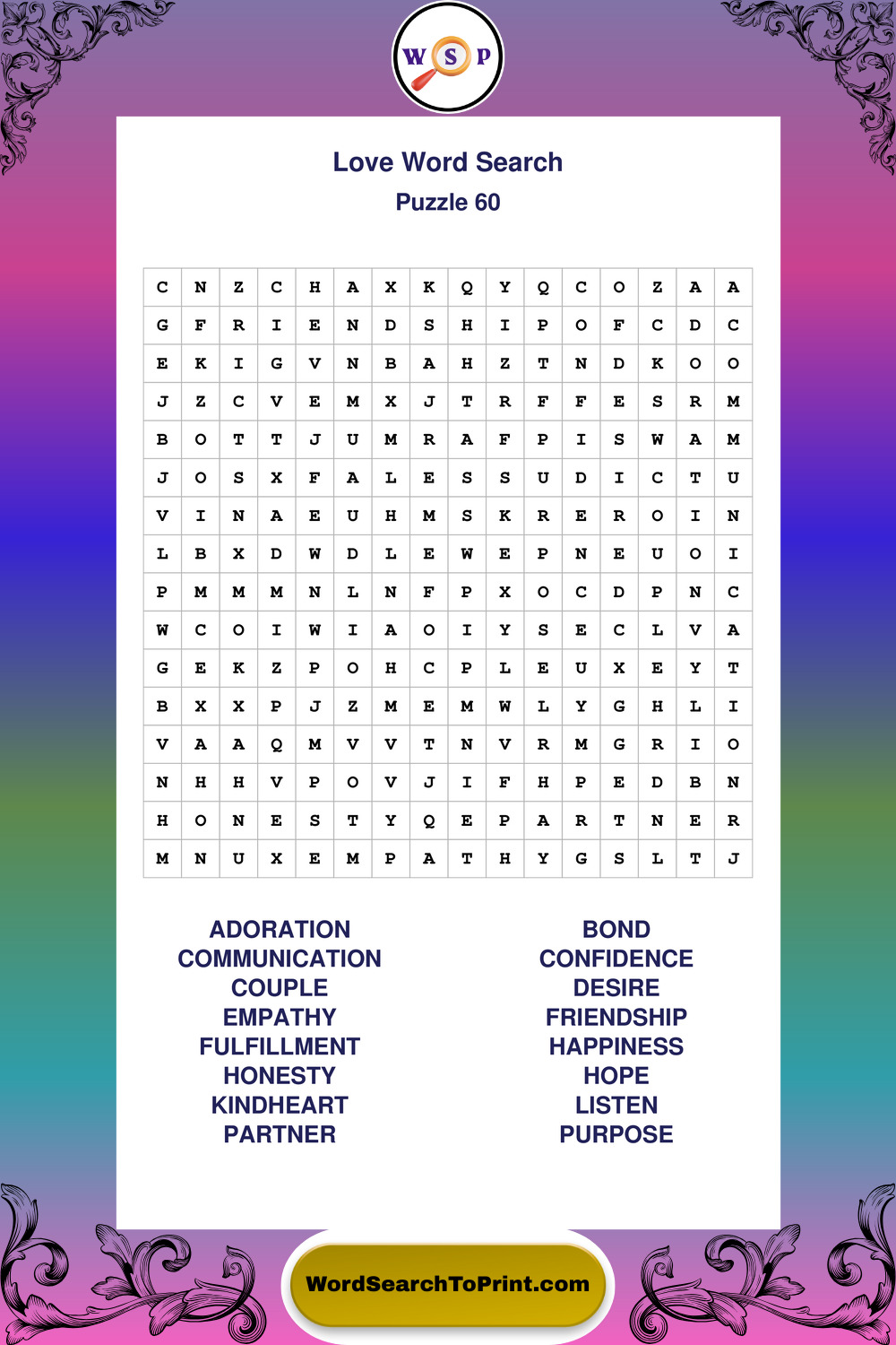 Printable Love Wordsearch Puzzles
