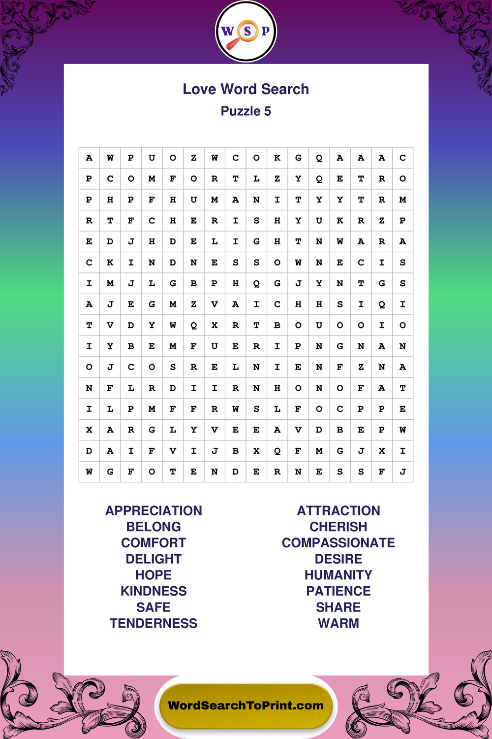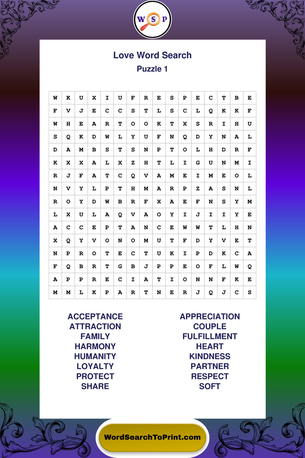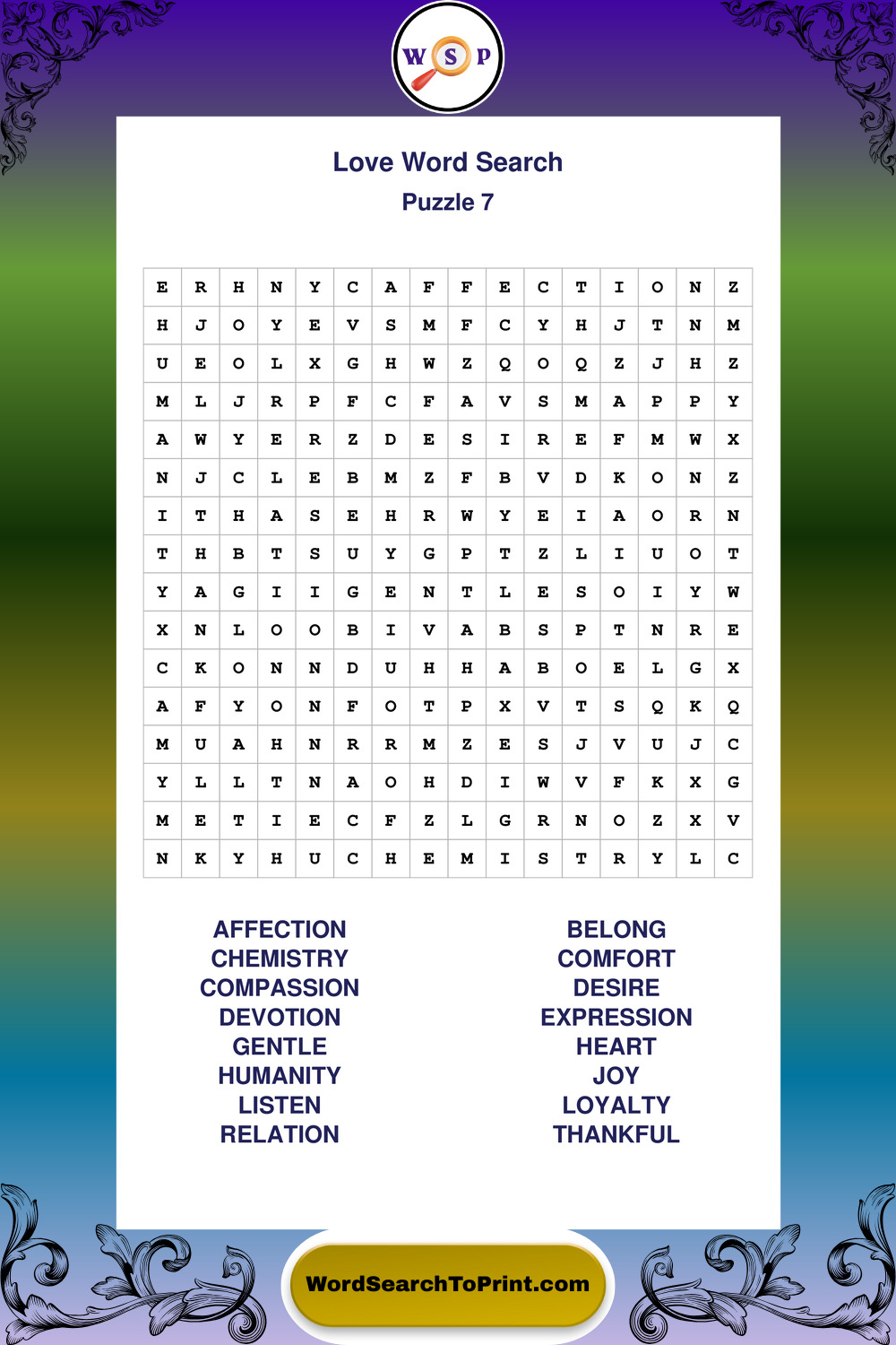 These puzzles focus on family, friendship, affection, kindness, and meaningful personal connections. They provide a relaxing and effective way to connect with this subject while supporting memory and language skills. You may also enjoy our Friendship word search puzzles and Family word search puzzles.