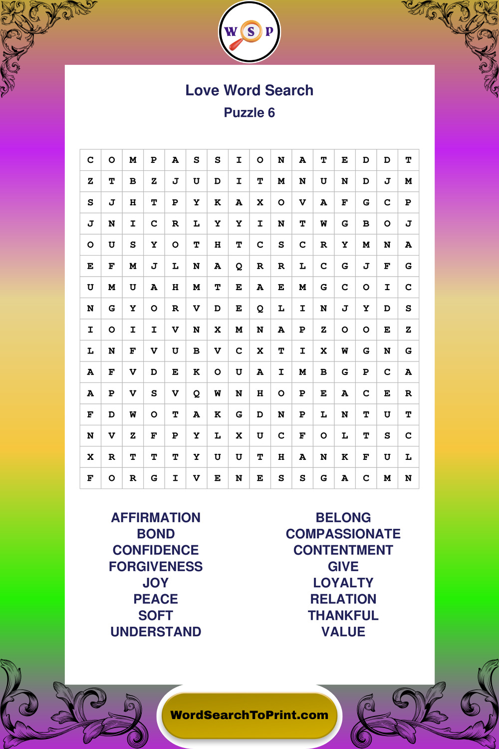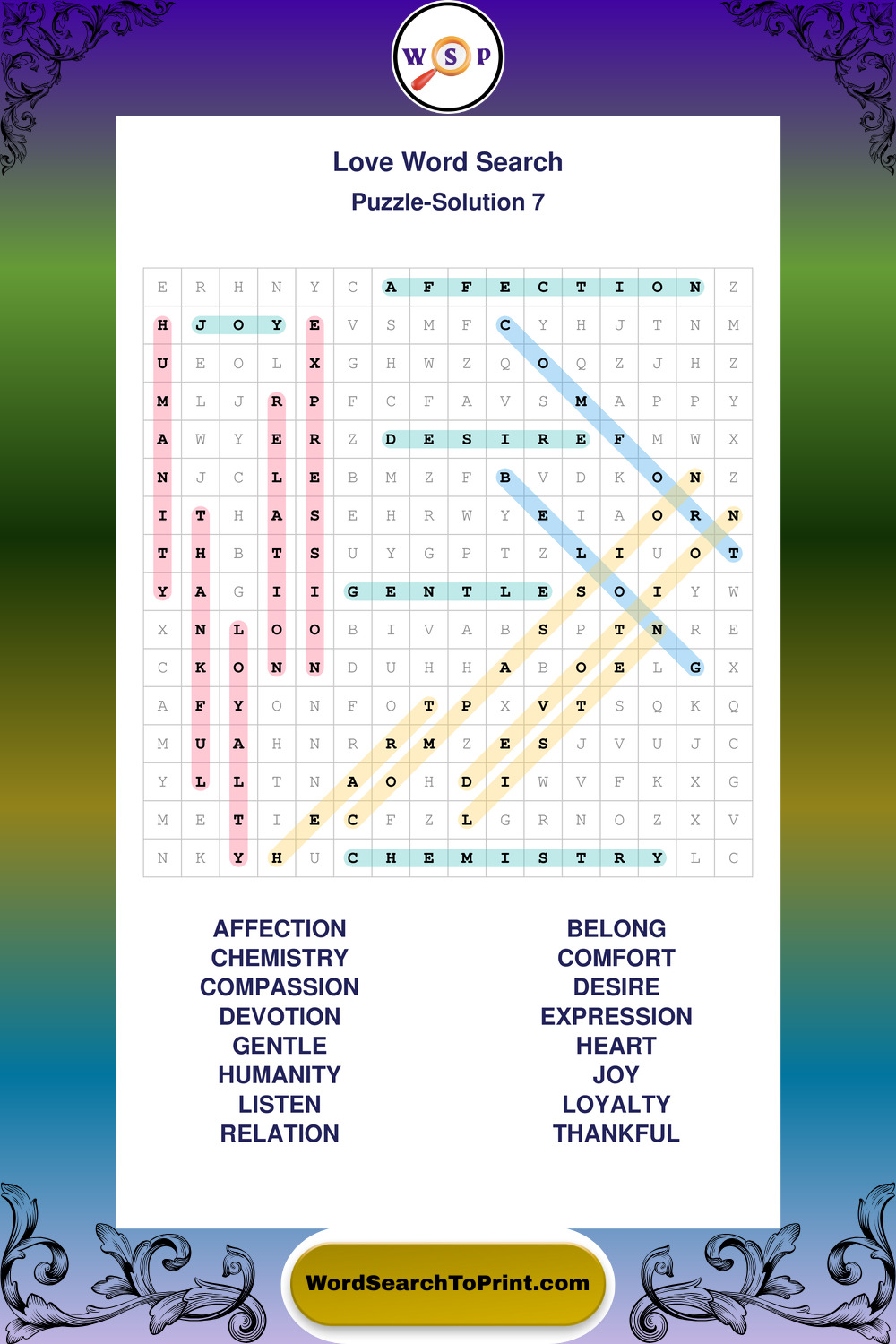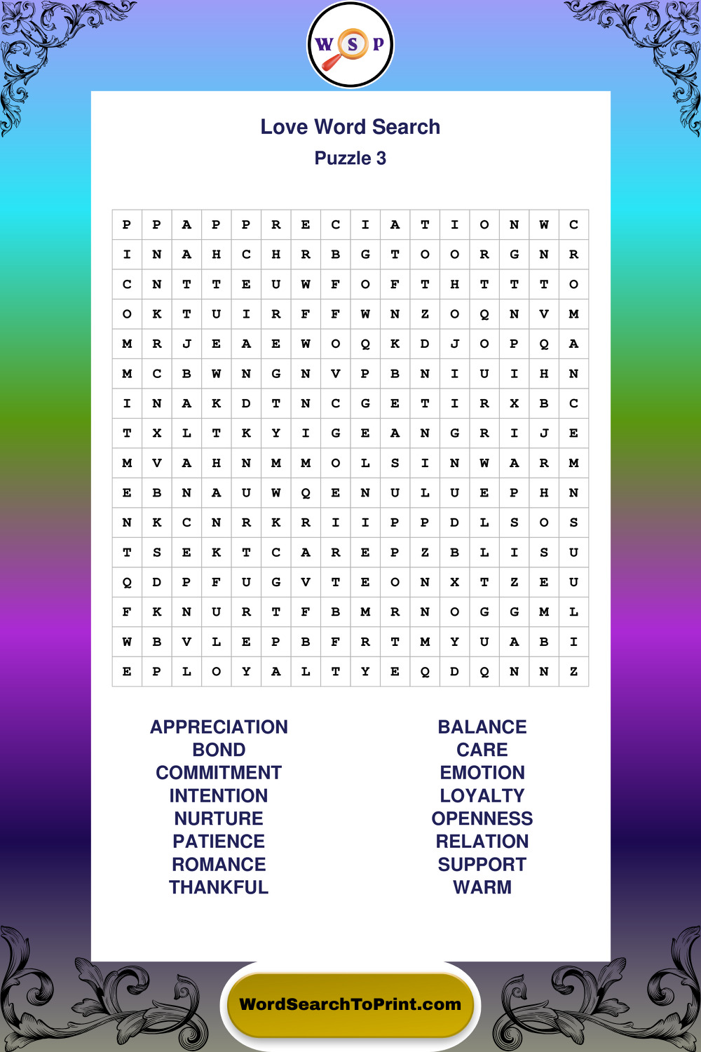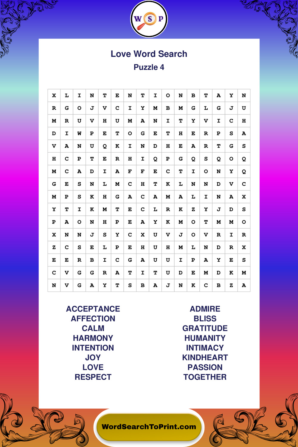 These puzzles focus on family, friendship, affection, kindness, and meaningful personal connections. They provide a relaxing and effective way to connect with this subject while supporting memory and language skills. You may also enjoy our Friendship word search puzzles and Family word search puzzles.
