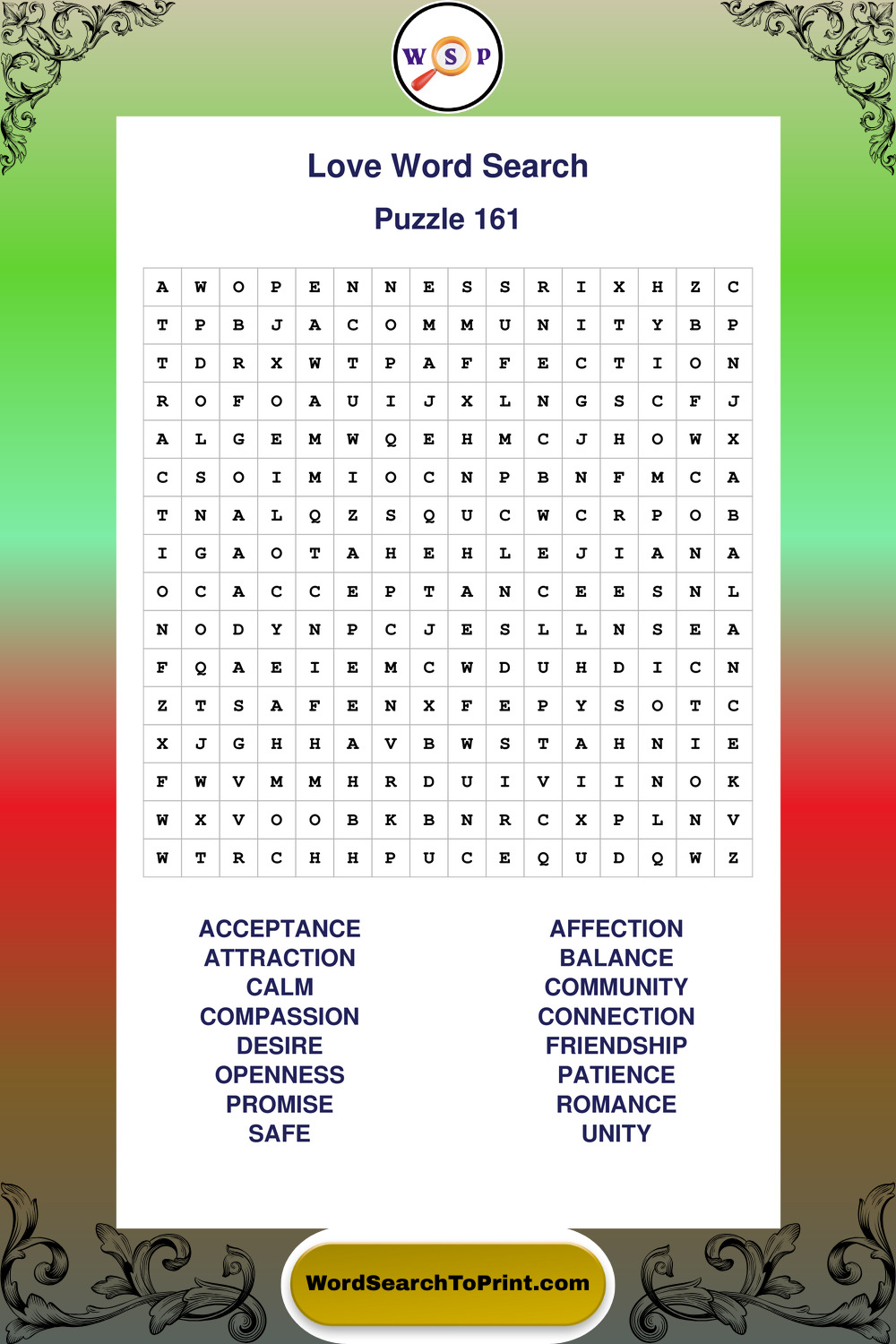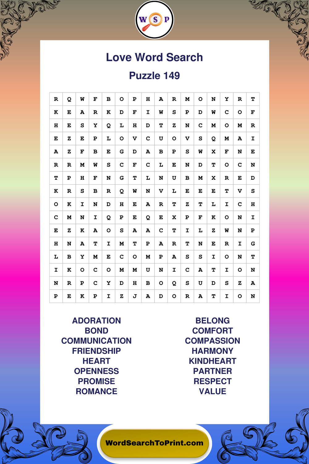 Printable Love Wordsearch Puzzles