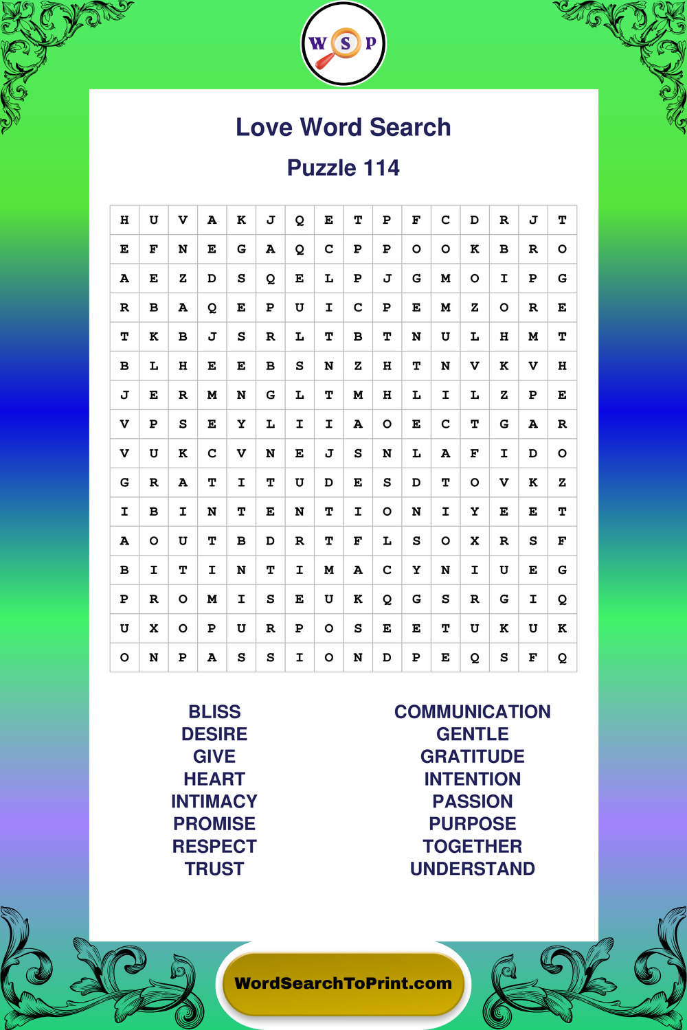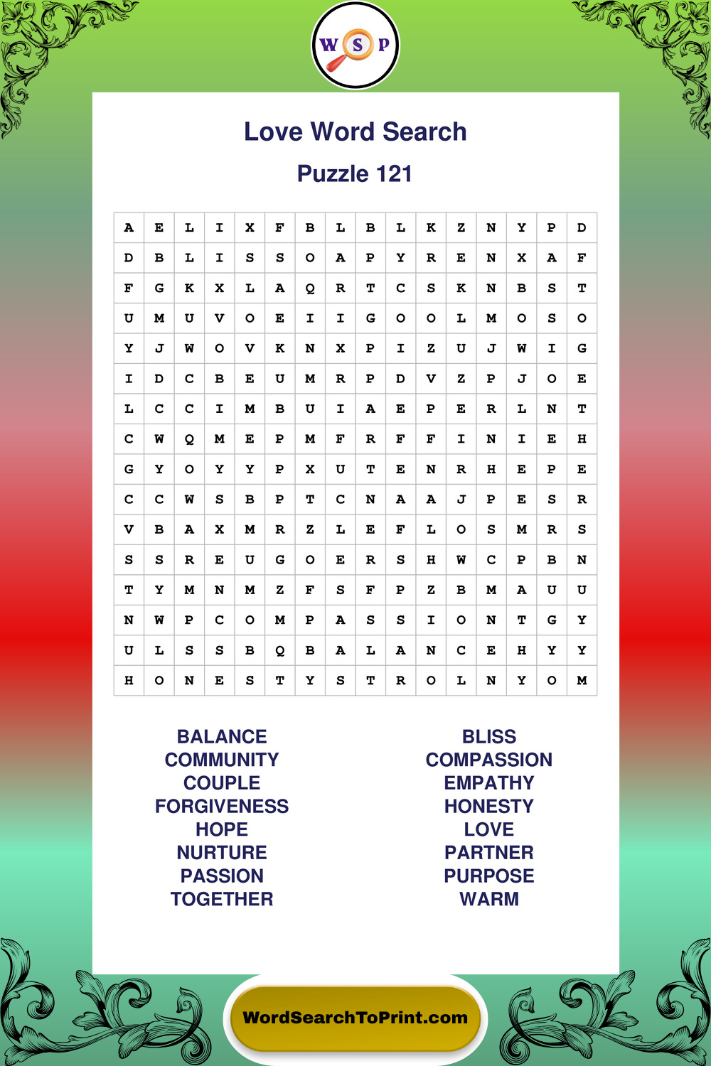 Discover large print Love wordsearches designed to support relaxed thinking and comfortable reading.