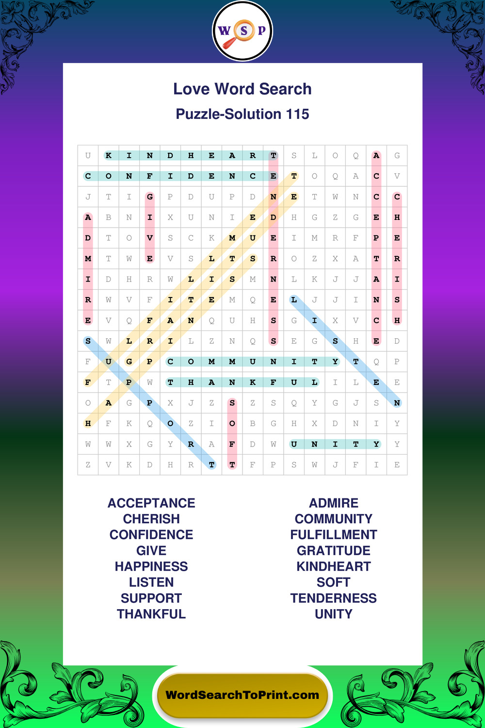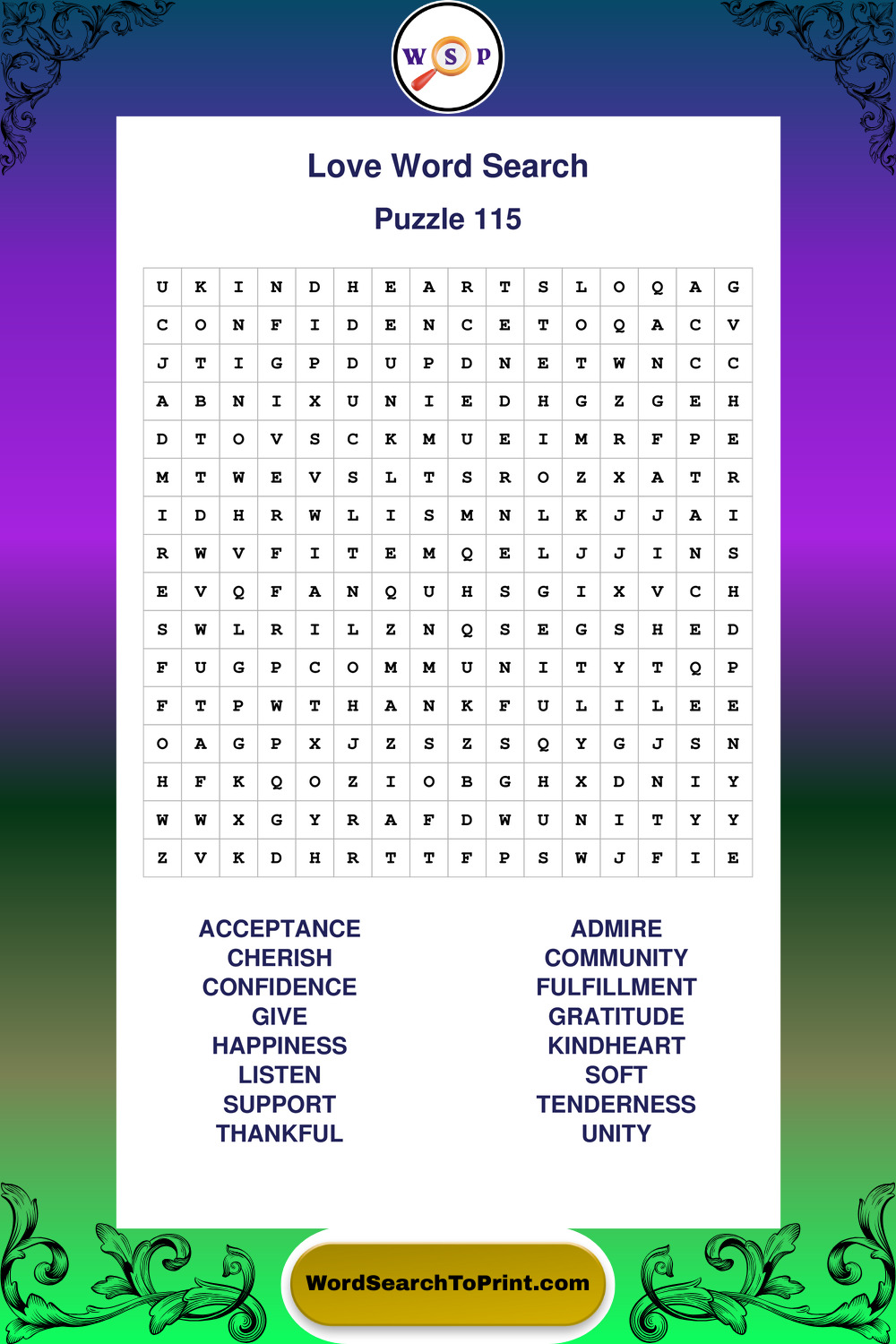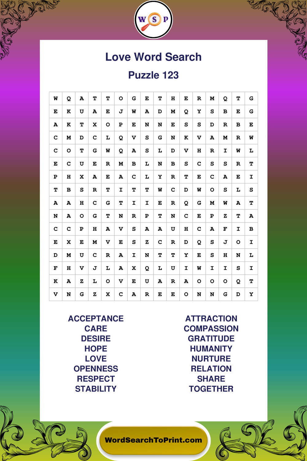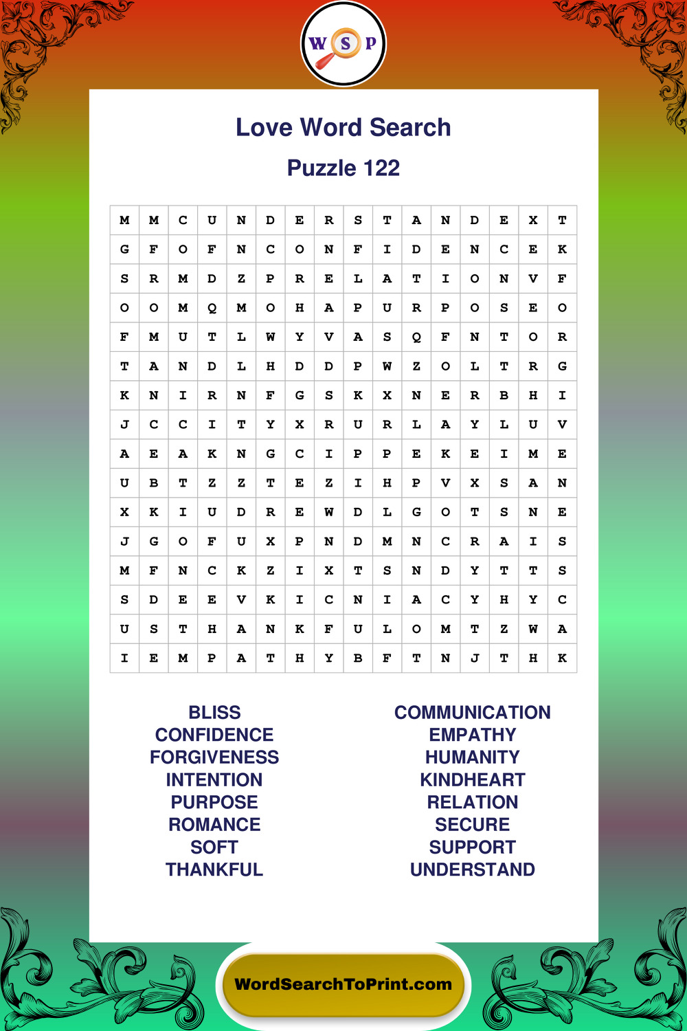 These puzzles focus on family, friendship, affection, kindness, and meaningful personal connections. They provide a relaxing and effective way to connect with this subject while supporting memory and language skills. You may also enjoy our Friendship word search puzzles and Family word search puzzles.