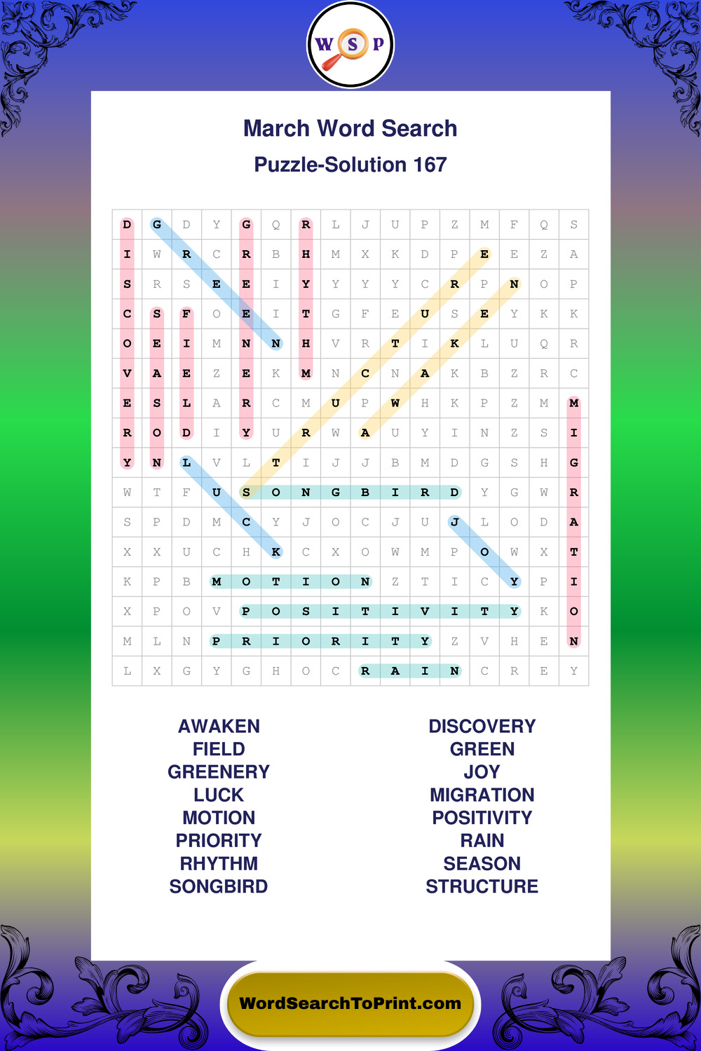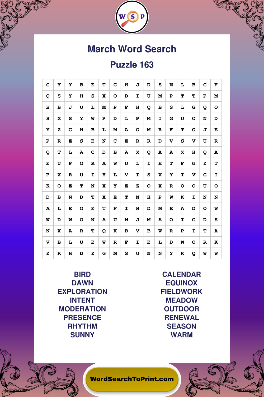 A relaxing collection of large print March wordsearches designed for comfortable solving and steady focus.