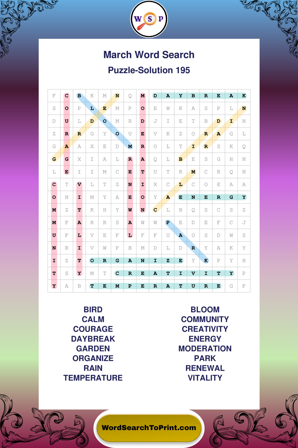 March Wordsearches