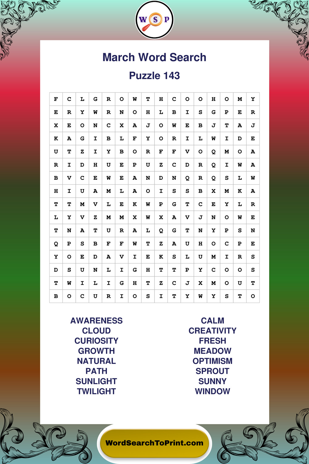 March Wordsearches