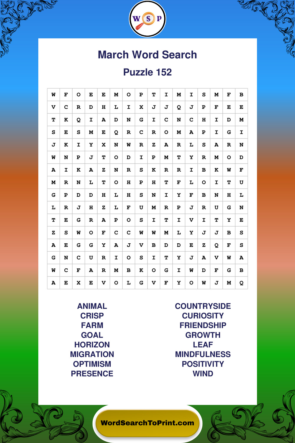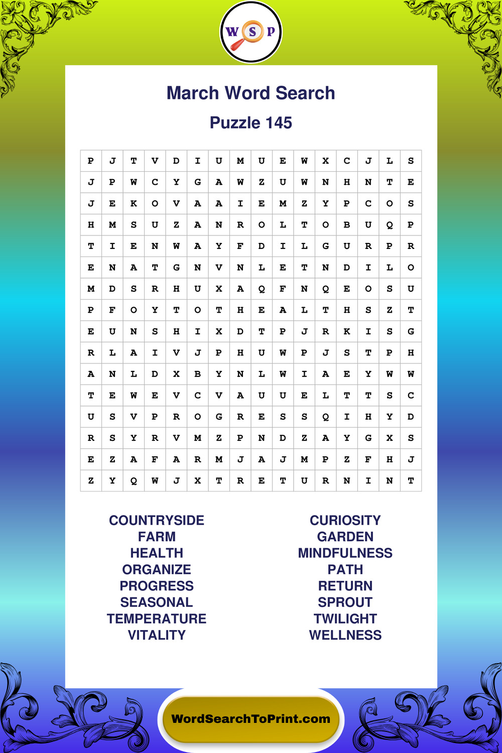 A relaxing collection of large print March wordsearches designed for comfortable solving and steady focus.