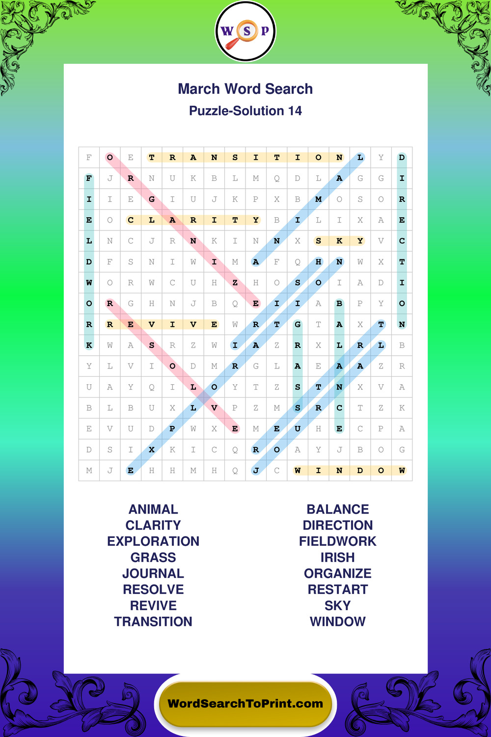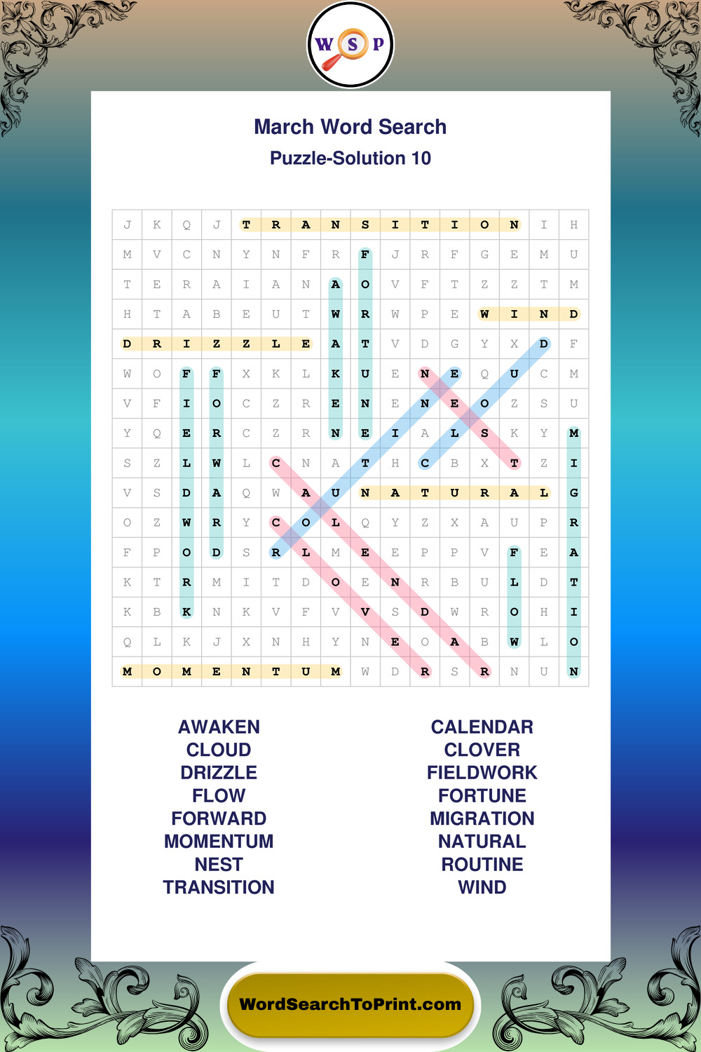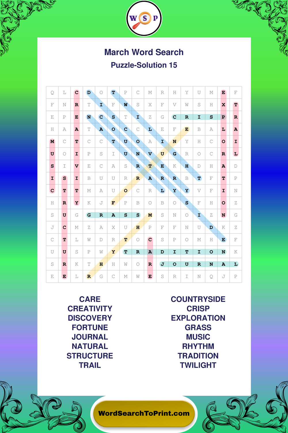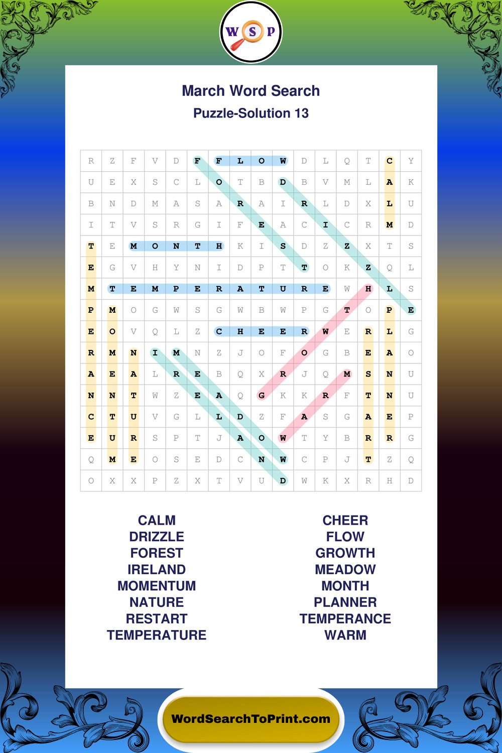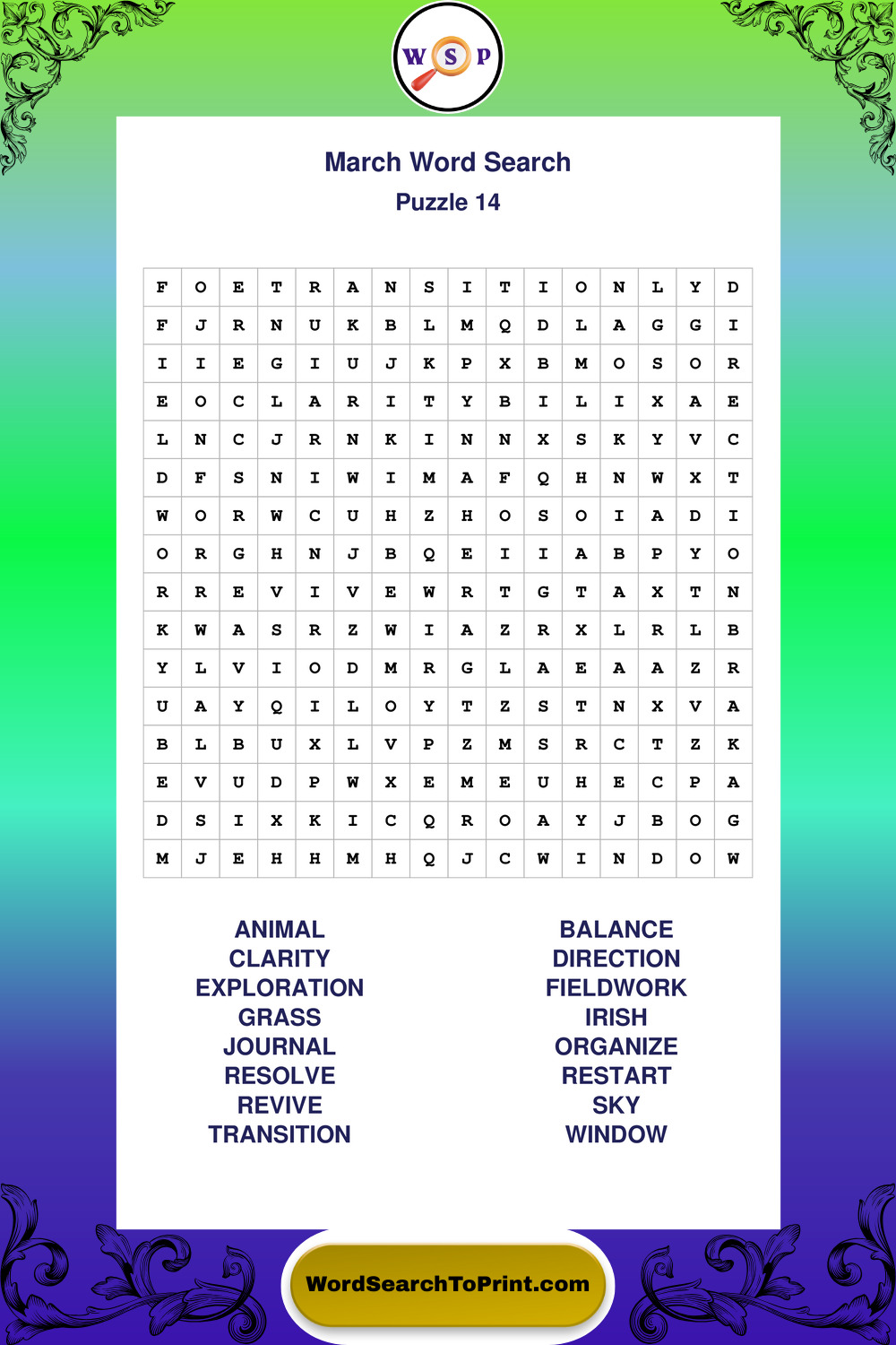 A relaxing collection of large print March wordsearches designed for comfortable solving and steady focus.