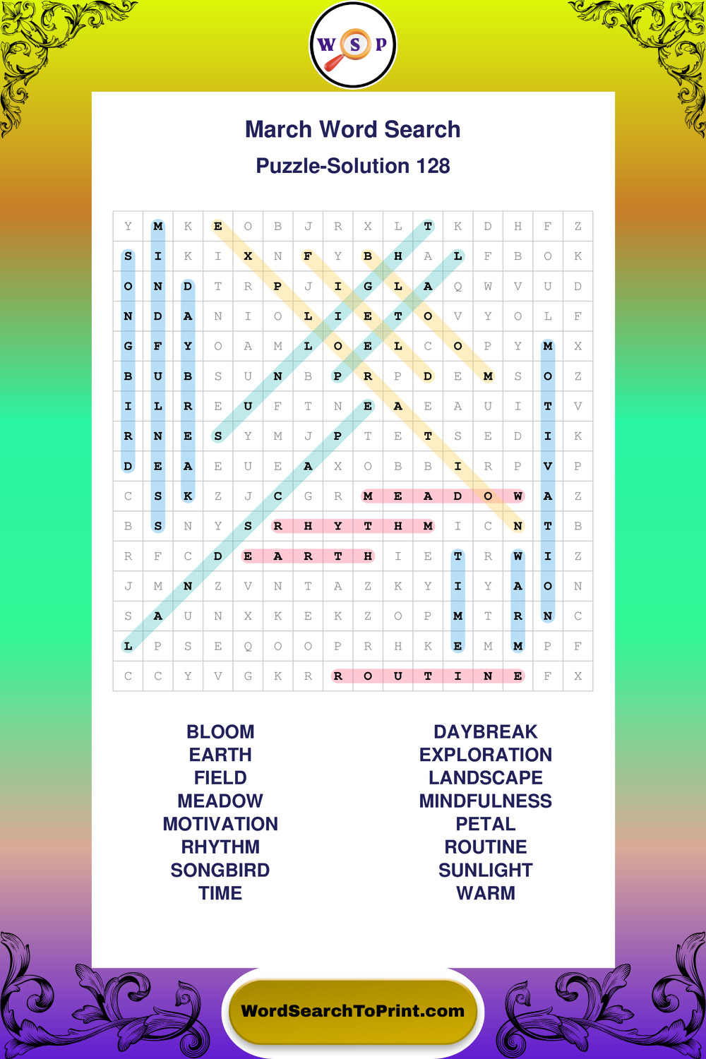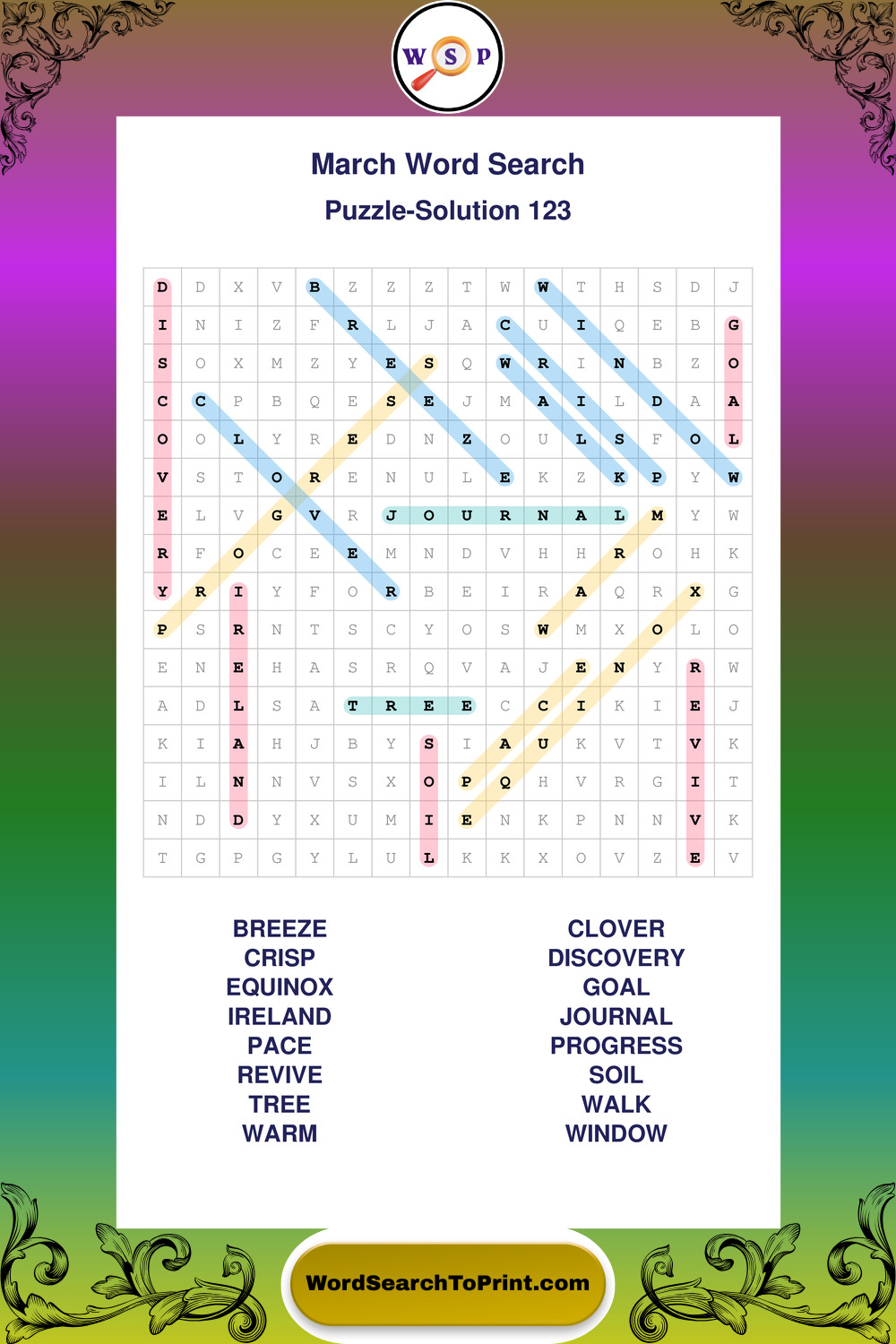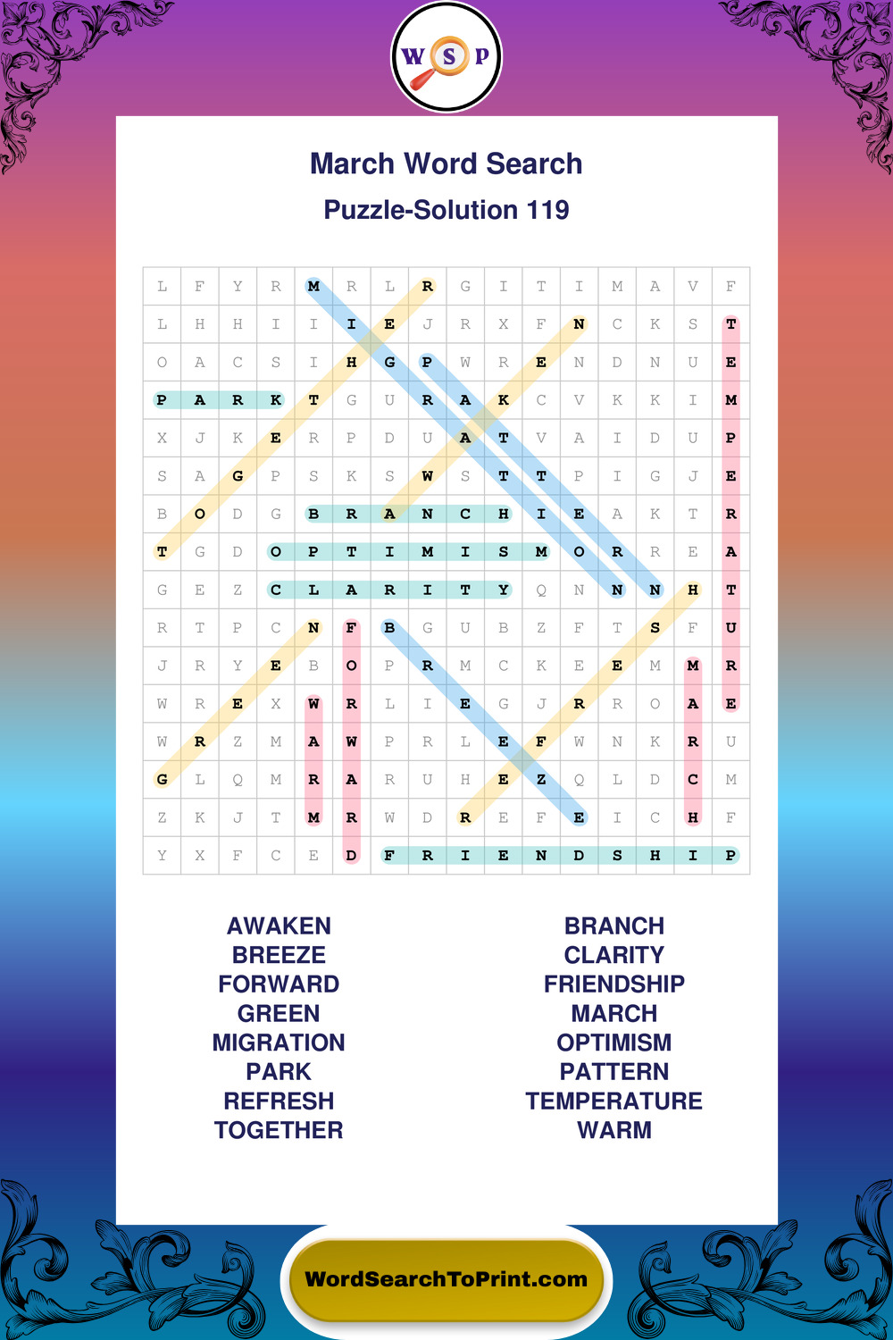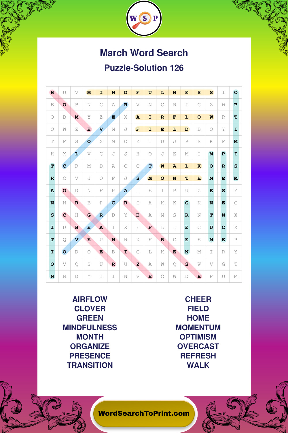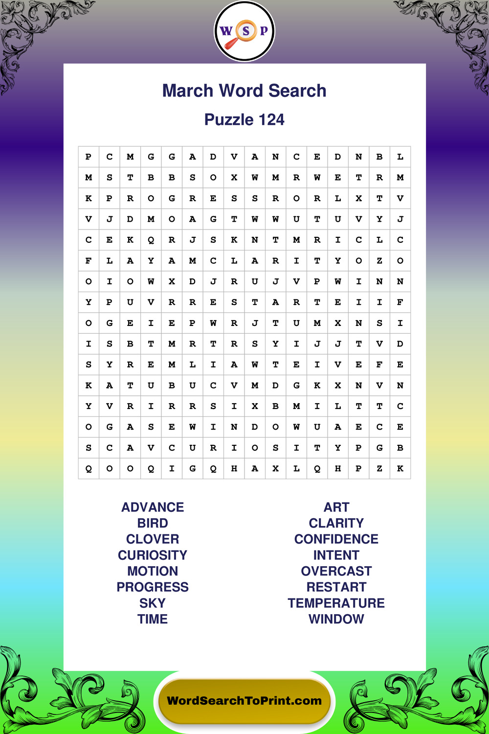 A relaxing collection of large print March wordsearches designed for comfortable solving and steady focus.