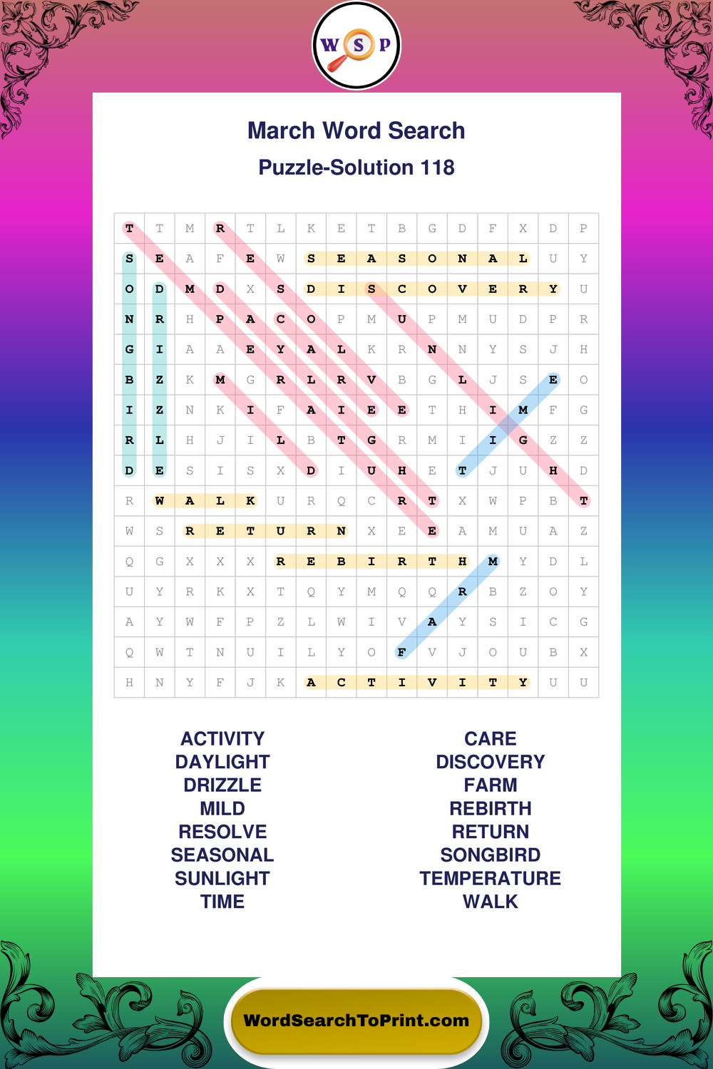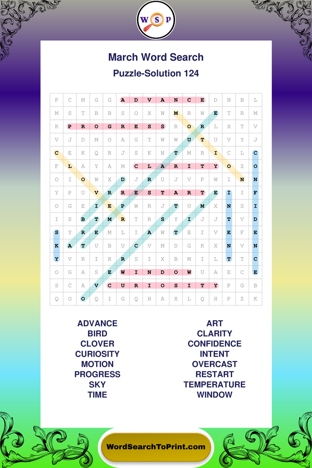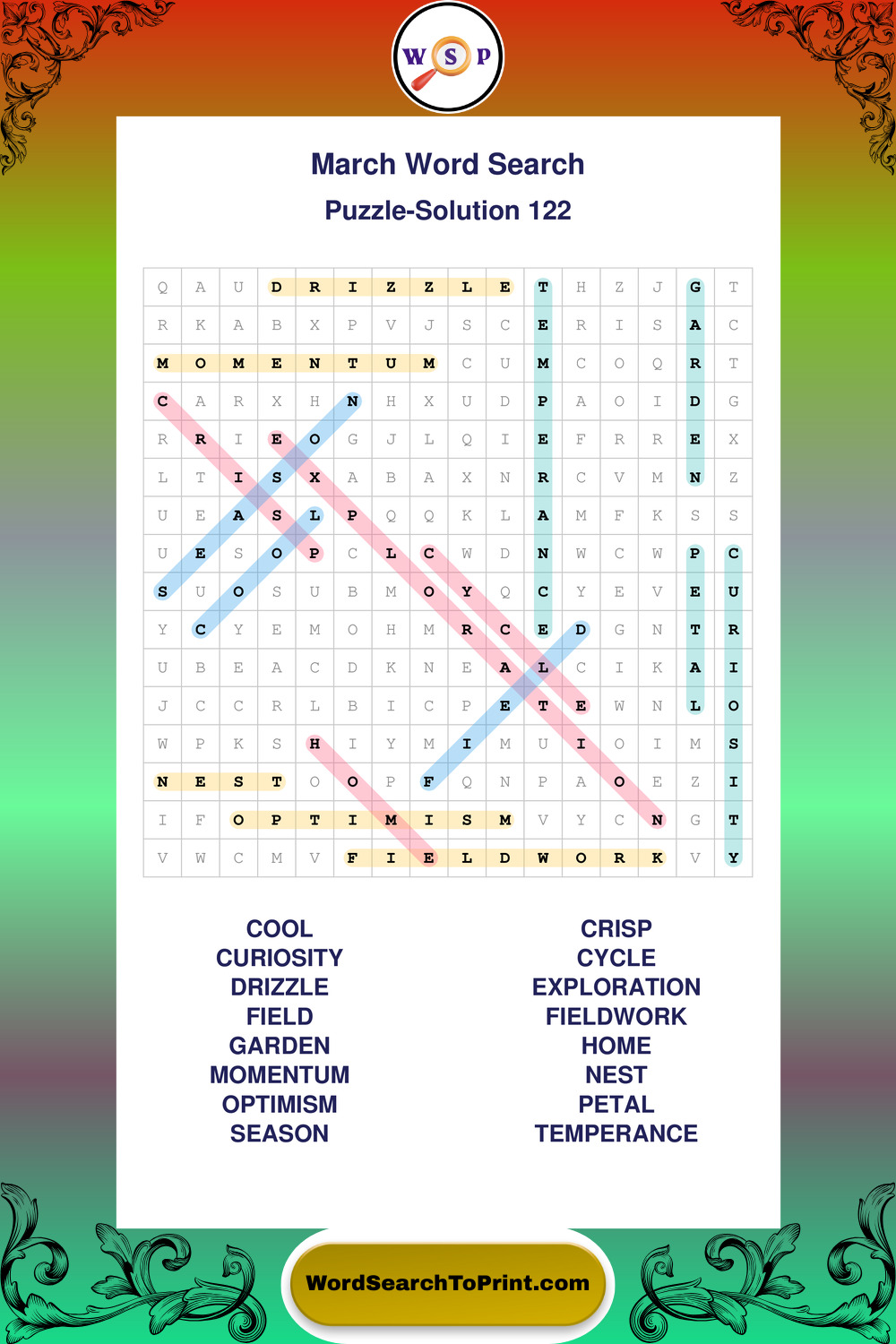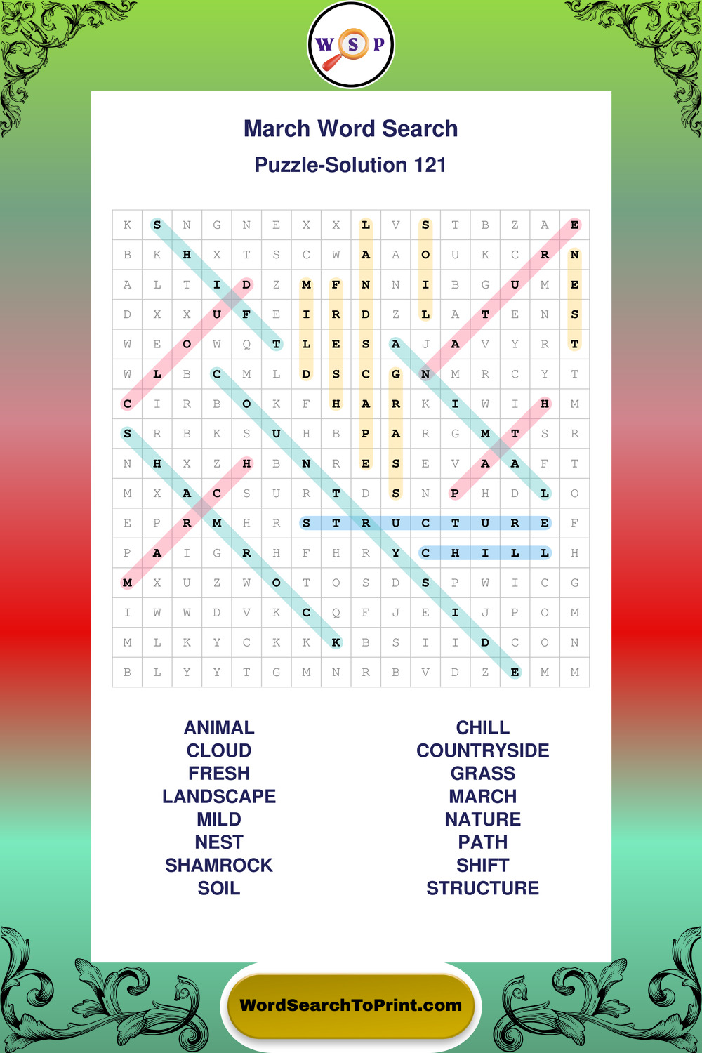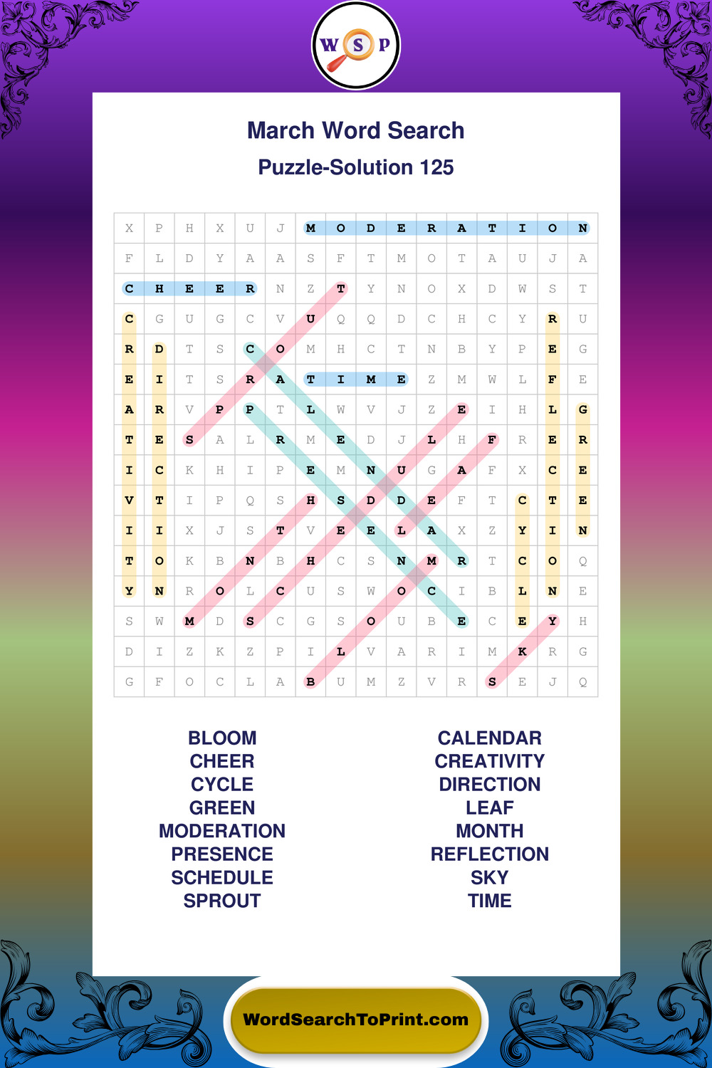 A relaxing collection of large print March wordsearches designed for comfortable solving and steady focus.