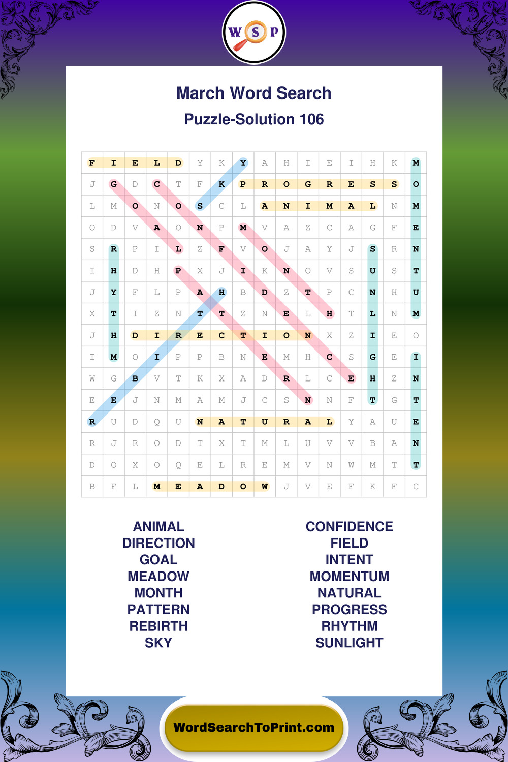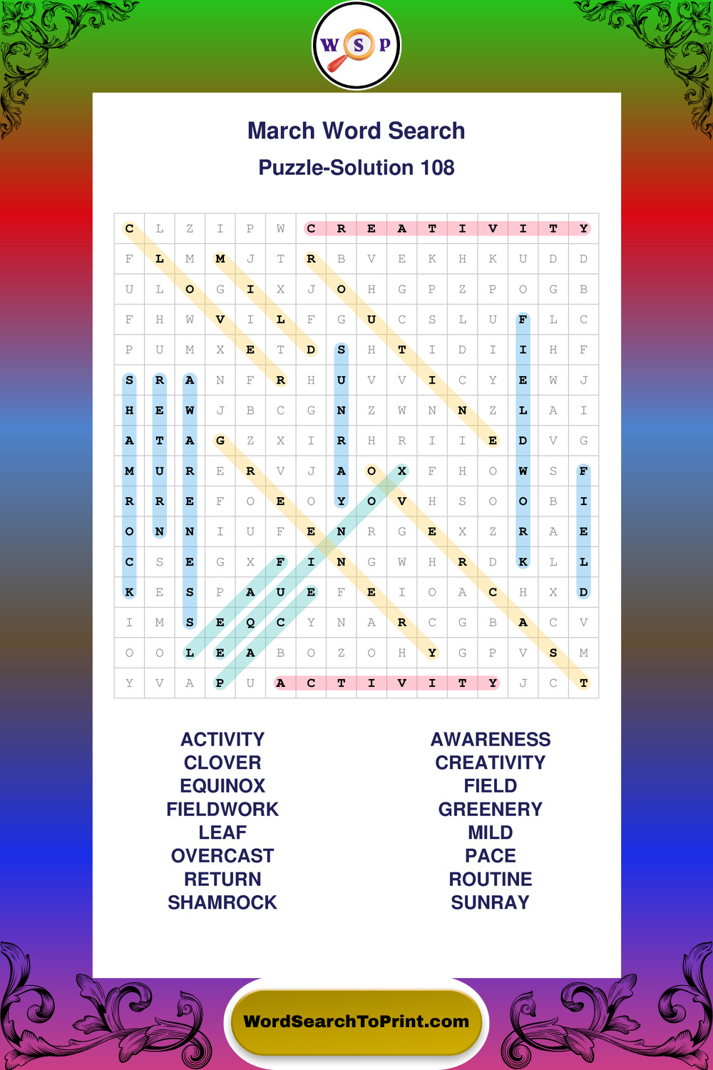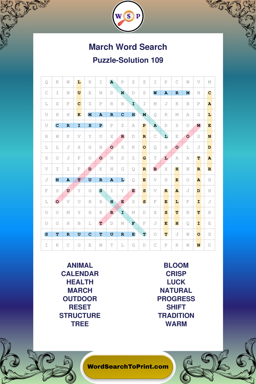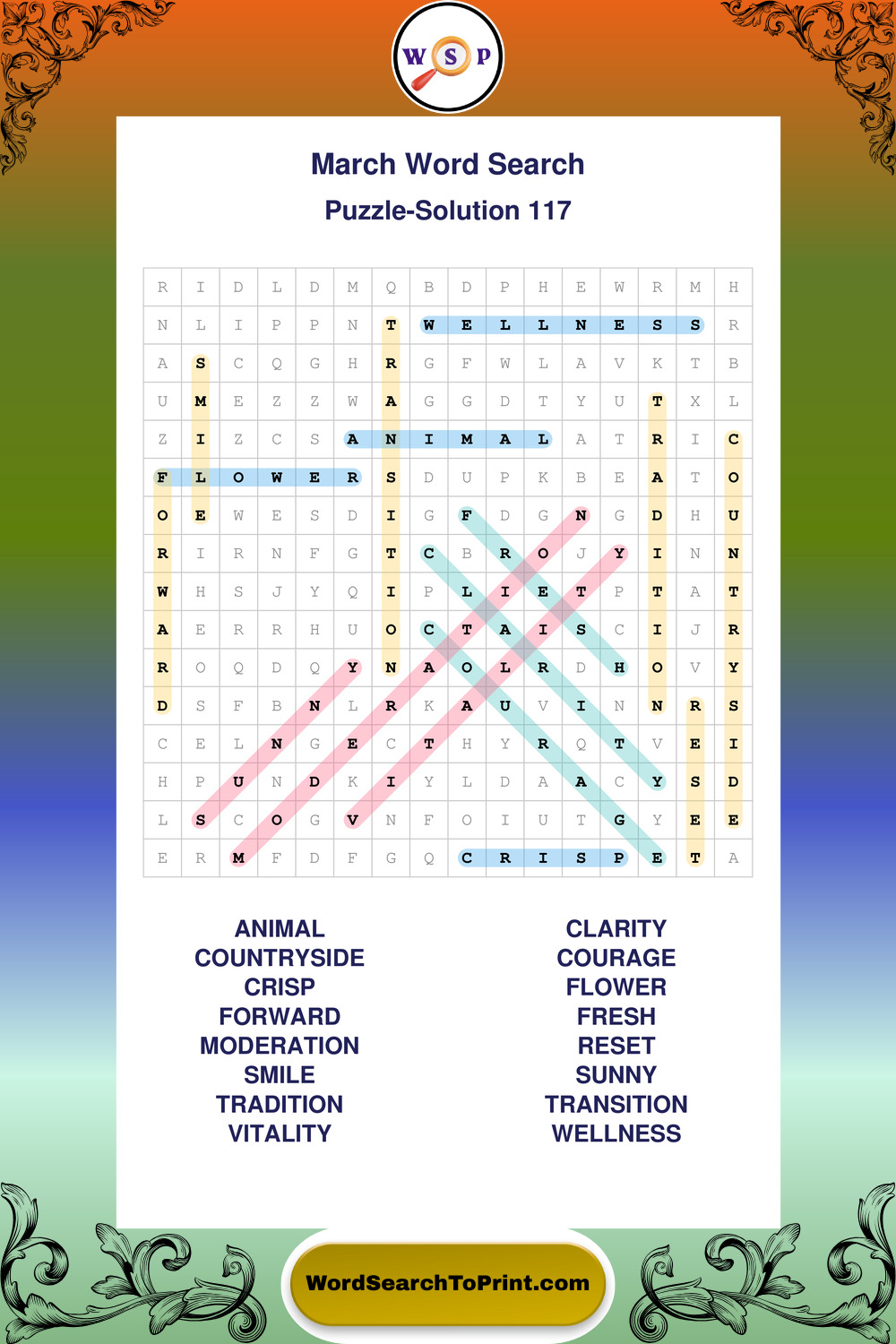 A relaxing collection of large print March wordsearches designed for comfortable solving and steady focus.