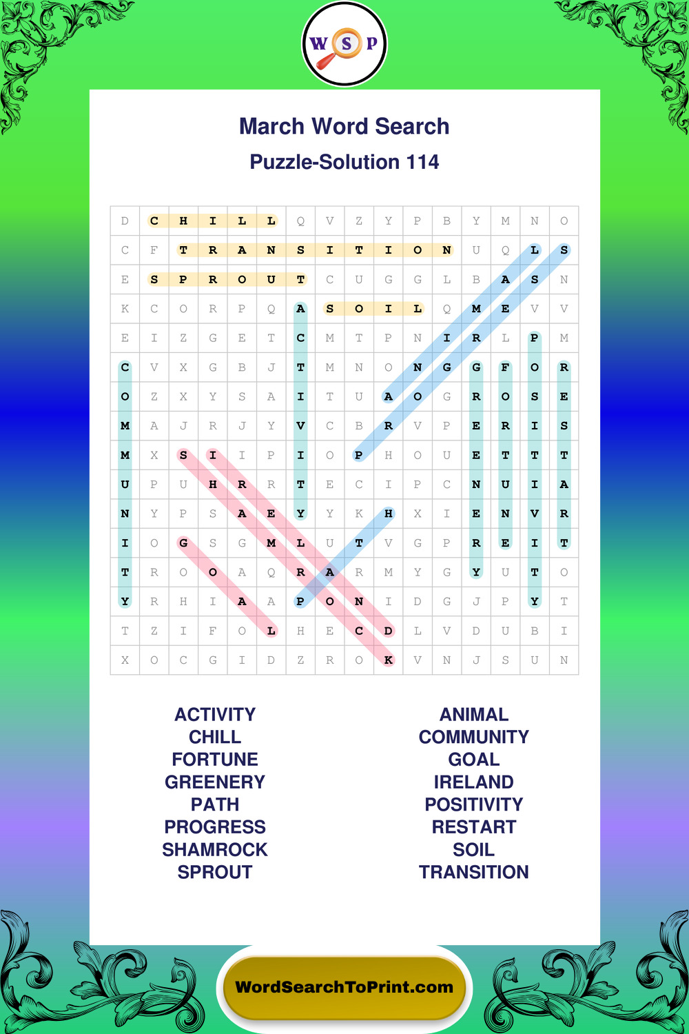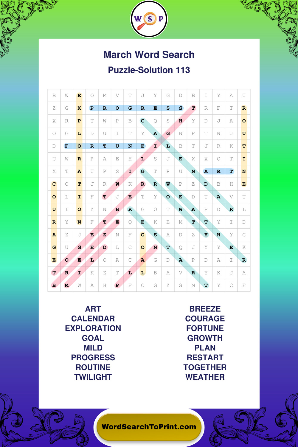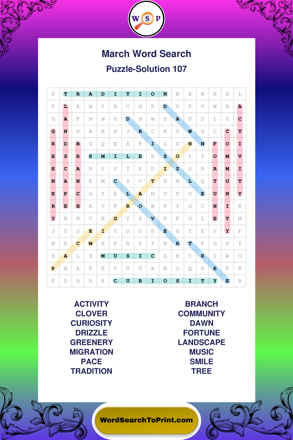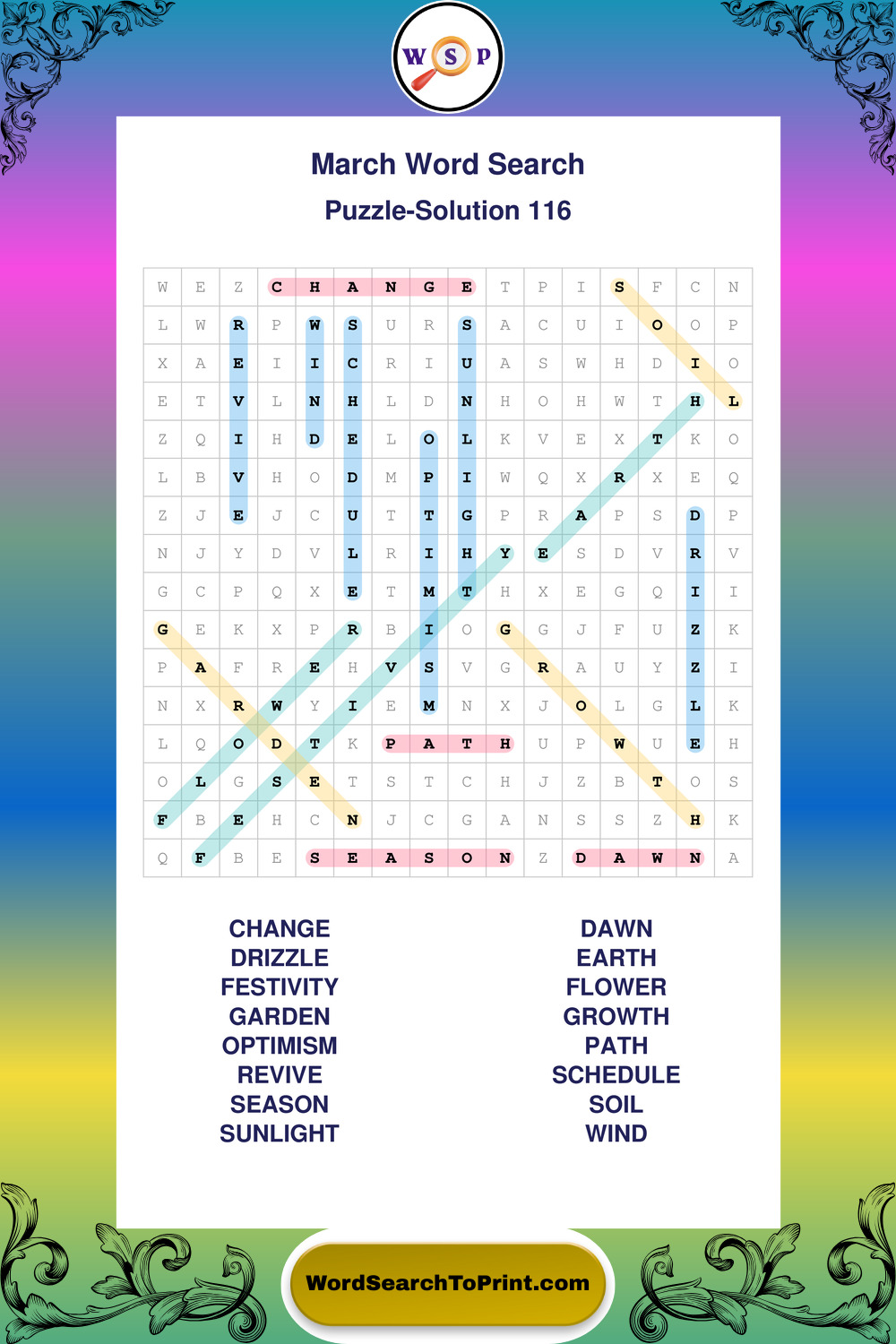 A relaxing collection of large print March wordsearches designed for comfortable solving and steady focus.