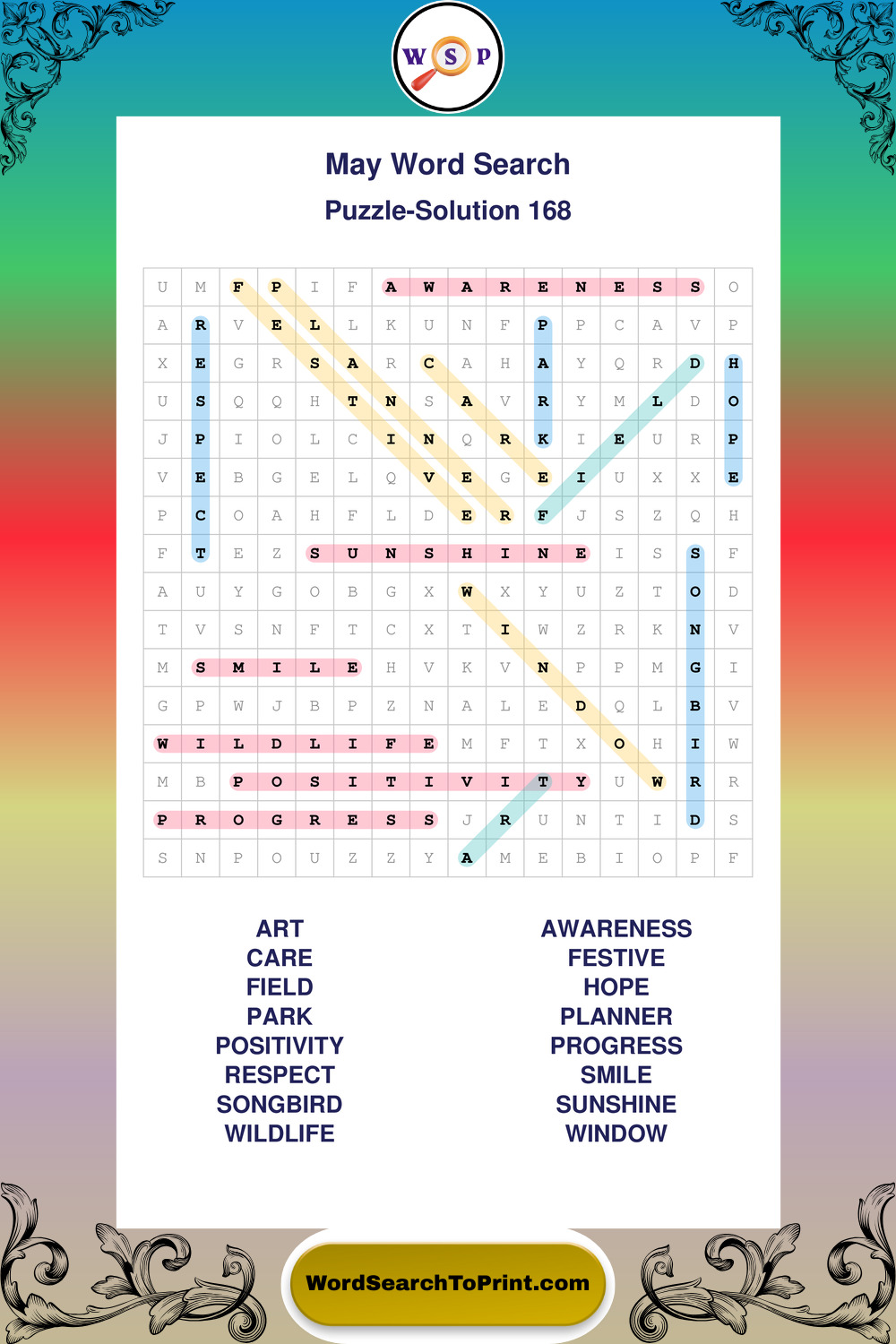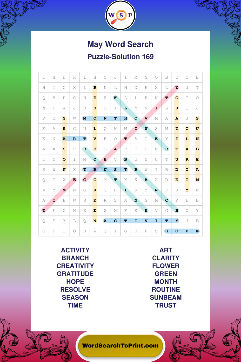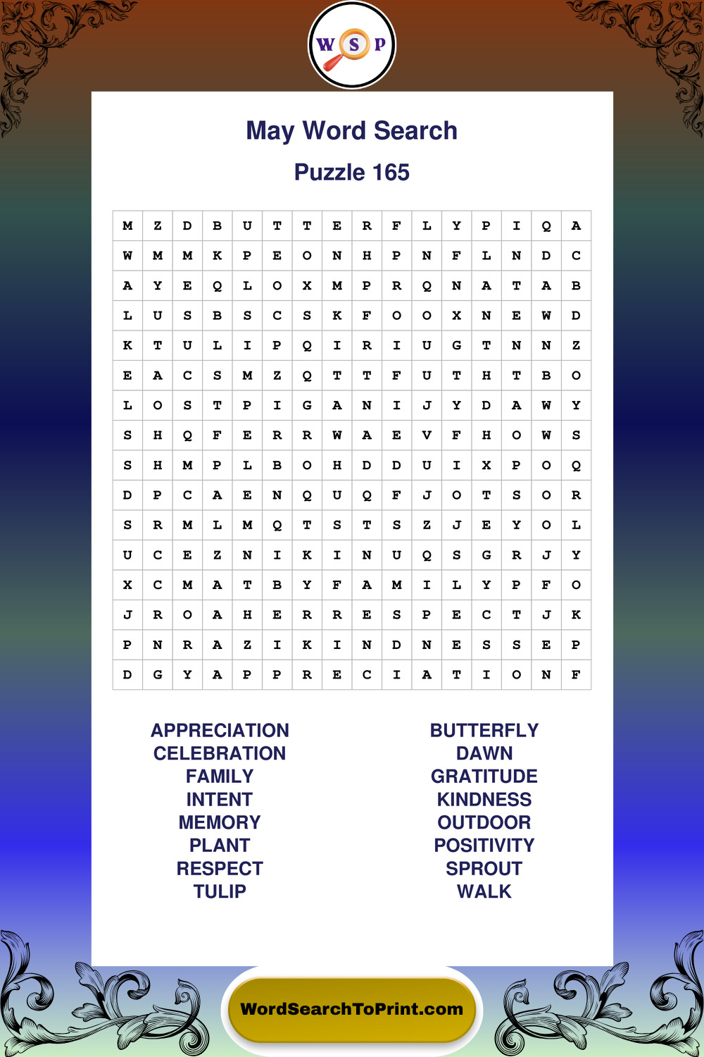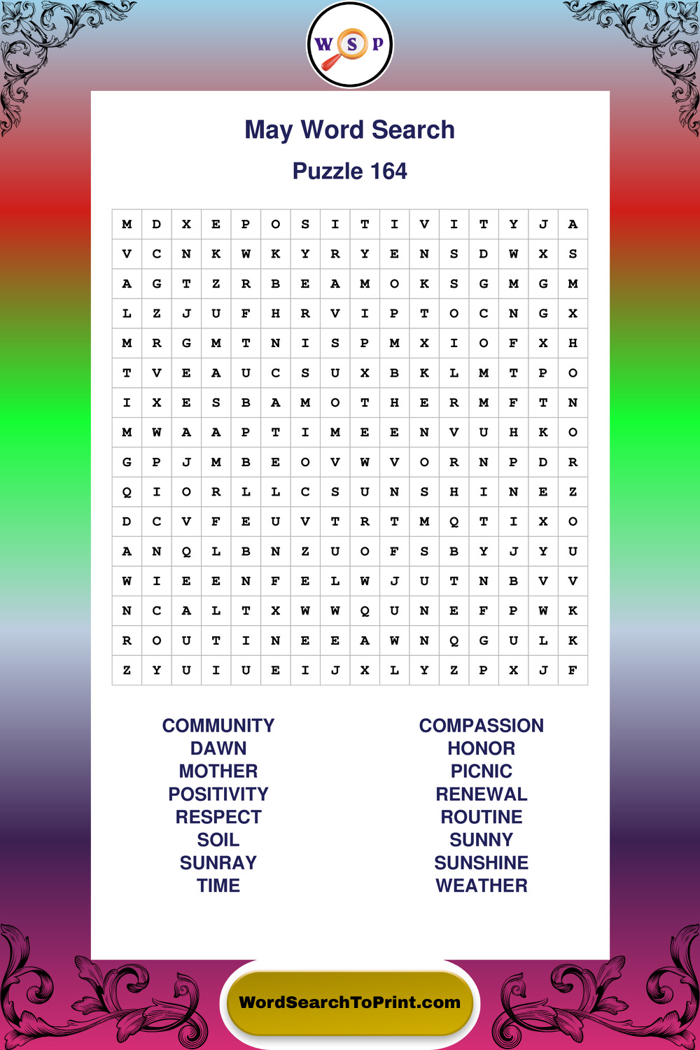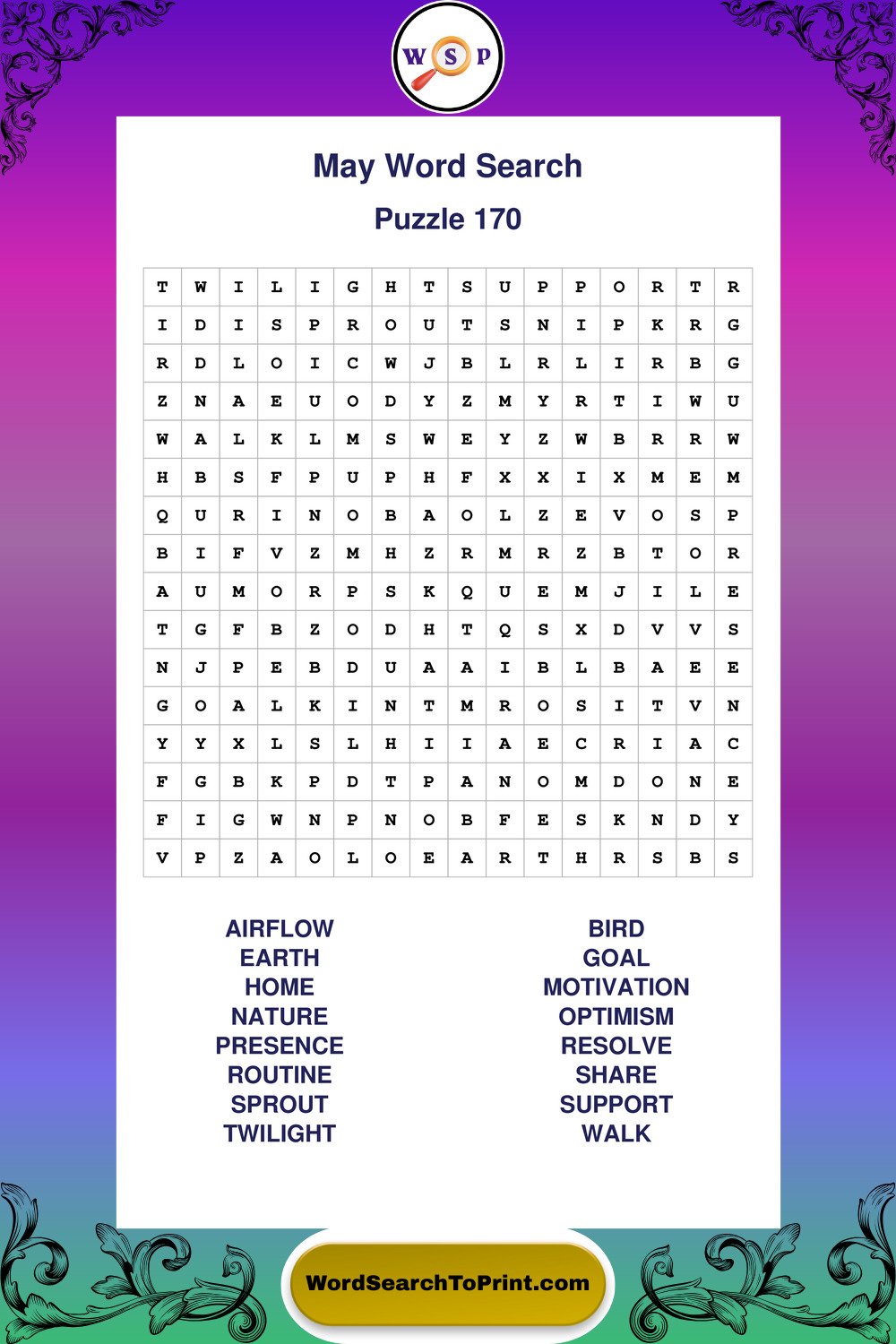 Discover large print May wordsearches designed to support relaxed thinking and comfortable reading.