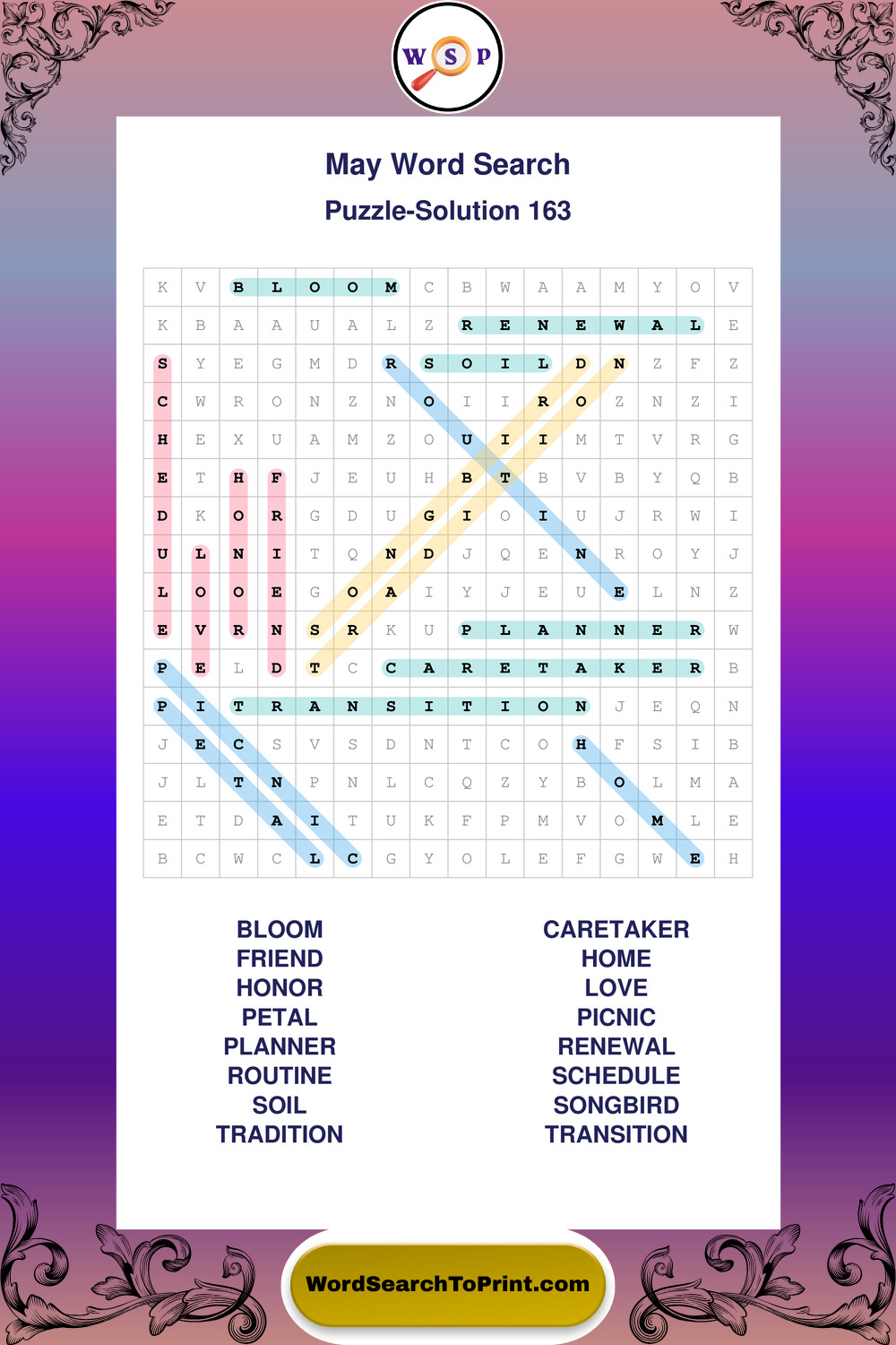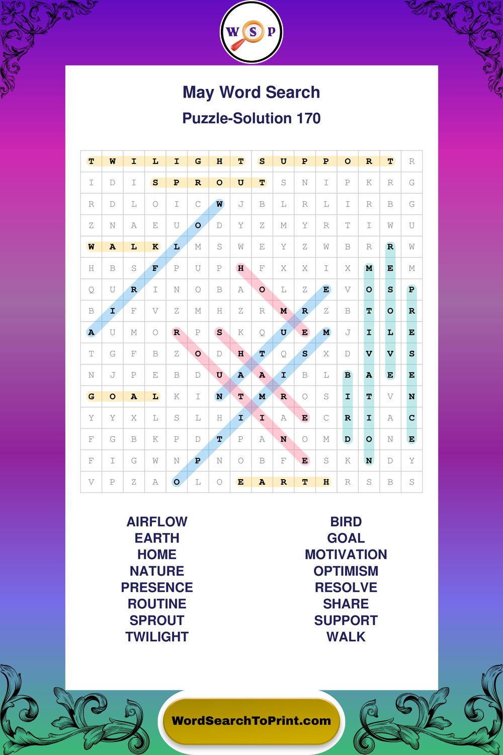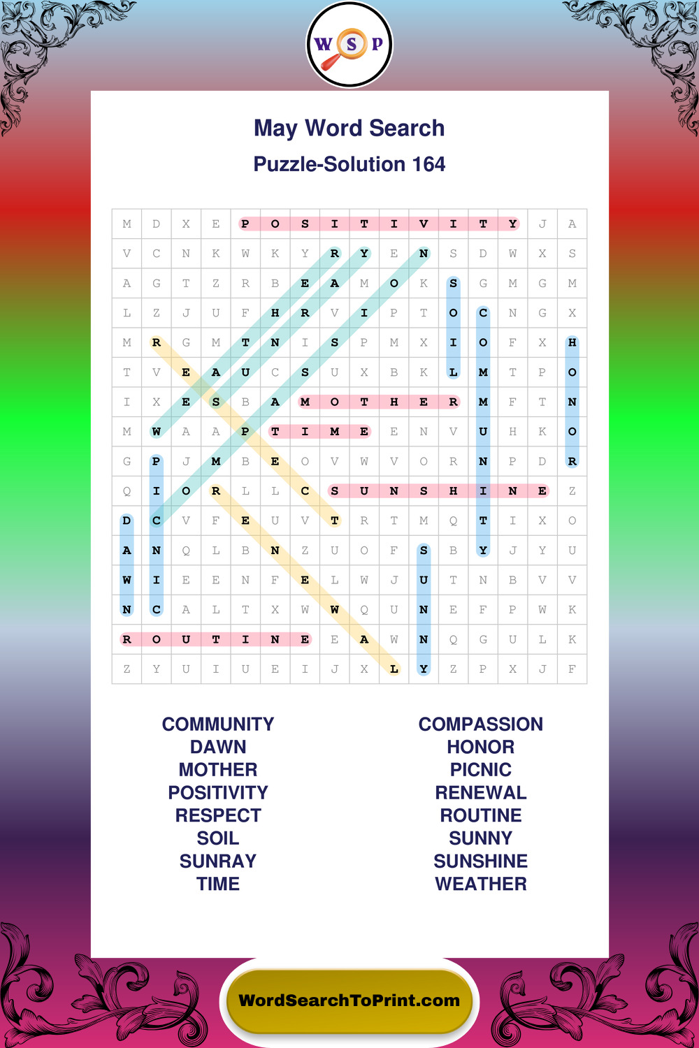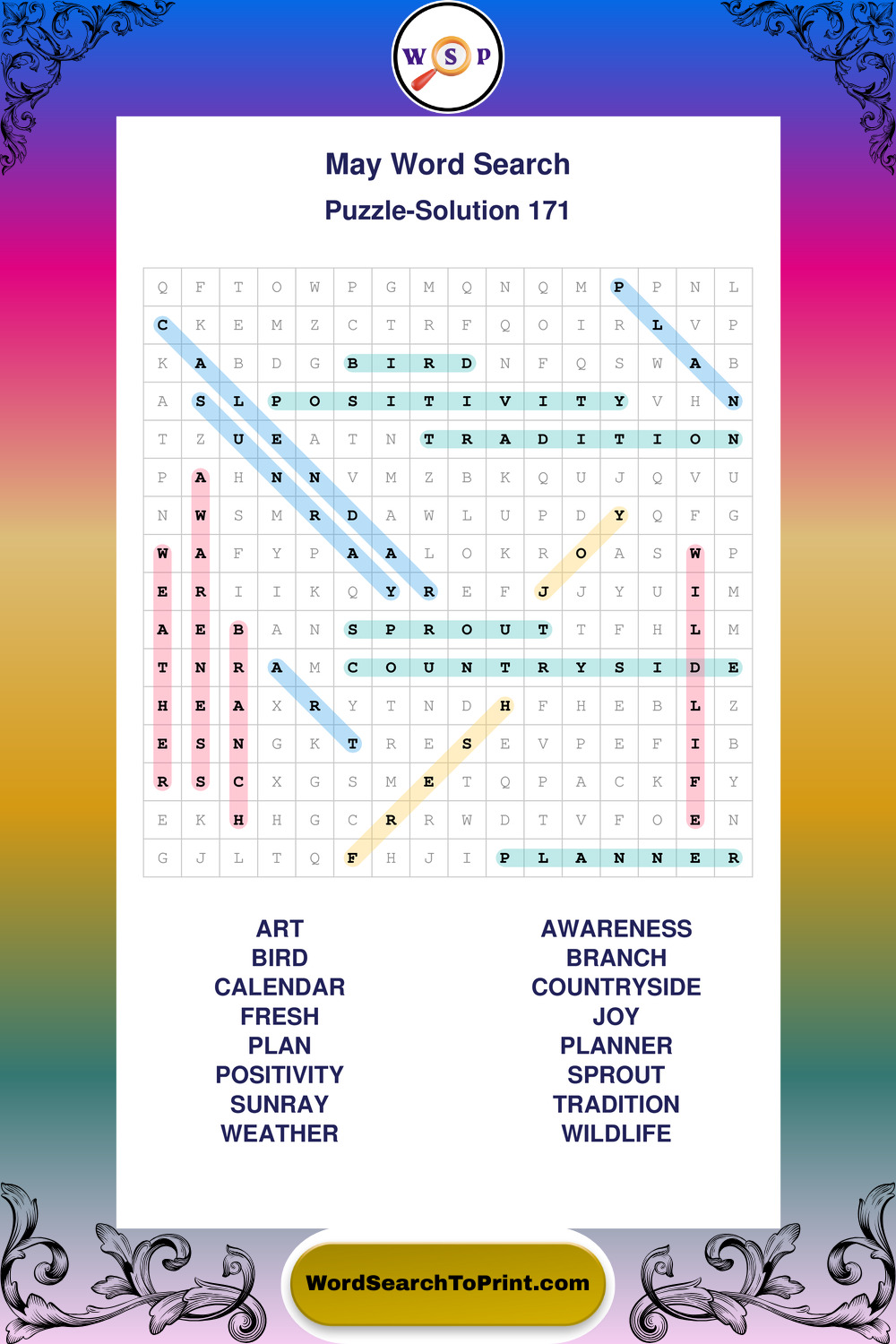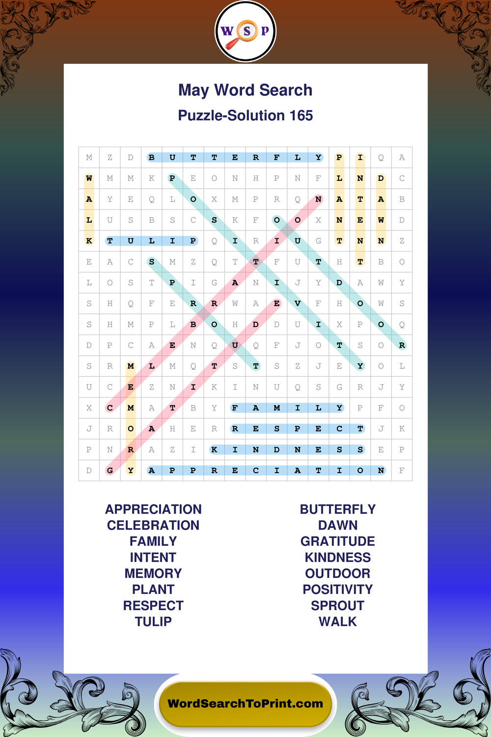 Discover large print May wordsearches designed to support relaxed thinking and comfortable reading.
