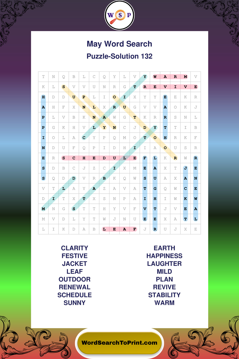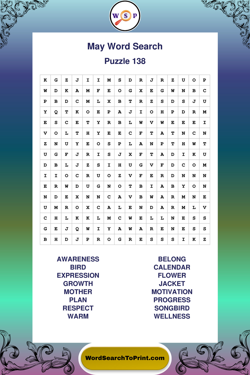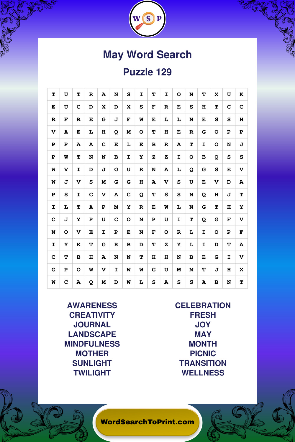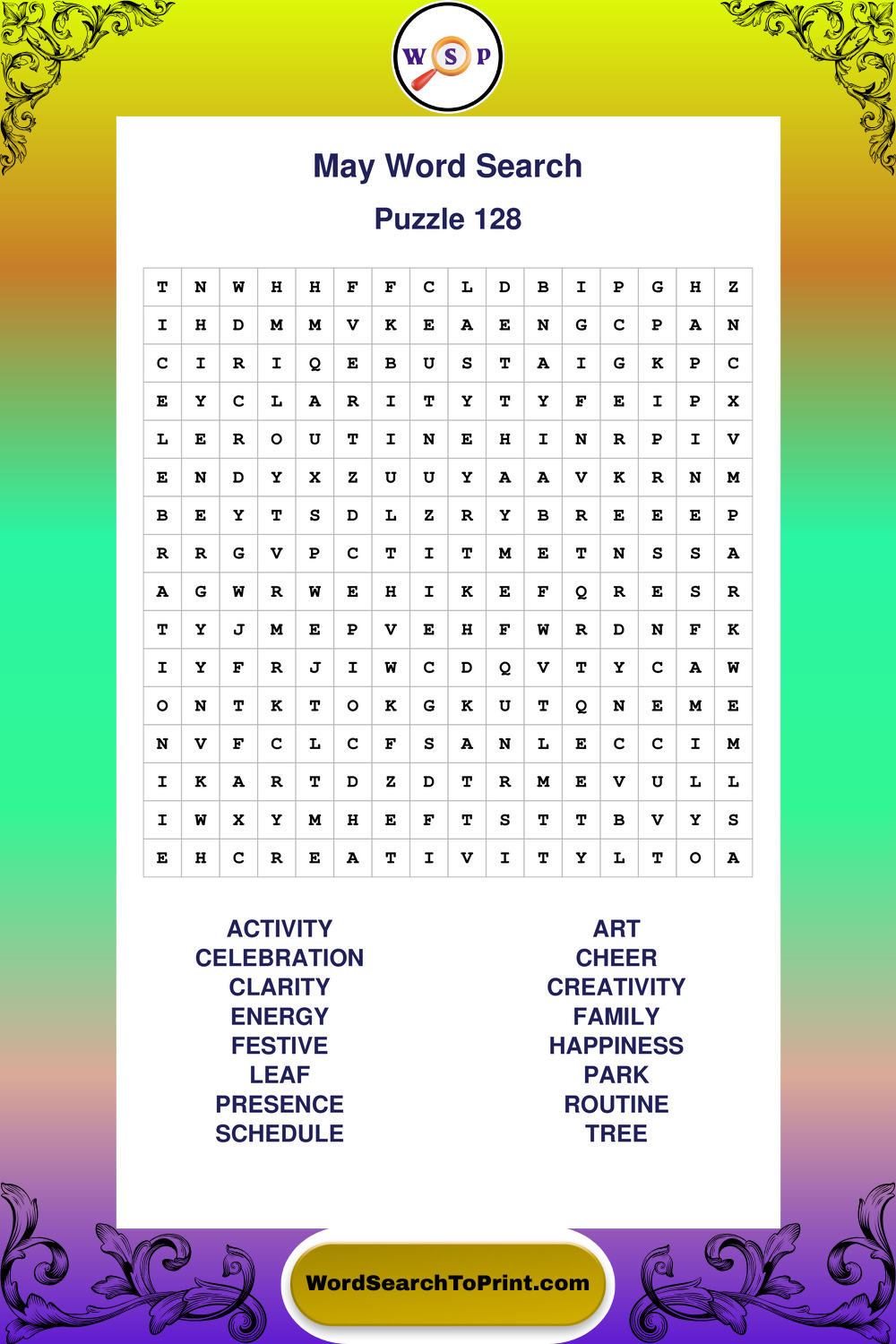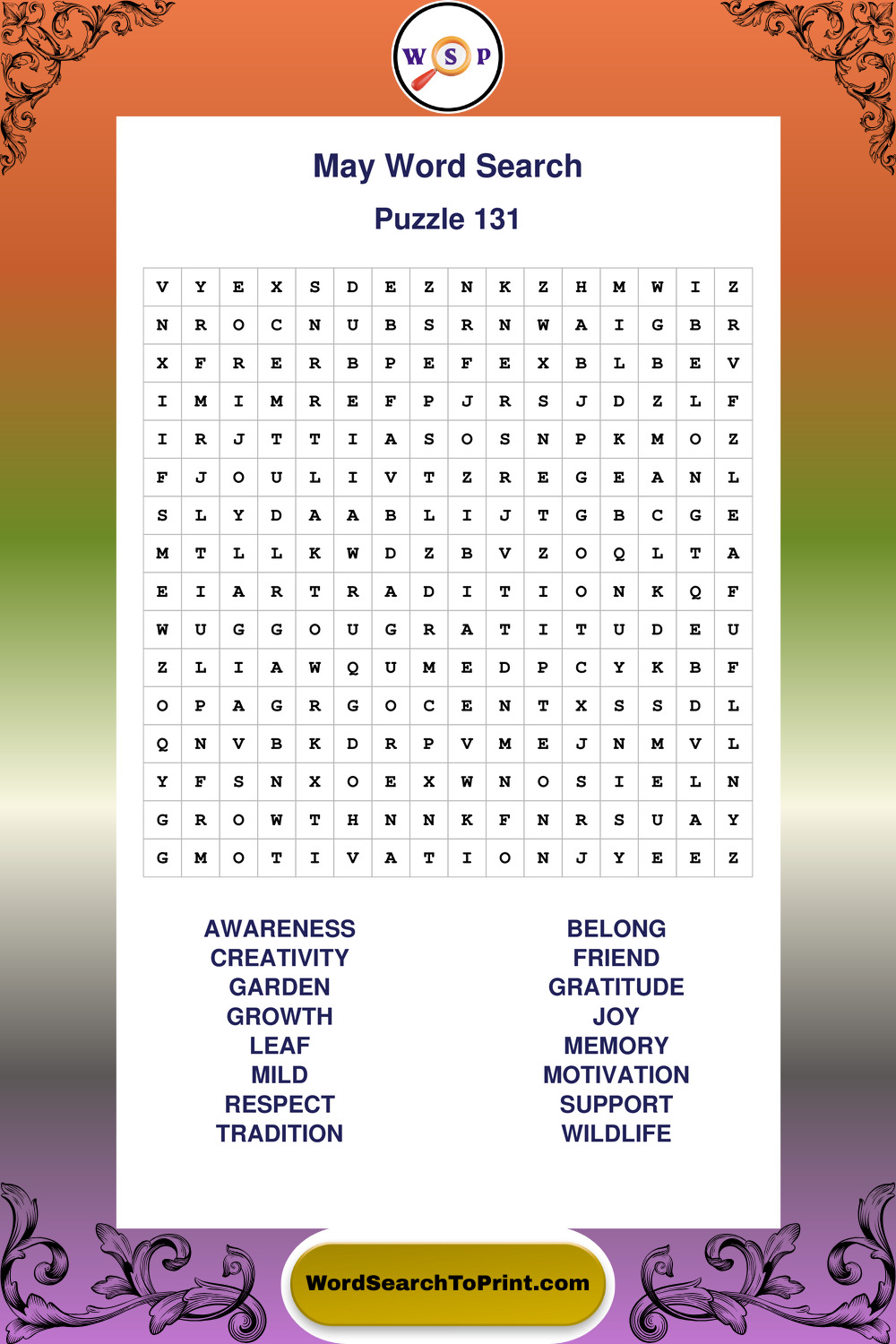 Discover large print May wordsearches designed to support relaxed thinking and comfortable reading.