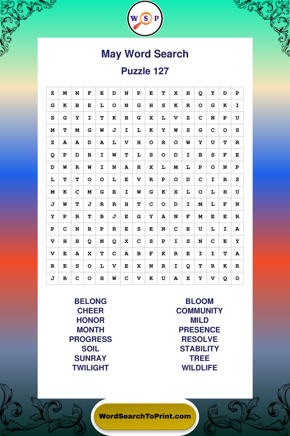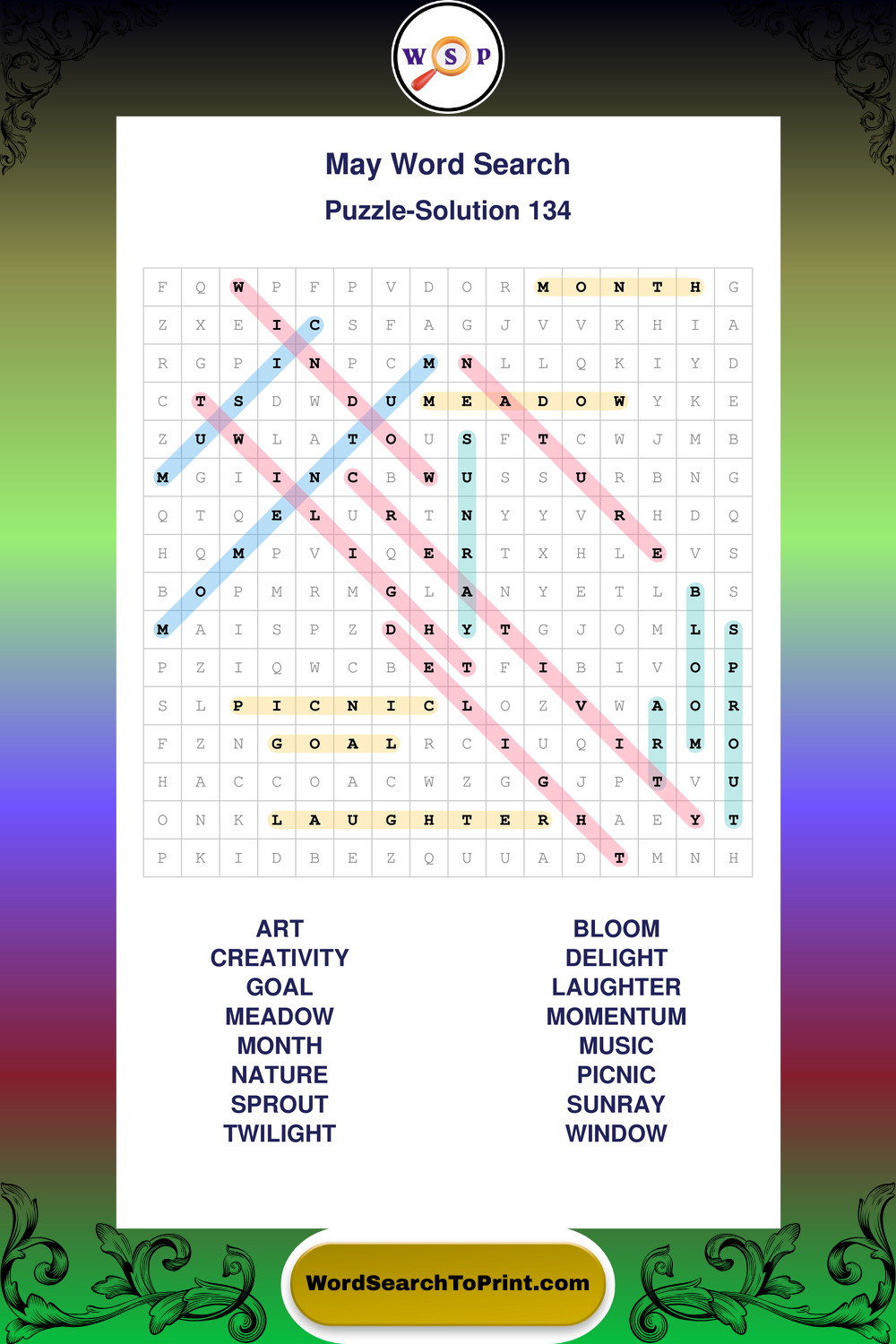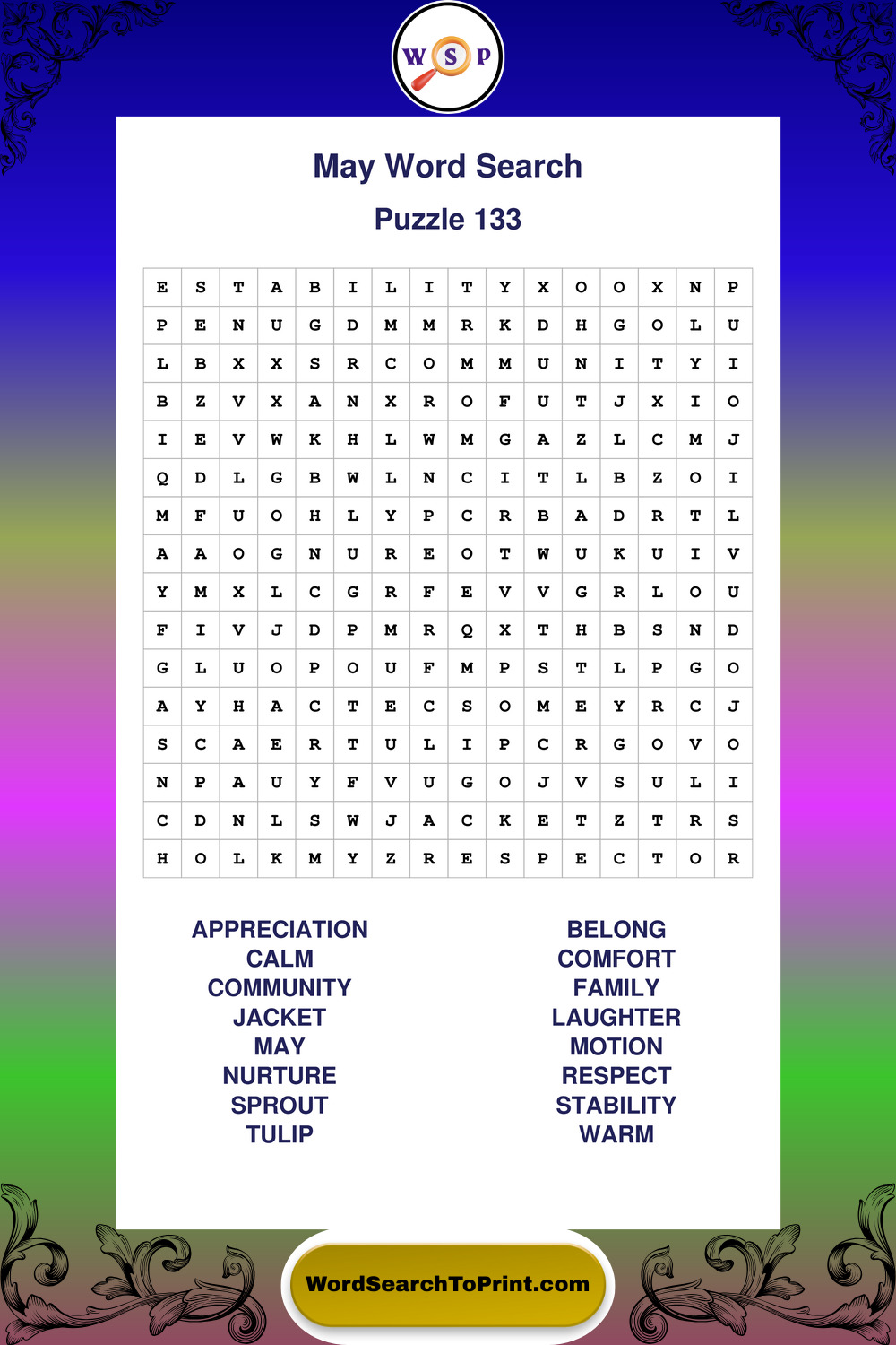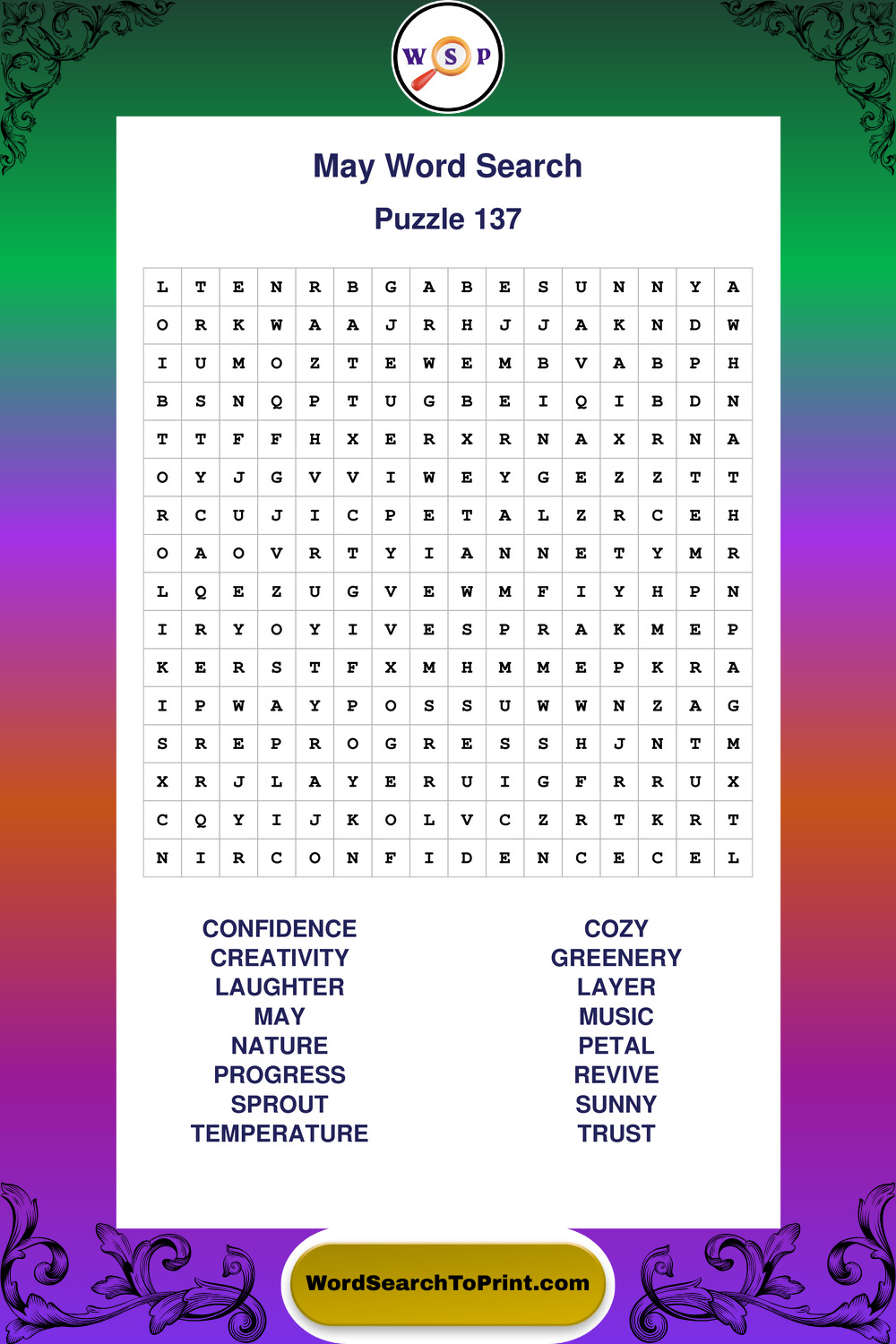 Discover large print May wordsearches designed to support relaxed thinking and comfortable reading.