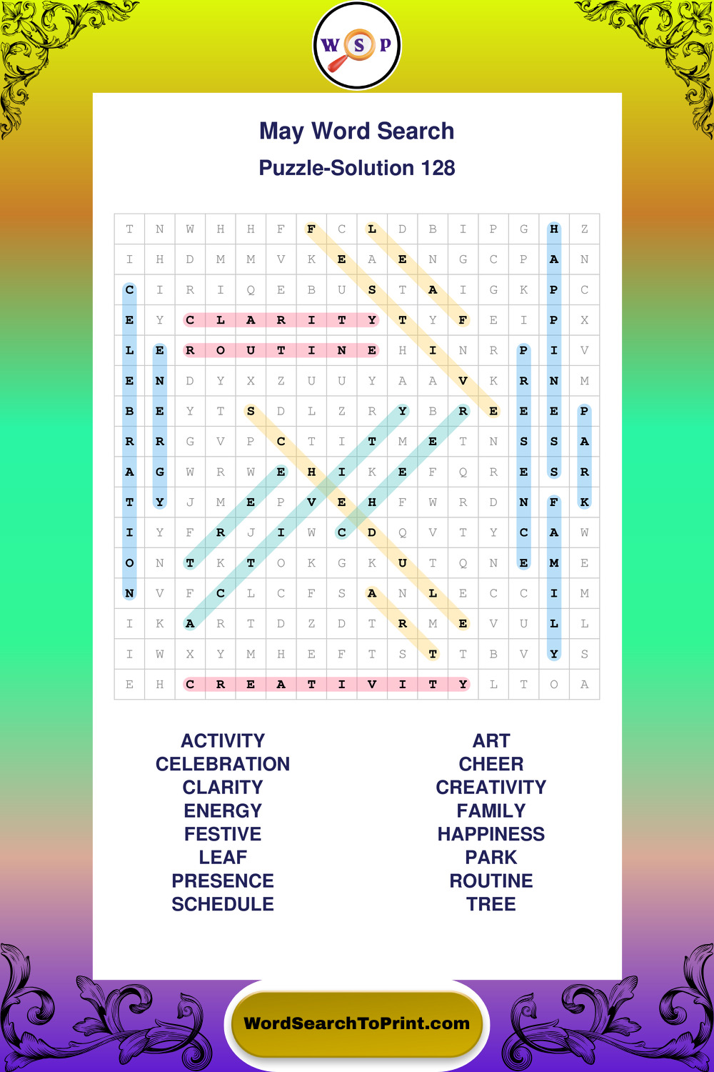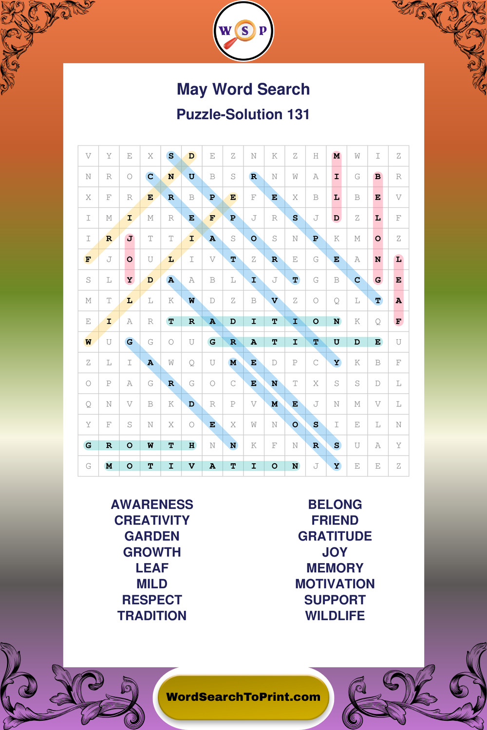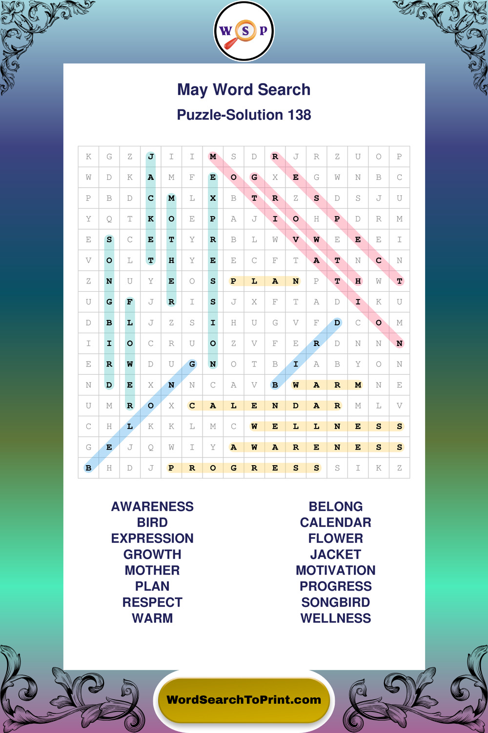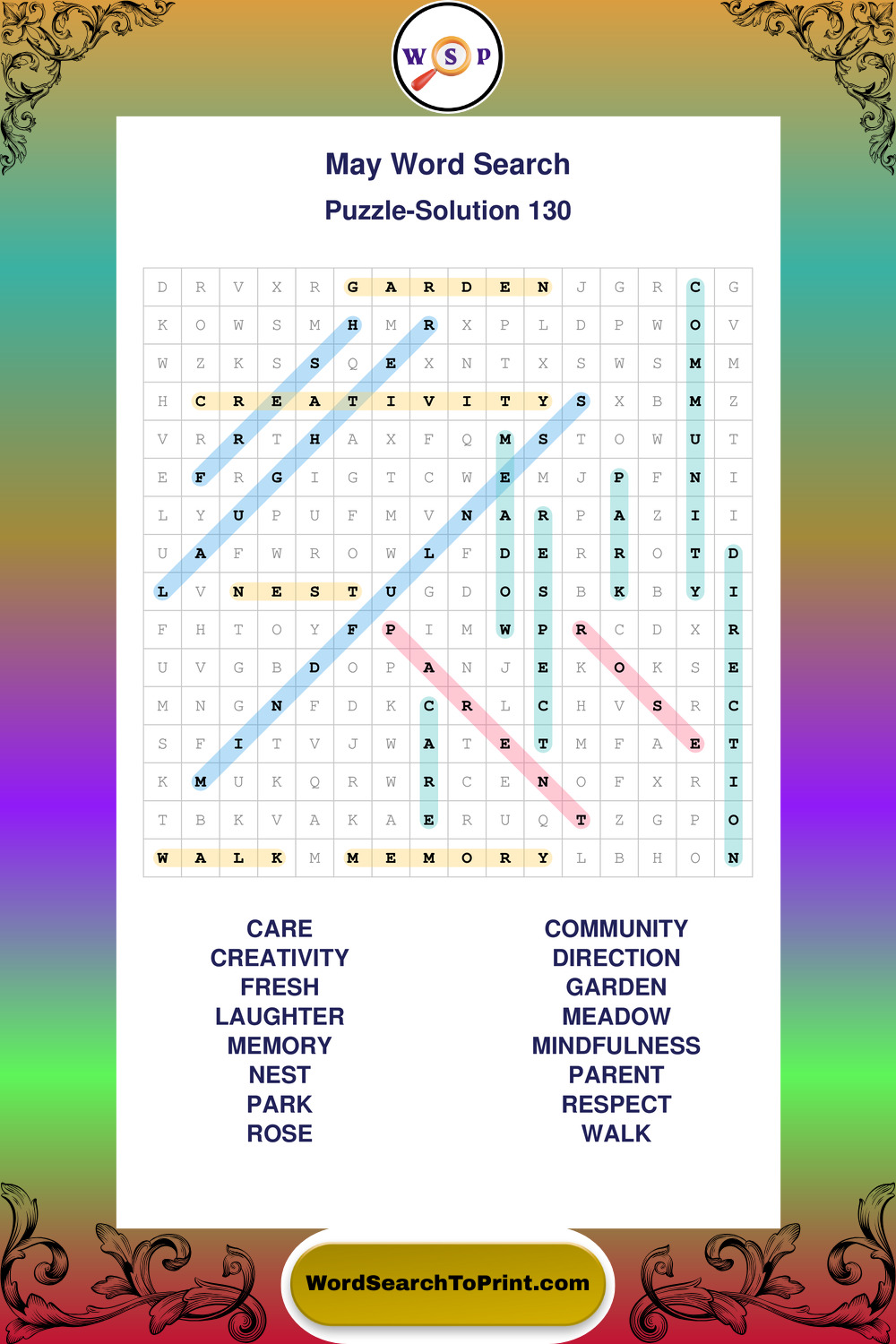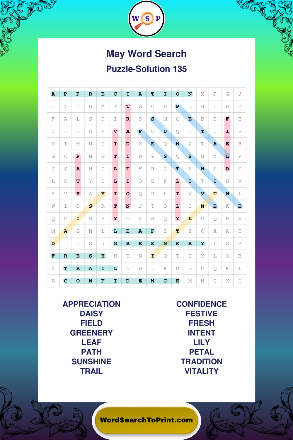 Discover large print May wordsearches designed to support relaxed thinking and comfortable reading.