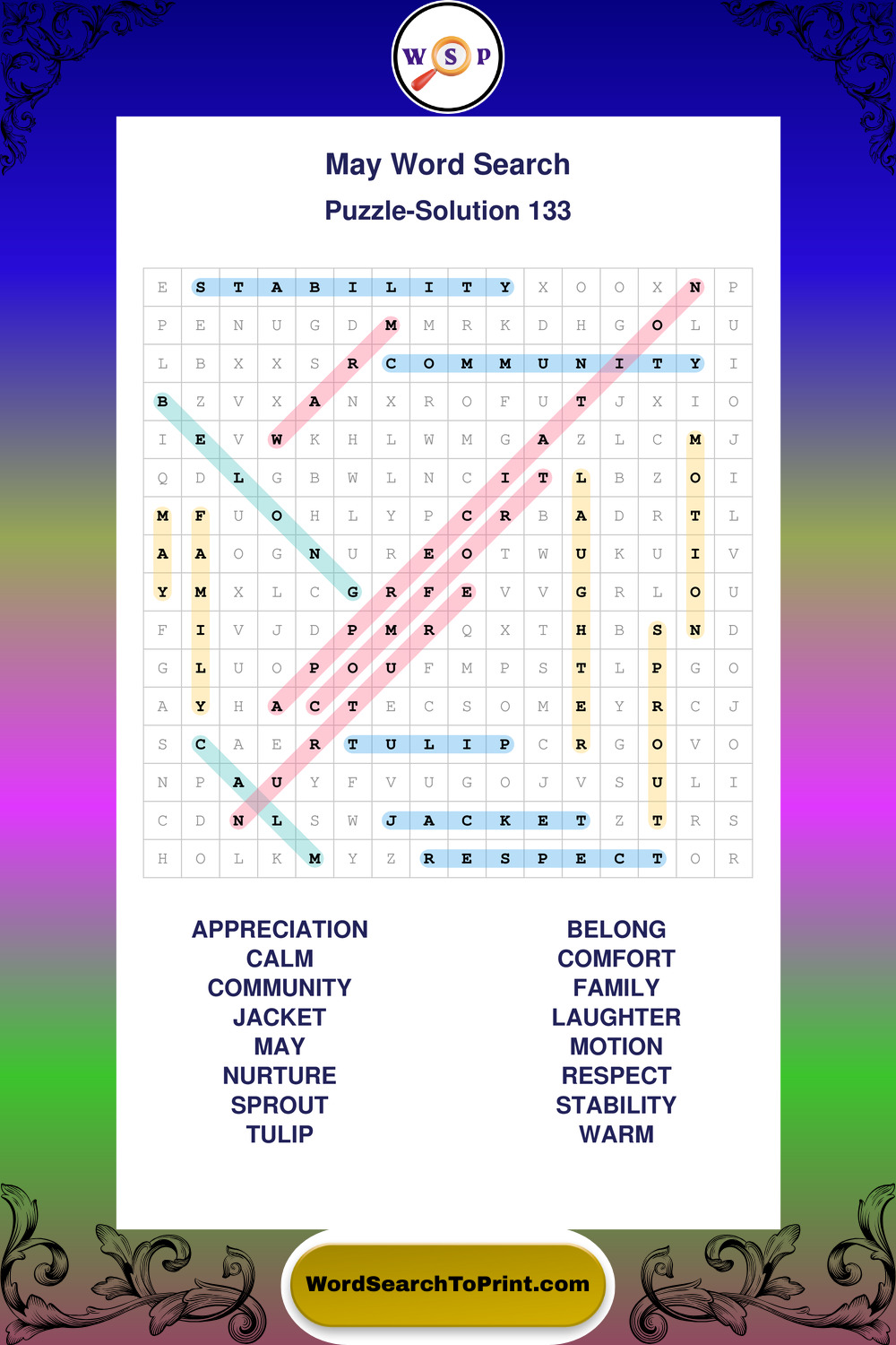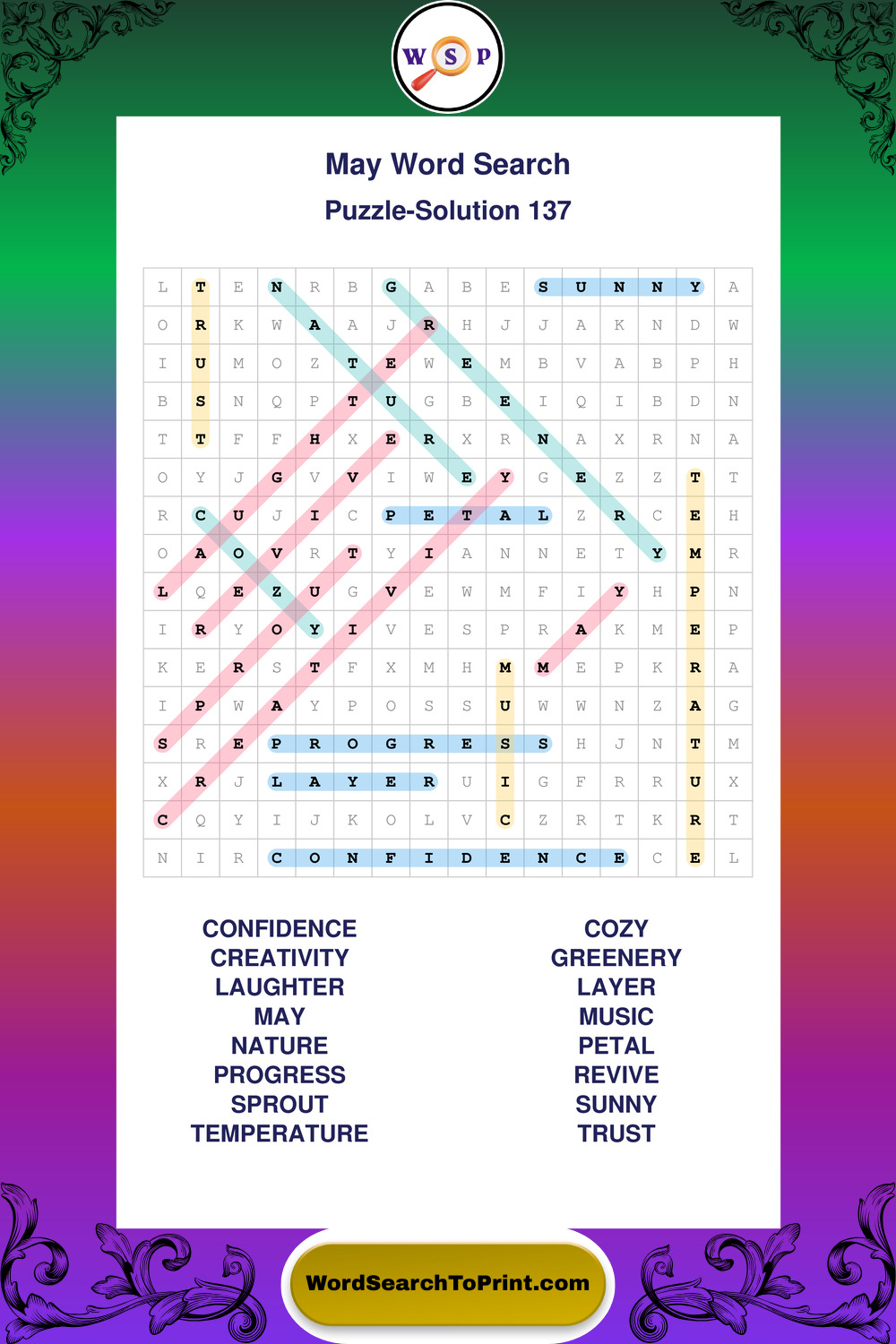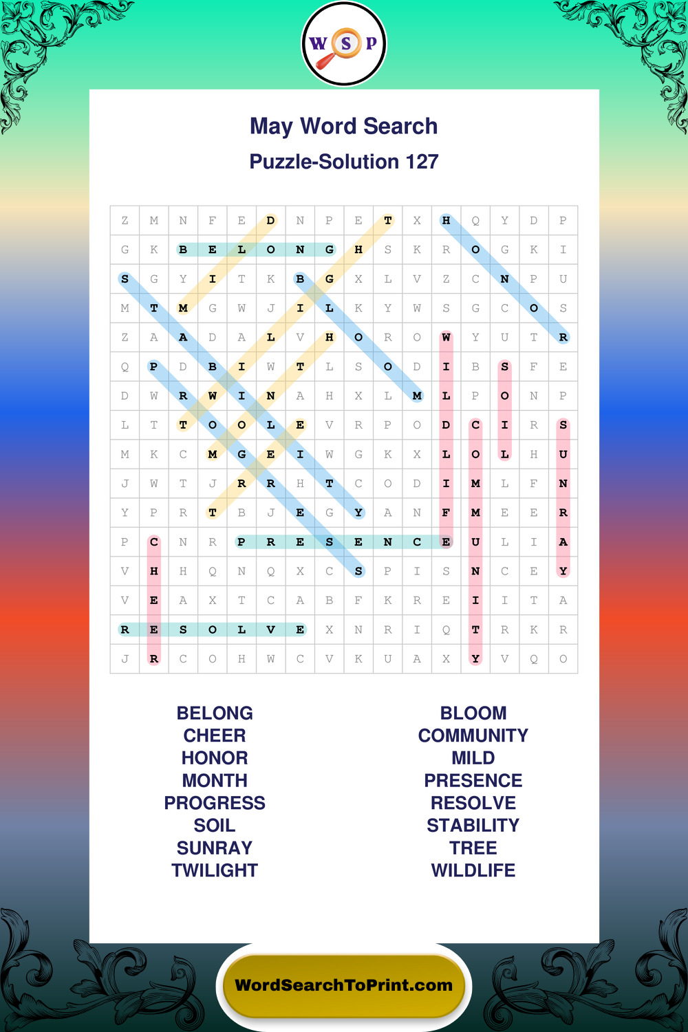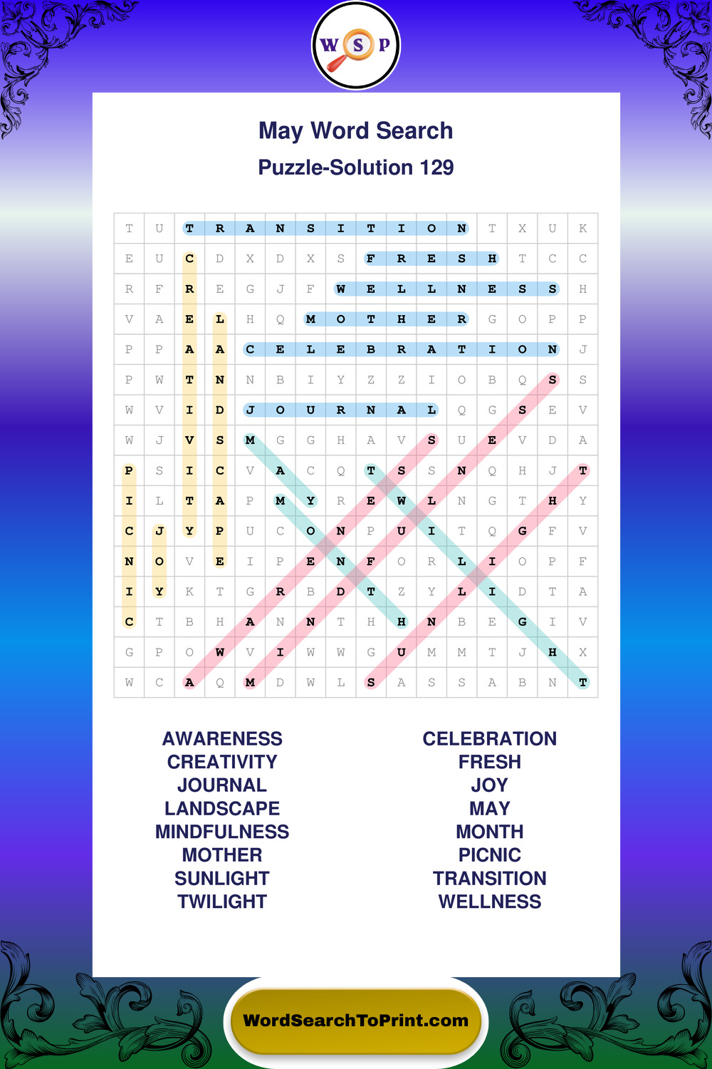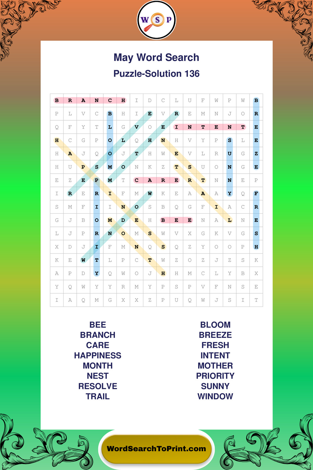 Discover large print May wordsearches designed to support relaxed thinking and comfortable reading.