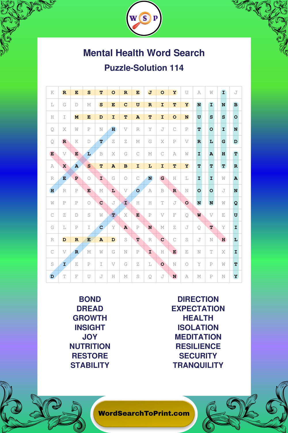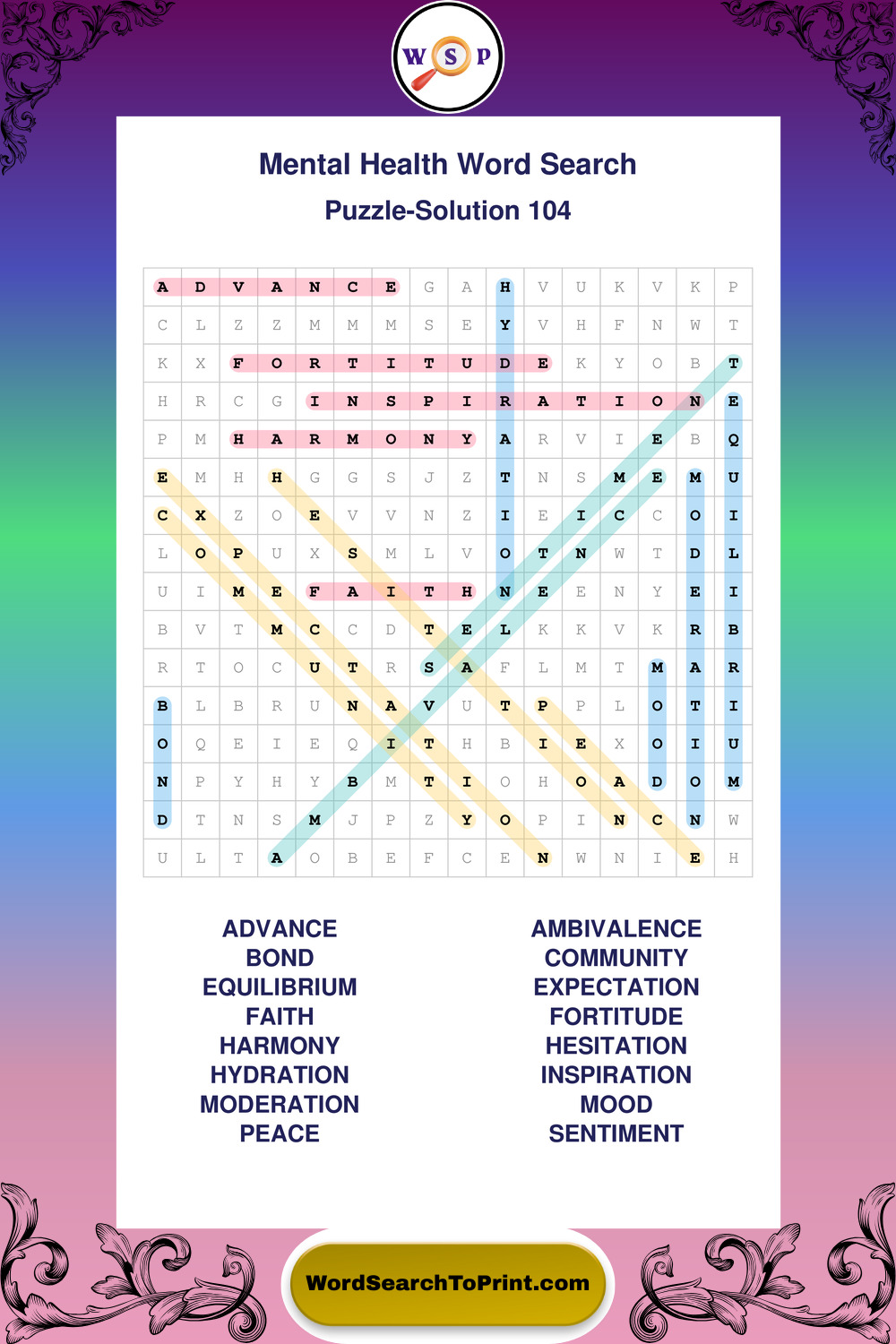 Free Large Print Mental Health Wordsearches