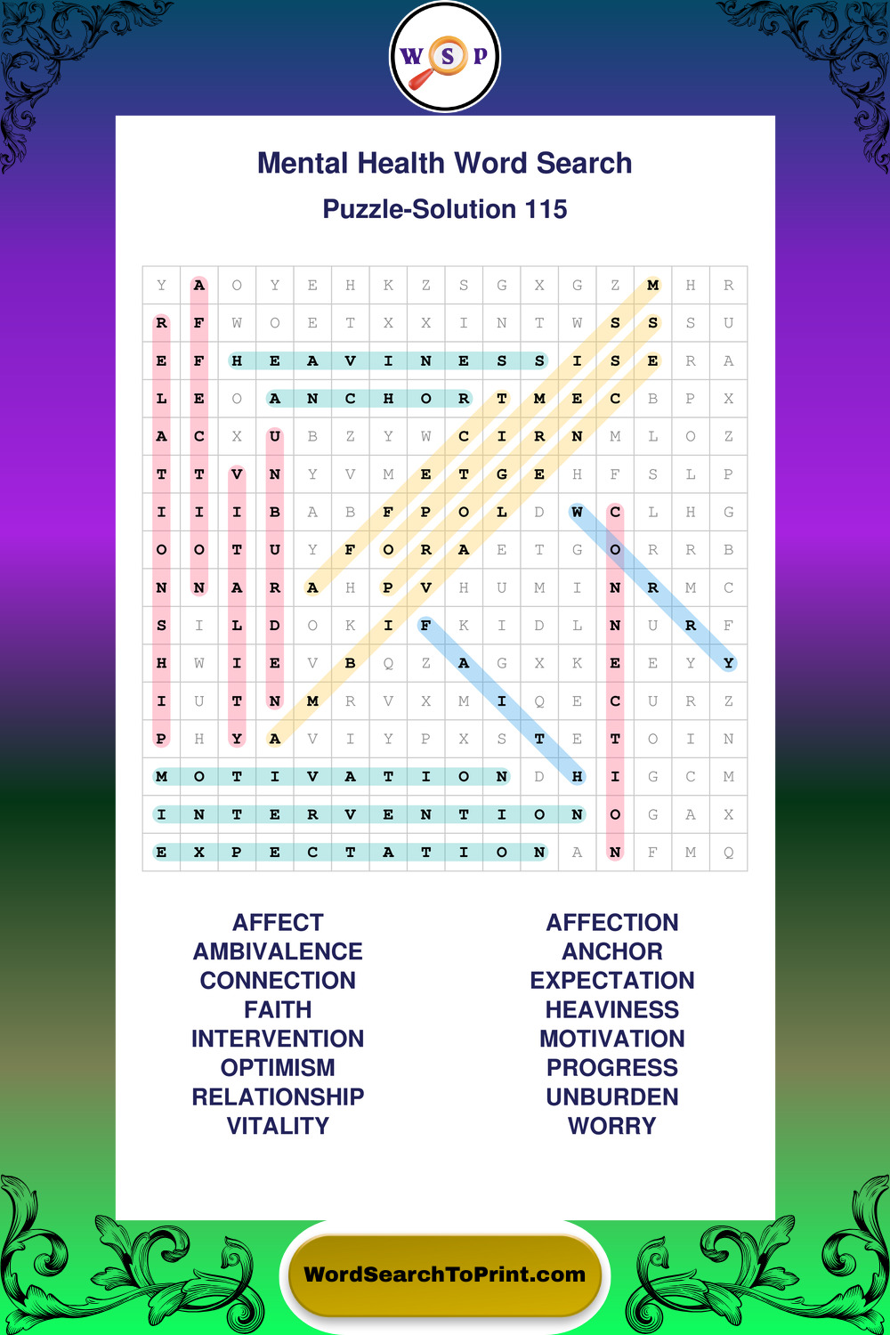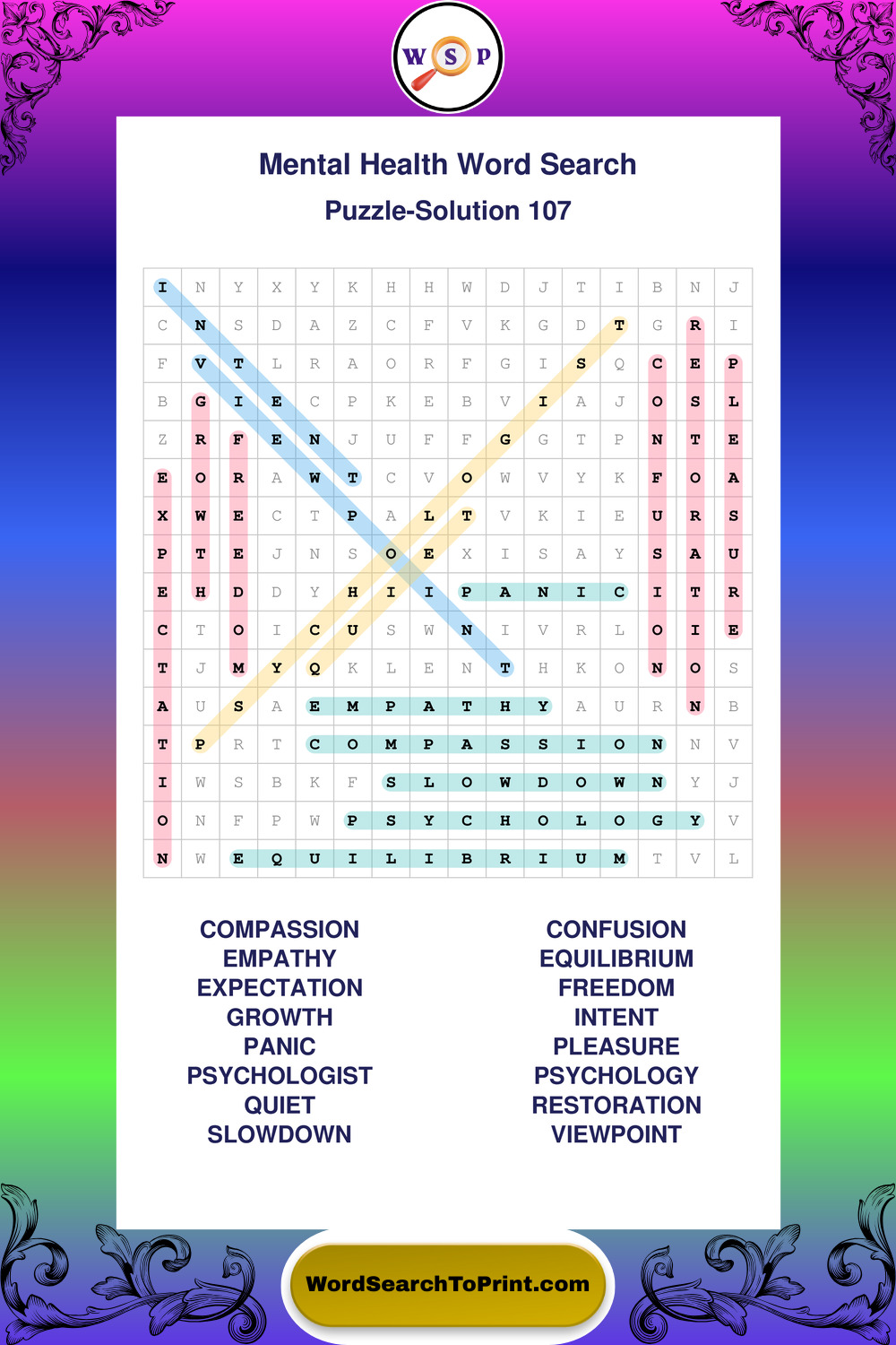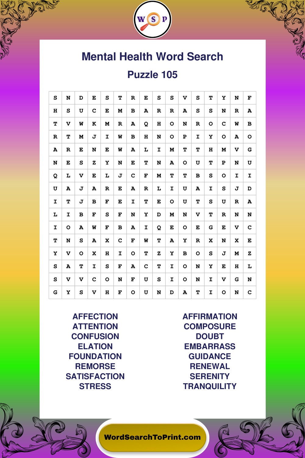 Printable Mental Health Wordsearch Puzzles
