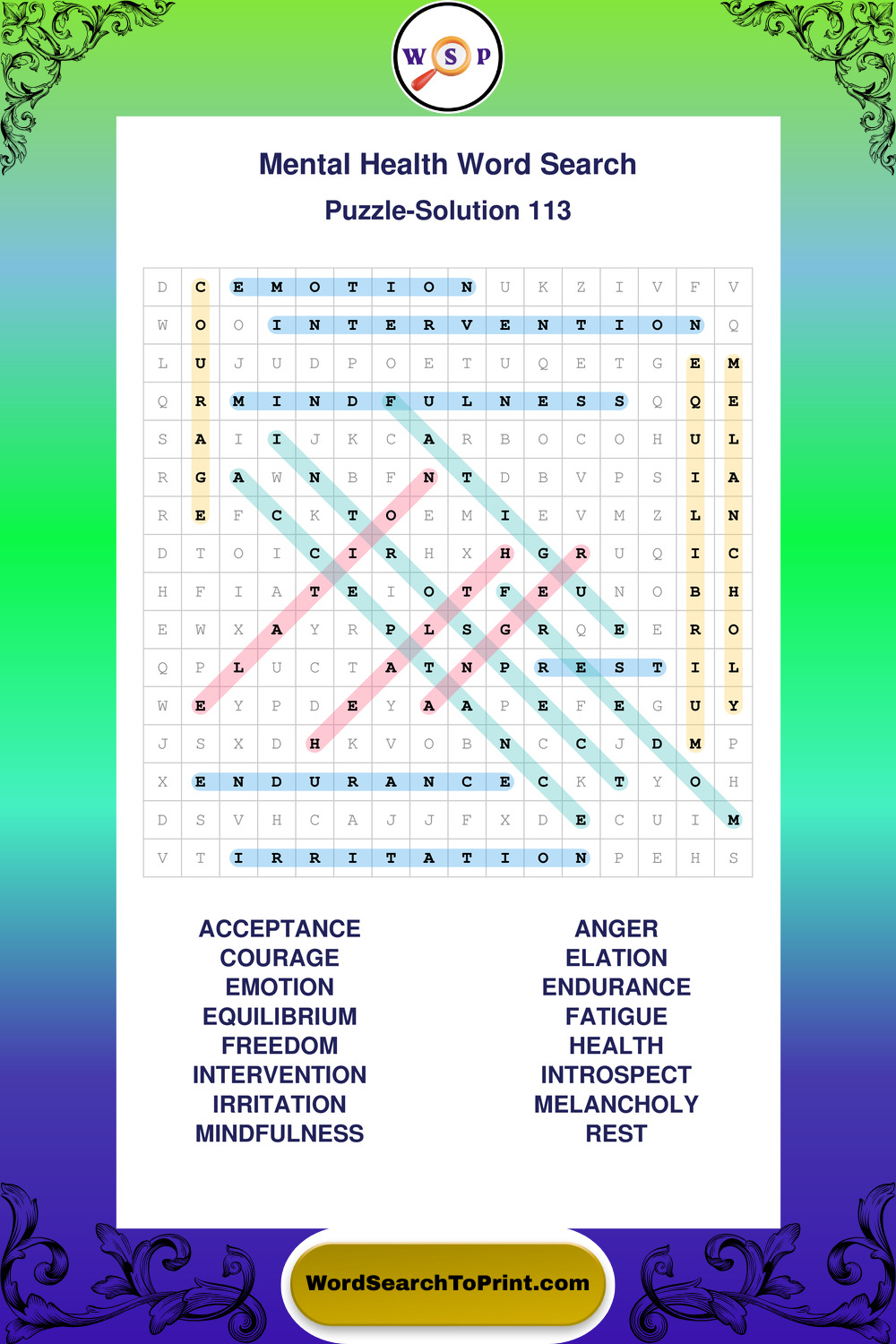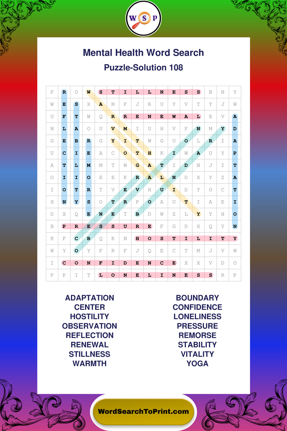These puzzles highlight positive thinking, emotional awareness, mindfulness, and wellbeing concepts. These puzzles make it enjoyable to explore this theme while improving focus and reinforcing key terms. You may also enjoy our Selfcare word search puzzles.