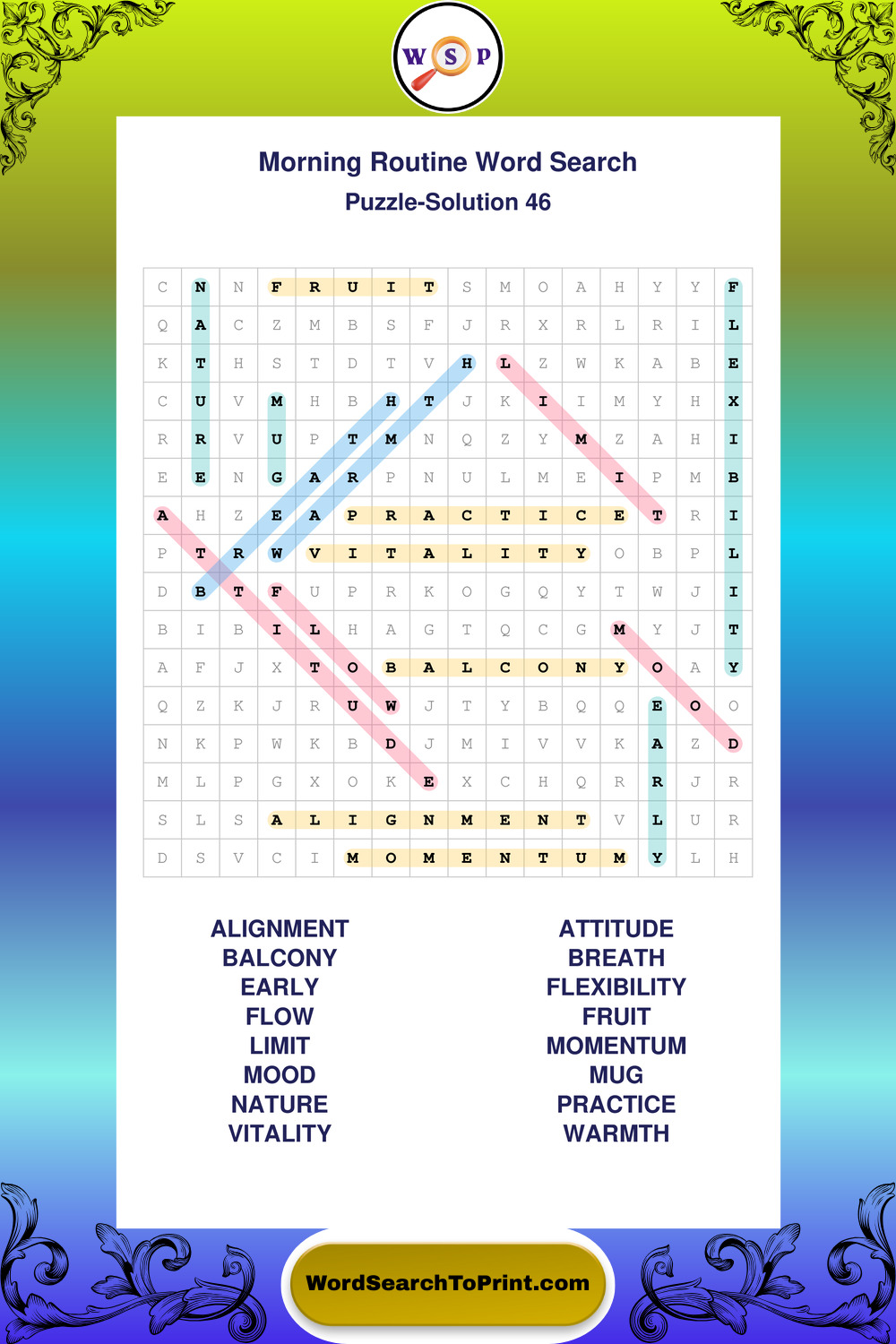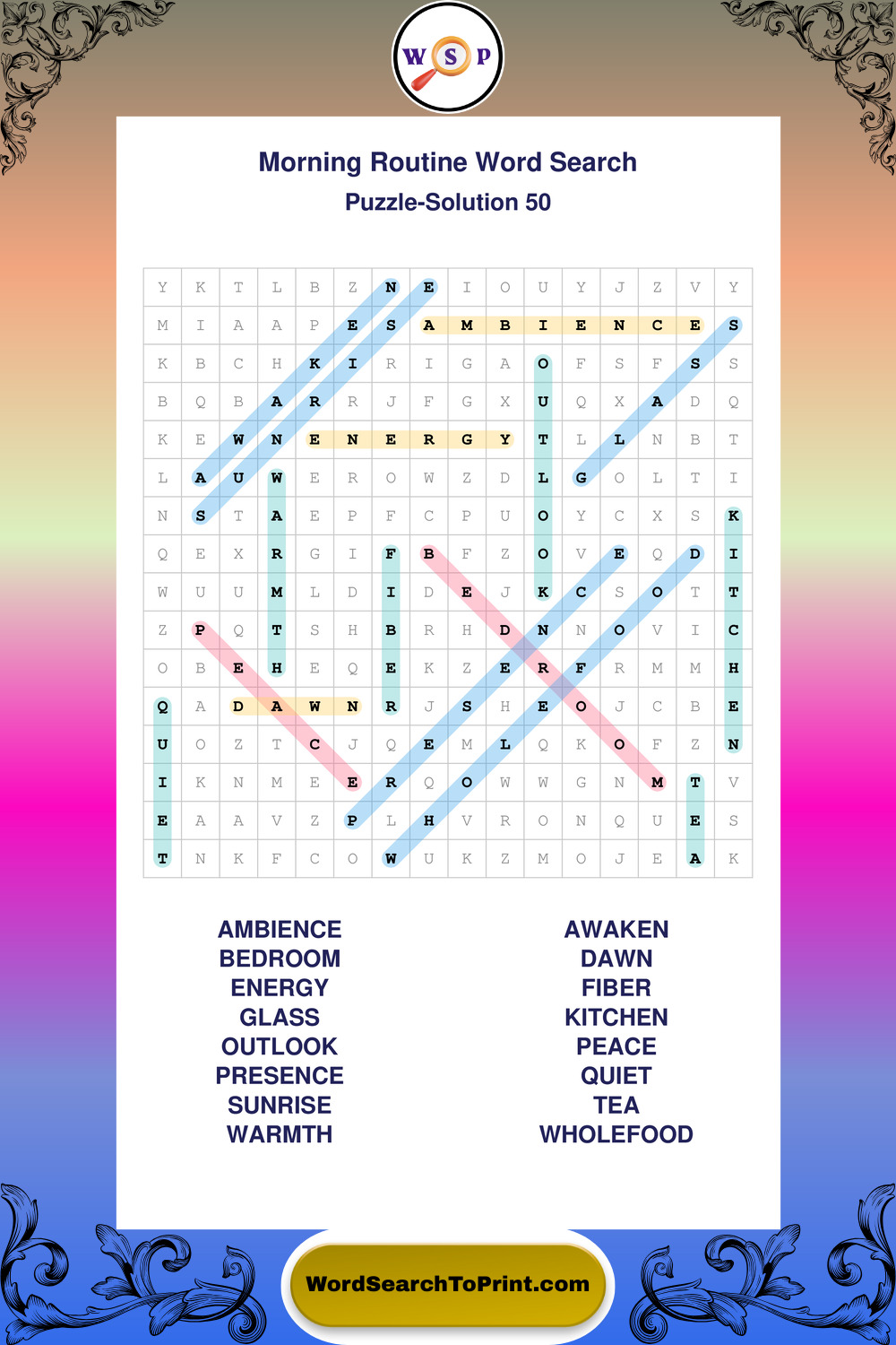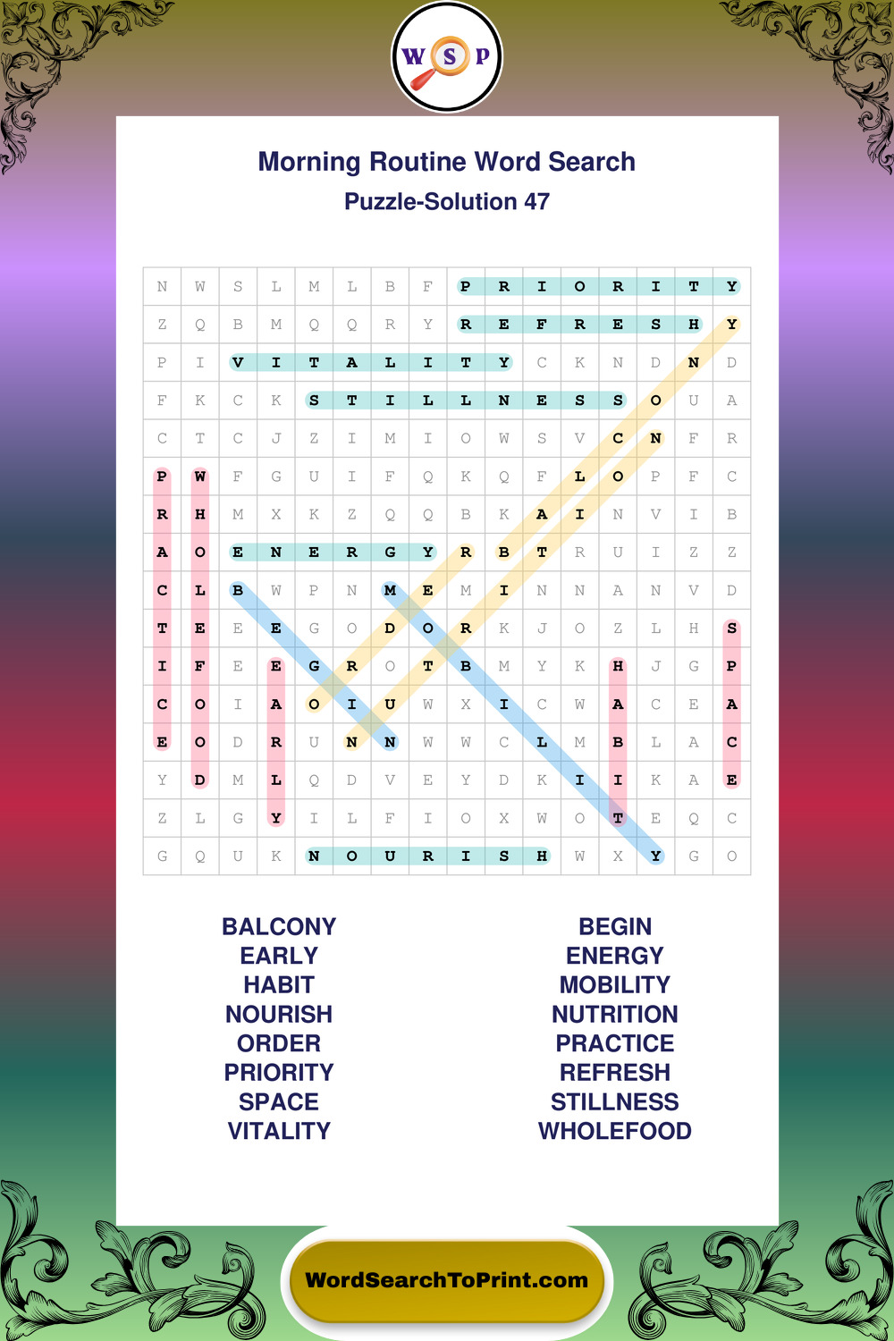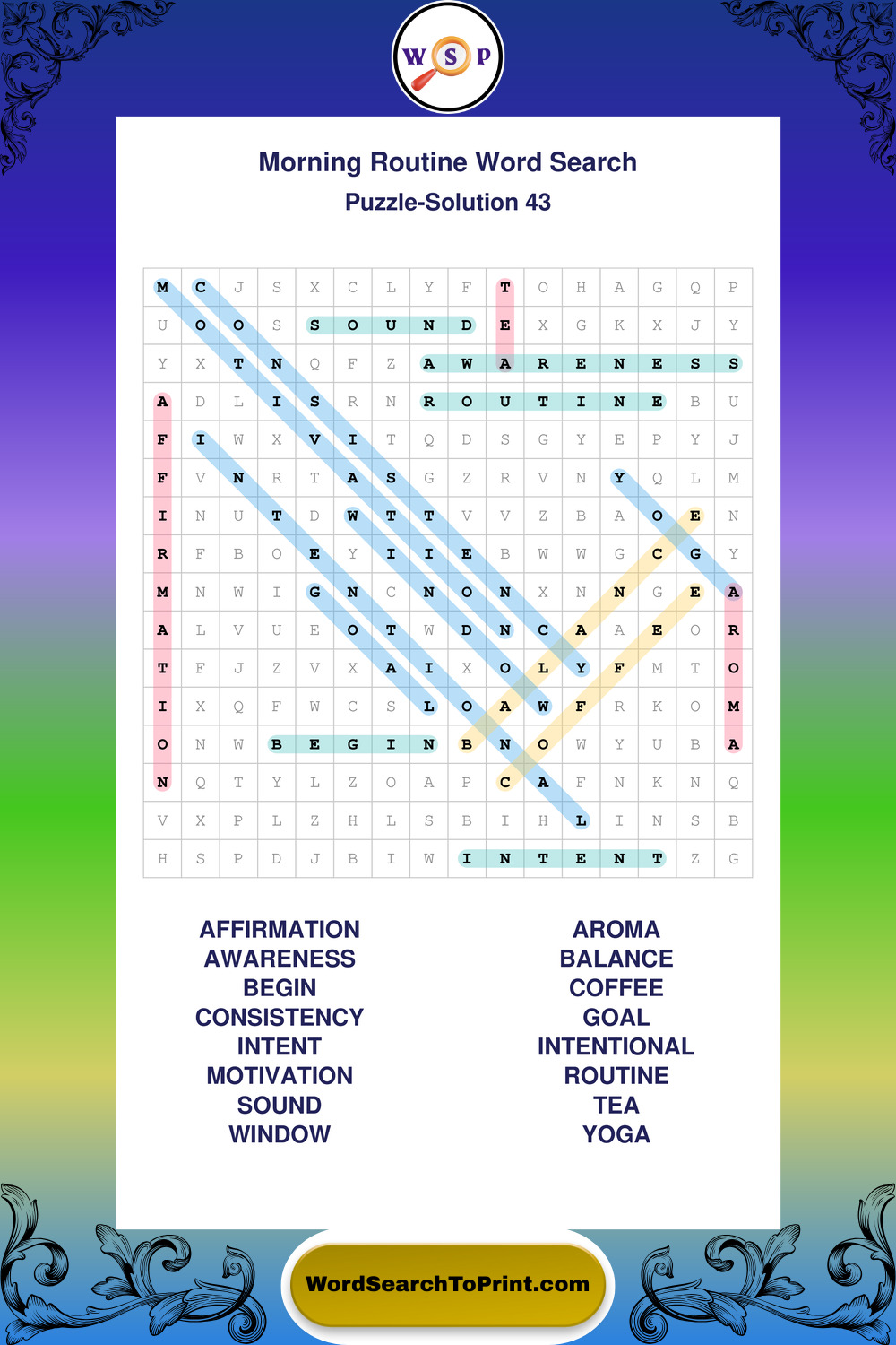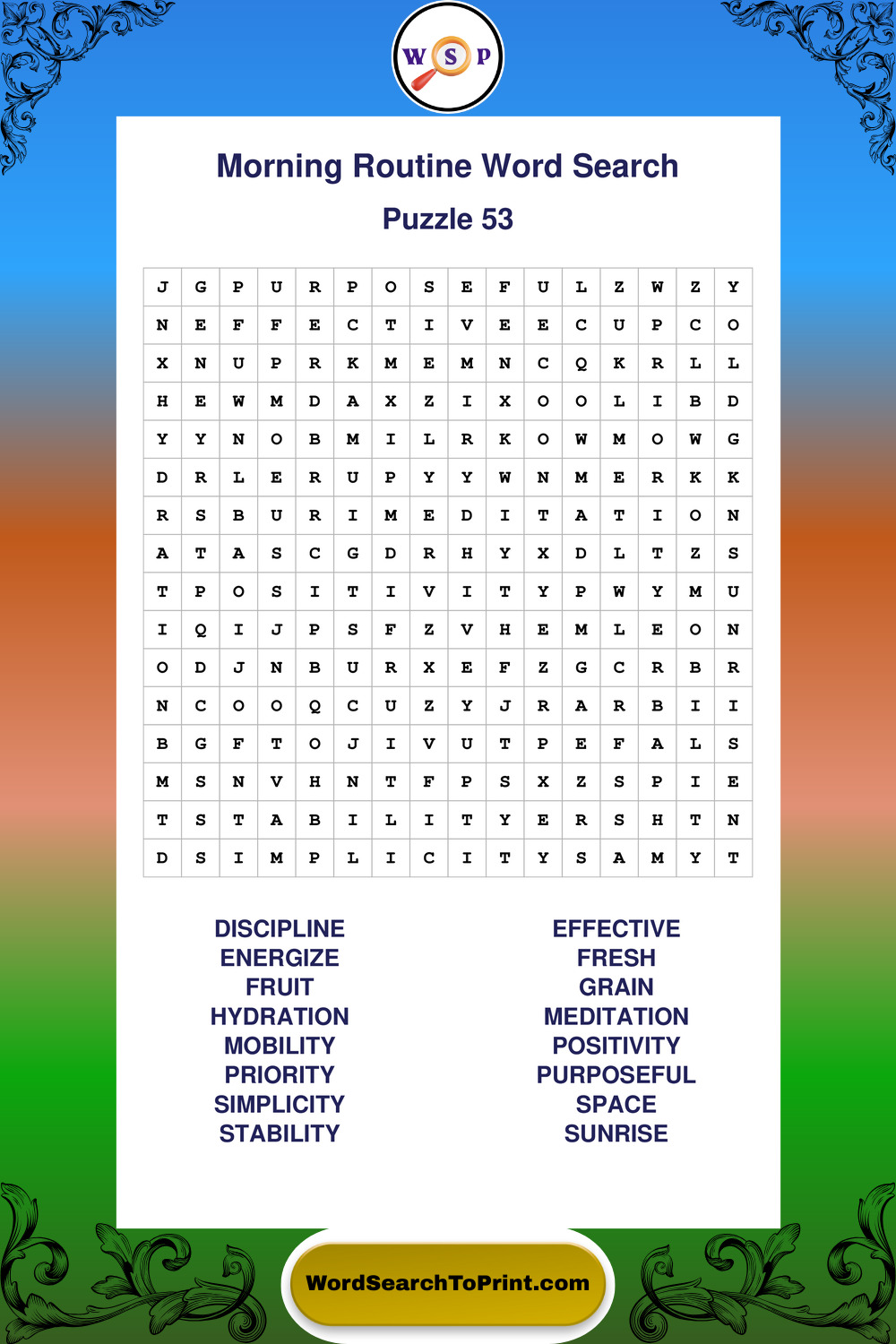A relaxing collection of large print Morning Routine wordsearches designed for comfortable solving and steady focus.