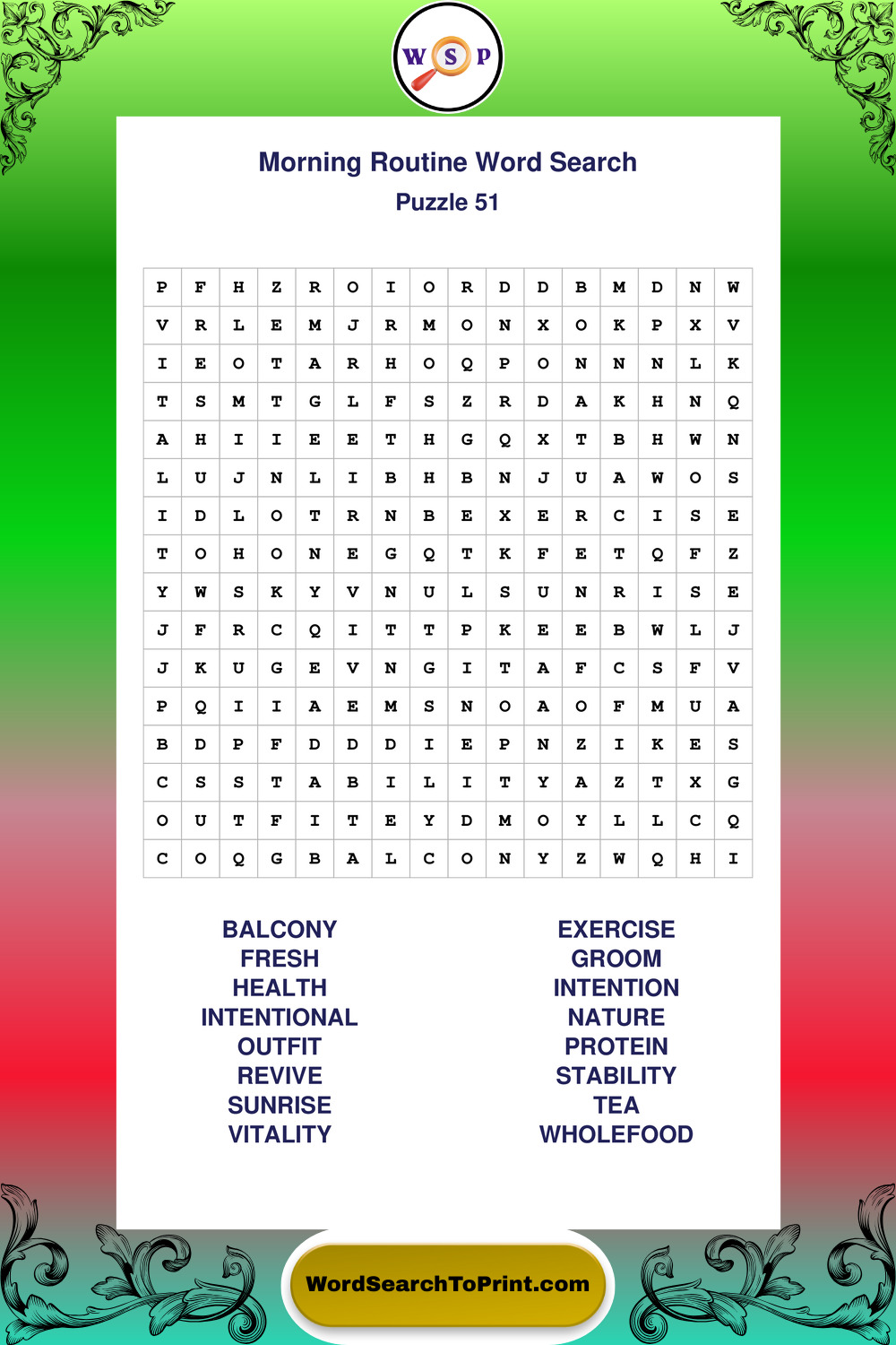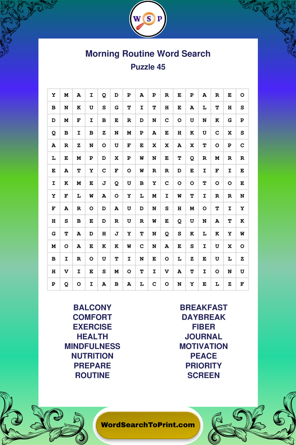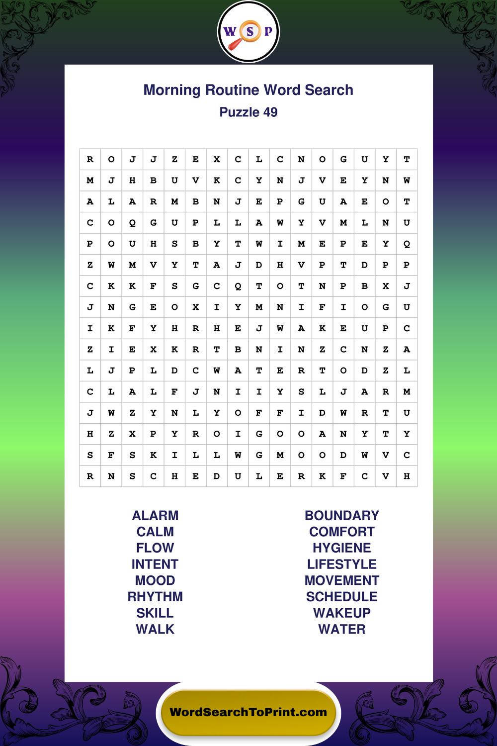 Printable Morning Routine Wordsearch Puzzles
